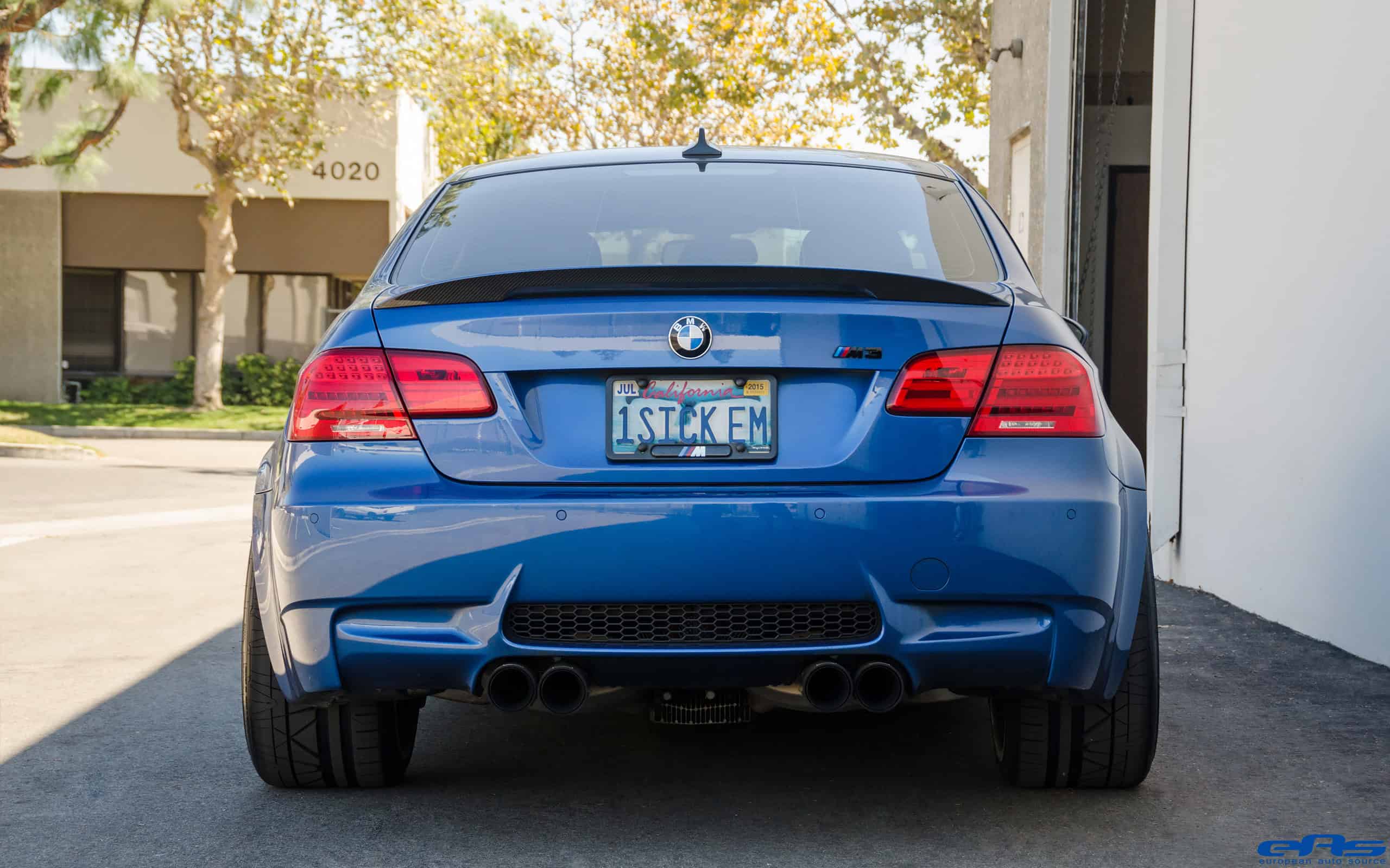 The supercharger system is combined with the Akrapovic Evolution full titanium exhaust system, making this high-reviving supercharged V8 wont feel even the slightest bit threatened around its younger, twin-turbo I6 siblings. In other aspects the supercharger leaves the car with its signature V8 growl, not impeded by a turbo setup, as in the younger M3 and M4. The carbon fiber exhaust tips on the quad exhaust pipes leave nothing more to be desired from this build and add that perfect finishing touch.