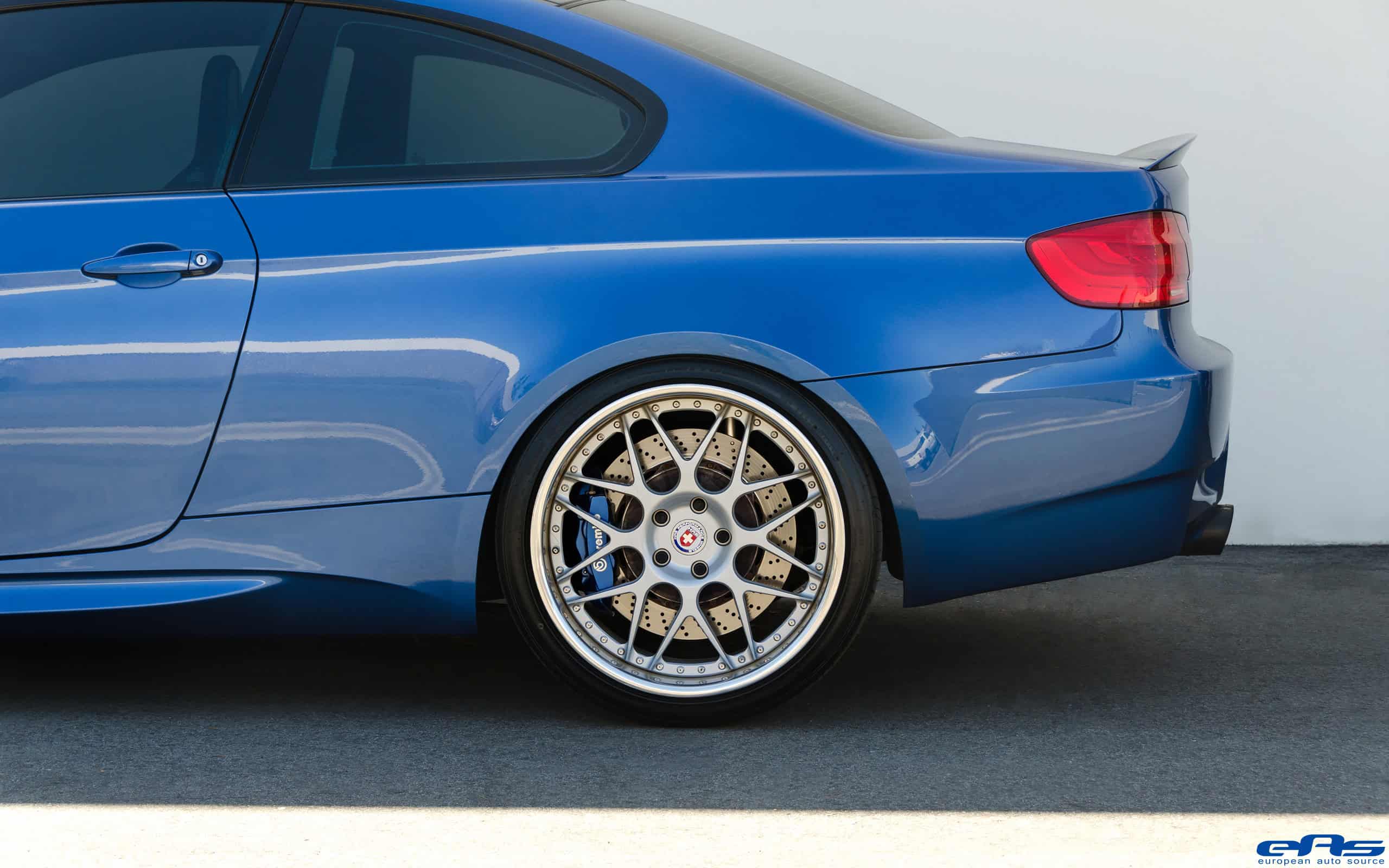 Besides its rare color, one of the first things people will notice with this BMW M3 are the HRE 590RS wheels. These are sized 20 inches, leaving plenty of space for the gorgeous and massive color-matched Brembo brakes. Obviously this M3 also comes lowered, but it’s not just lowered on a set springs; KW Clubsport coilovers provide this E92 M3 with a custom ride height and tuned handling.