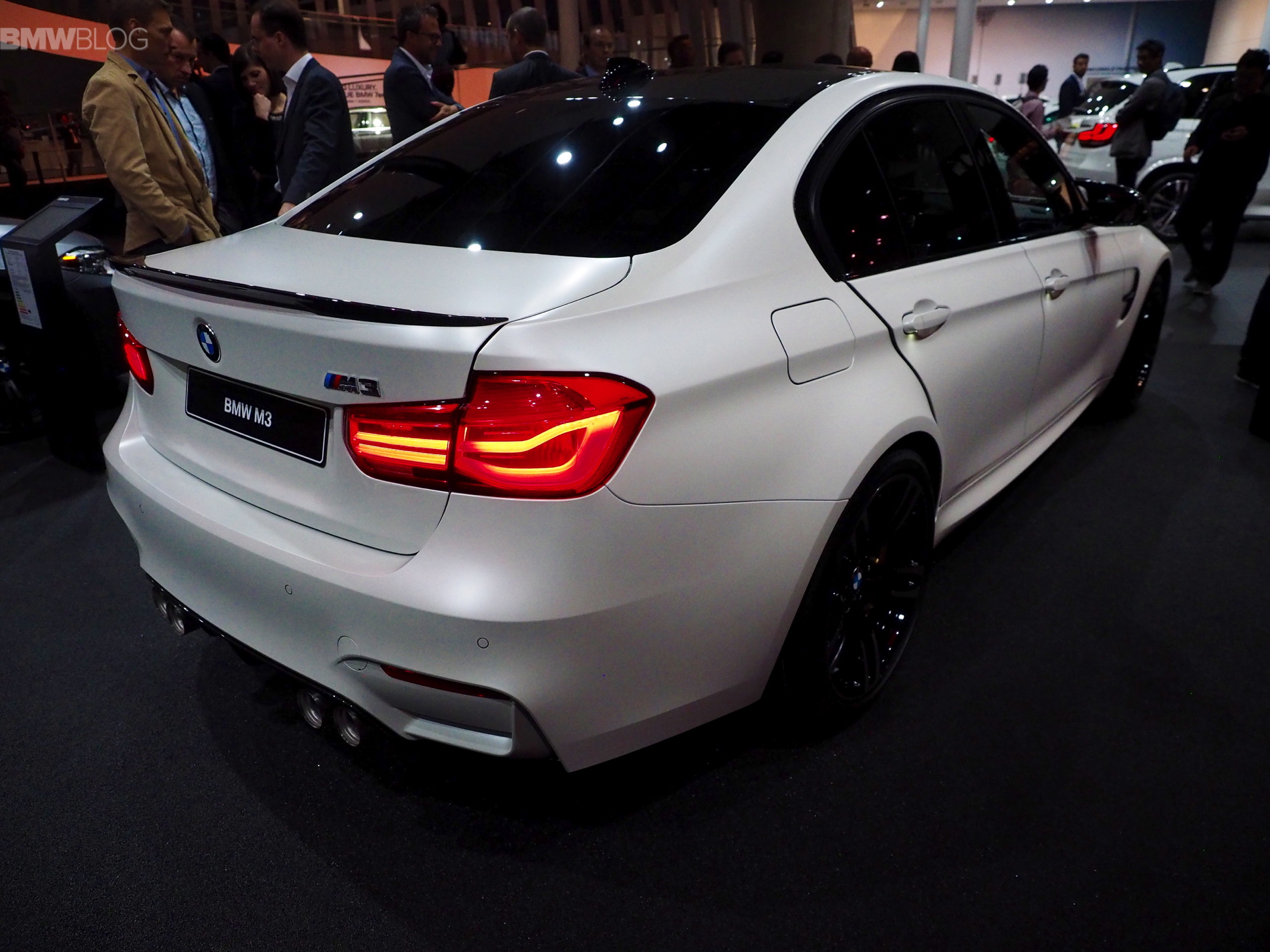 A little gem is hidden at the BMW stand in Frankfurt. This BMW M3 comes with the Frozen Brilliant White color from the Individual Program and it is adorned with all the M Performance Parts possible. Aside from the special paint job, the matte M3 features M carbon ceramic brakes, BMW M Performance Titanium Exhaust, BMW carbon fiber rear spoiler and diffuser, a carbon fiber front splitter, BMW M Performance door handles, BMW M Performance exterior mirror caps and BMW M Performance Alcantara/carbon cover center console, among many others exterior parts.