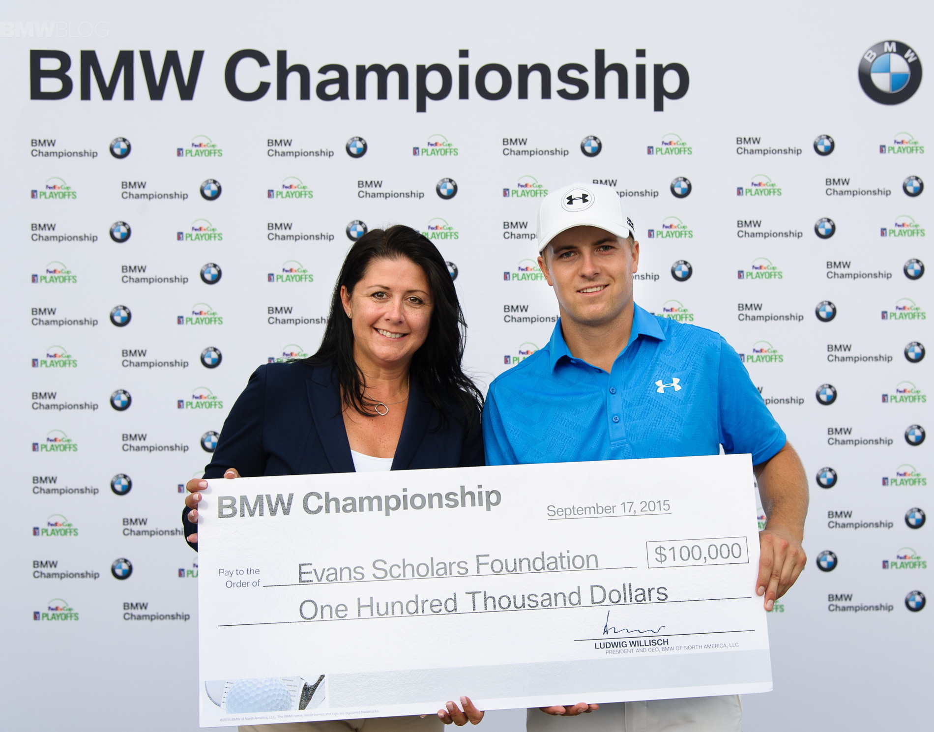 On Thursday, September 17, Jordan Spieth recorded a hole-in-one, resulting in the donation of another BMW Hole-In-One Scholarship, a full, four-year Evans Scholarship worth $100,000. Spieth aced the 2nd hole, his 11th hole of the day, with a 7-iron, from 184 yards. His hole-in-one marks the fourth time in the last five years that BMW has awarded a BMW Hole-in-One Scholarship.