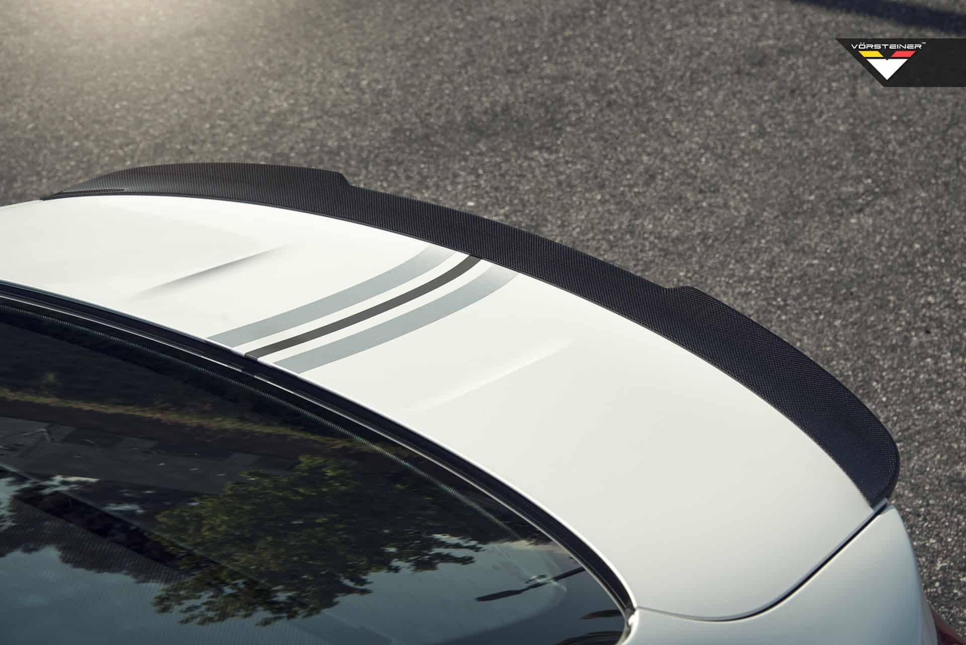 The one-piece front spoiler features a subdued yet race-inspired look, extending slightly beyond the factory bumper with small winglets on top of the left and right overhangs. The one-piece rear deck lid spoiler features Vorsteiner’s exclusive multi-tiered split styling, offering a more complex appearance, while blending in with the factory bodylines and surfaces.