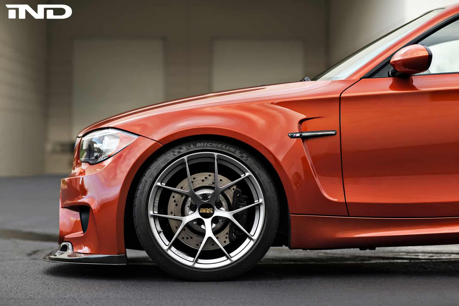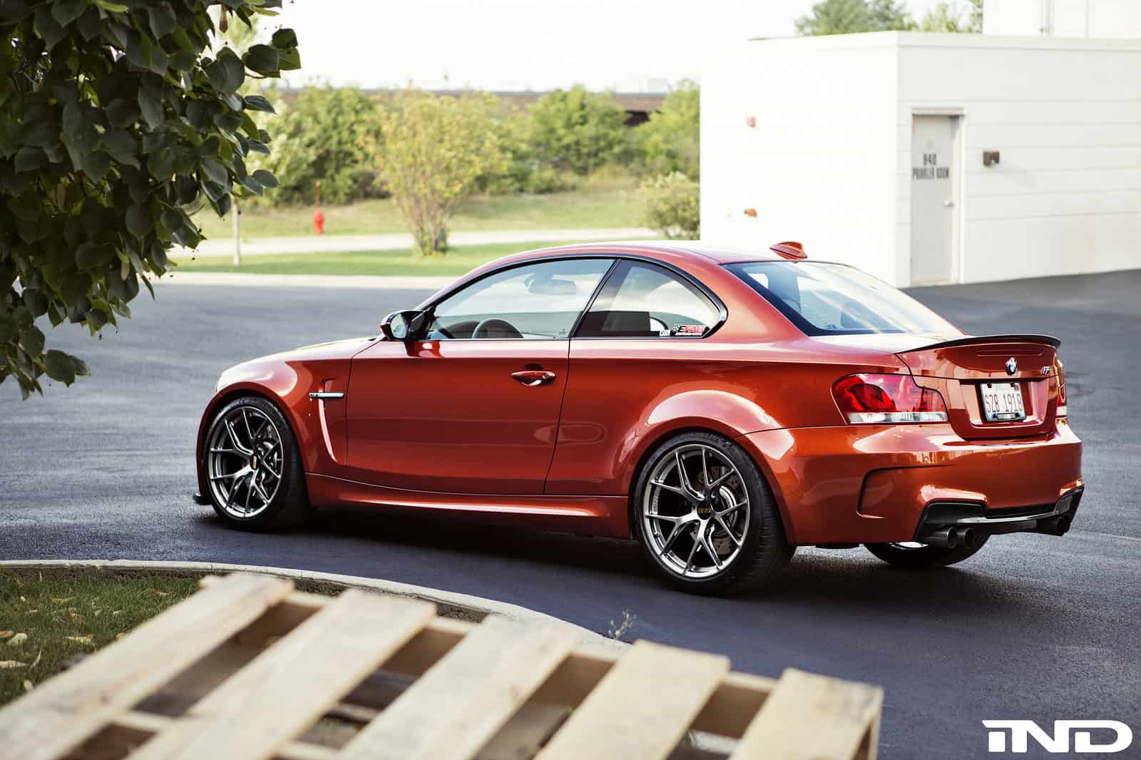 This Valencia Orange BMW 1M is definitely one of the cleanest and classiest examples of this rare performance model from BMW. This particular 1M build was completed by IND Distrubution with E-Fab Motorsports who did all the performance work and custom exhaust. IND installed several high-quality aftermarket parts and completely redefined the outer appearance of this sportscar.