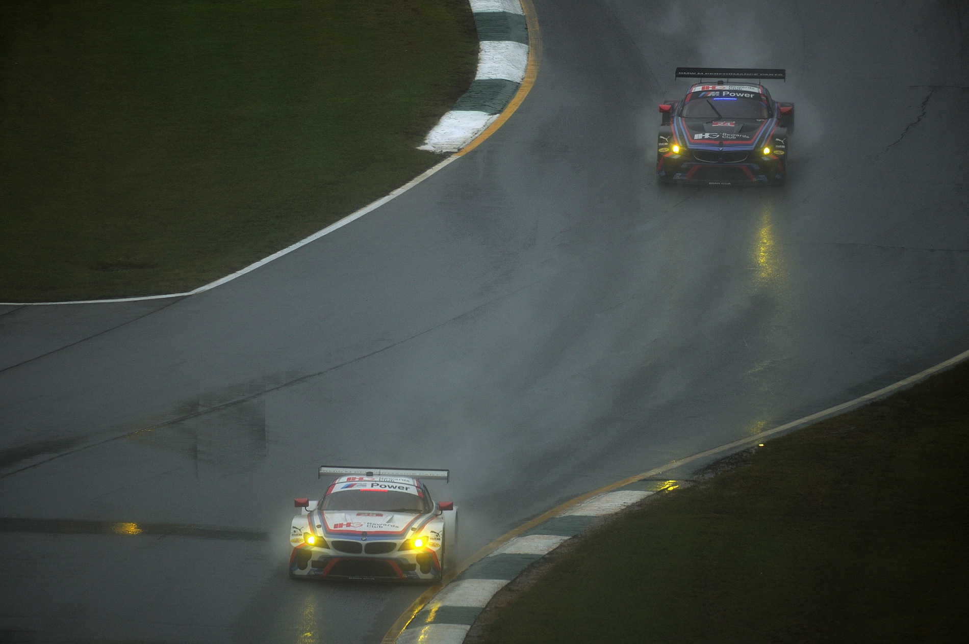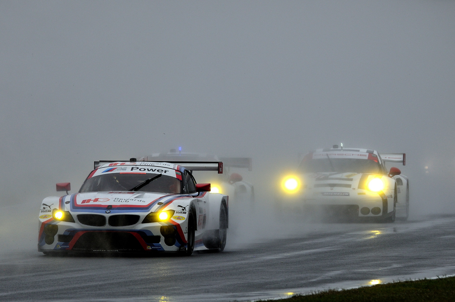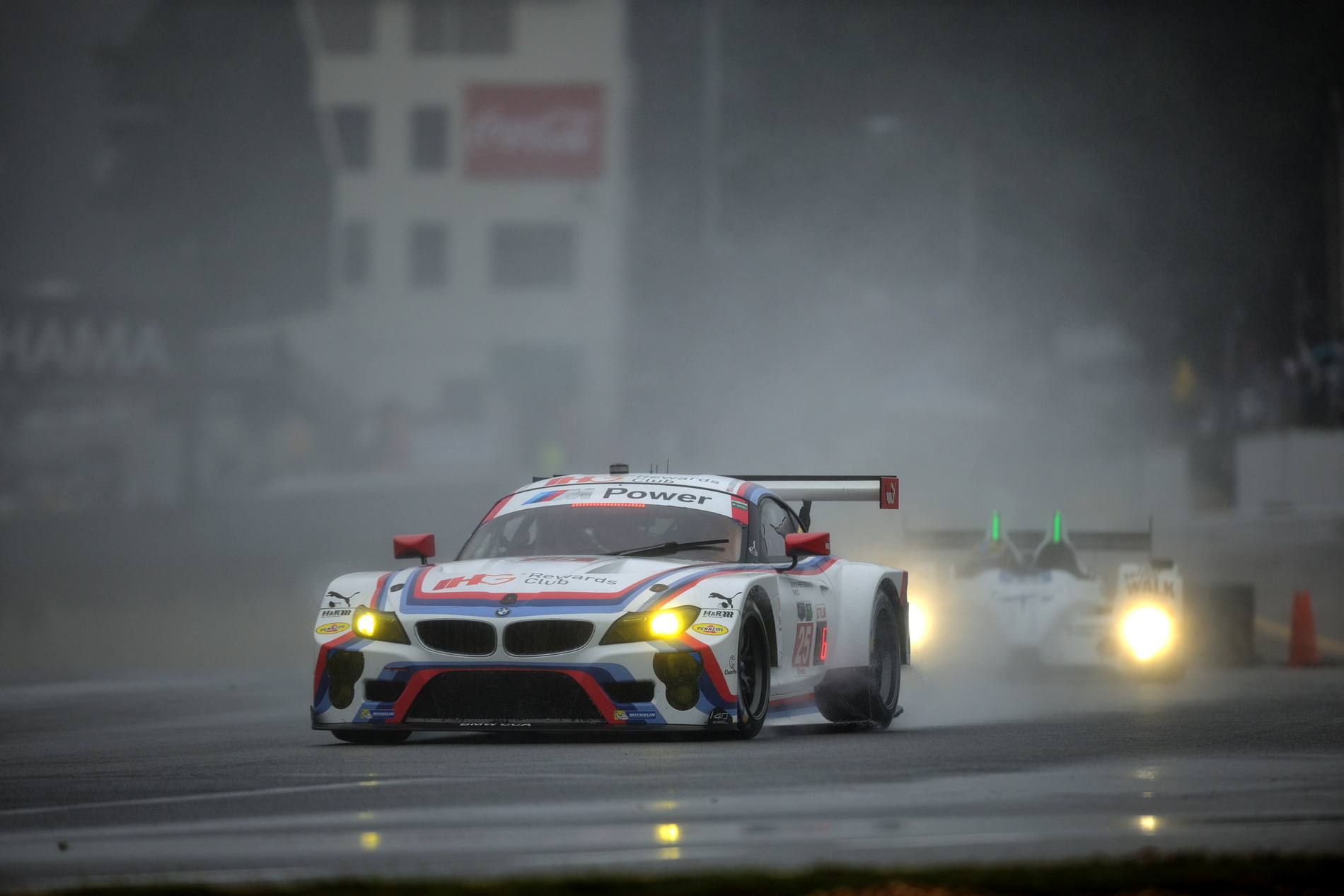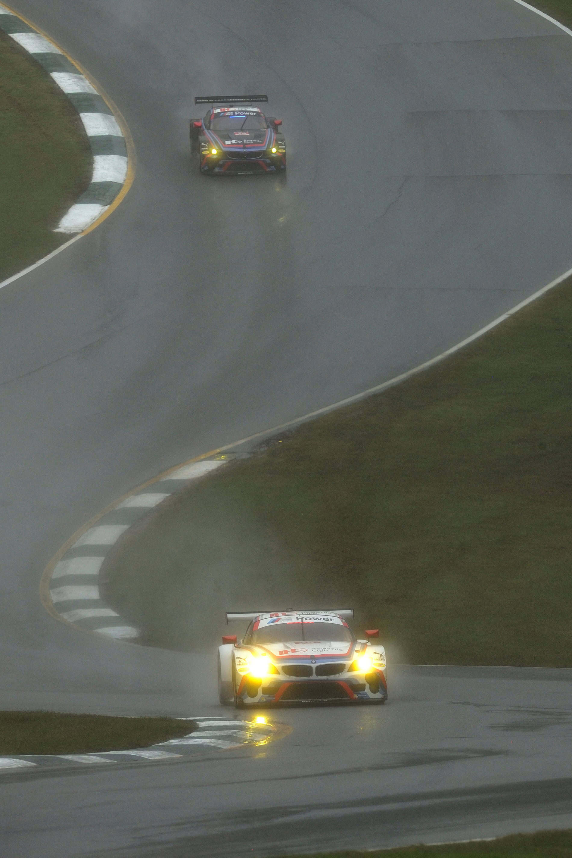 The iconic Petit Le Mans turned into the predicted water fight: When the race got underway at 11:10hrs local time, the track was already extremely wet due to the heavy rain. This made for tricky conditions. Several accidents caused full-course yellows, in which the USCC field was neutralised. Despite the terrible conditions, the BMW Team RLL drivers put in great performances without any mistakes, keeping their BMW Z4 GTLMs on track even in the heaviest periods of rain. Five hours and 22 minutes into the USCC season finale, however, the red flag was brought out due to bad track conditions. Another weather system bringing even heavier rain was visible on the radar, moving straight in the direction of Road Atlanta. After a one-hour break, the race was re-started. However, with darkness setting in, it was ultimately stopped for safety reasons at 19:01hrs local time – and the season came to an early end.