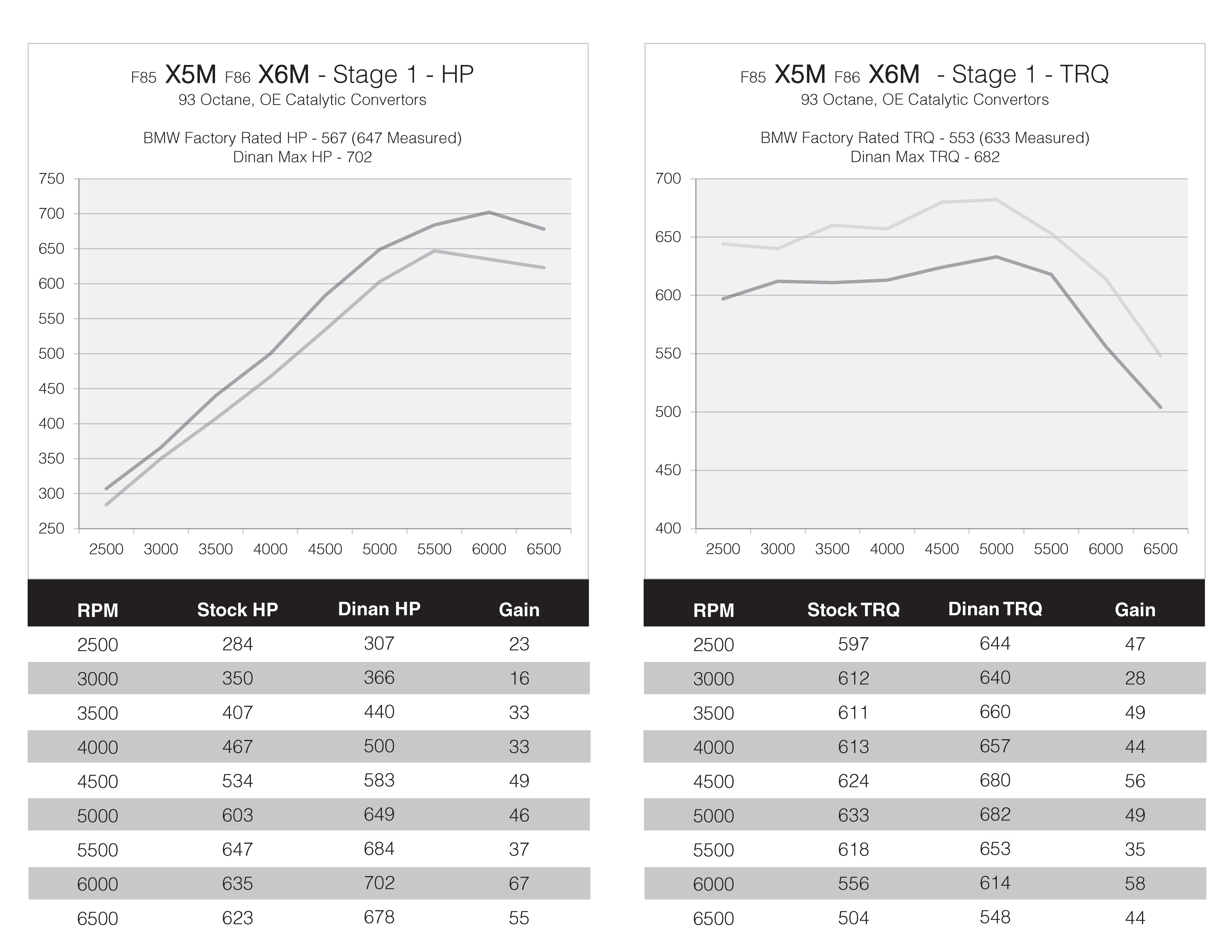 DINAN reveals their Stage 1 kit for the new BMW F85 X5 M and F86 X6 M which outputs 700 horsepower and 682 lb-ft torque from the standard 567 hp and 553 lb-ft torque.