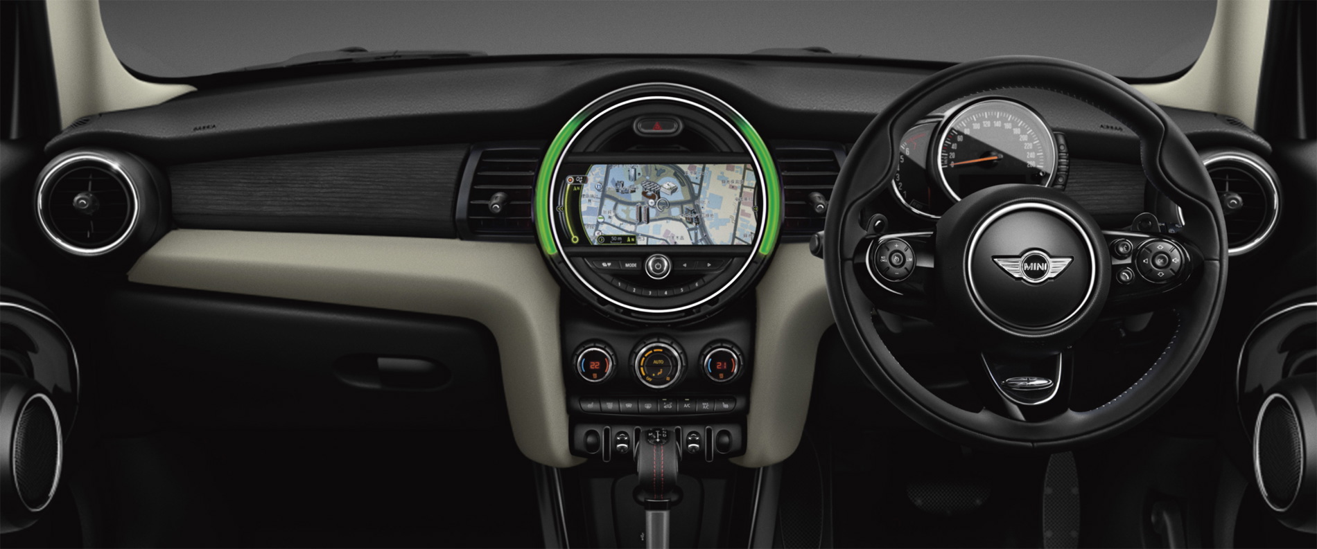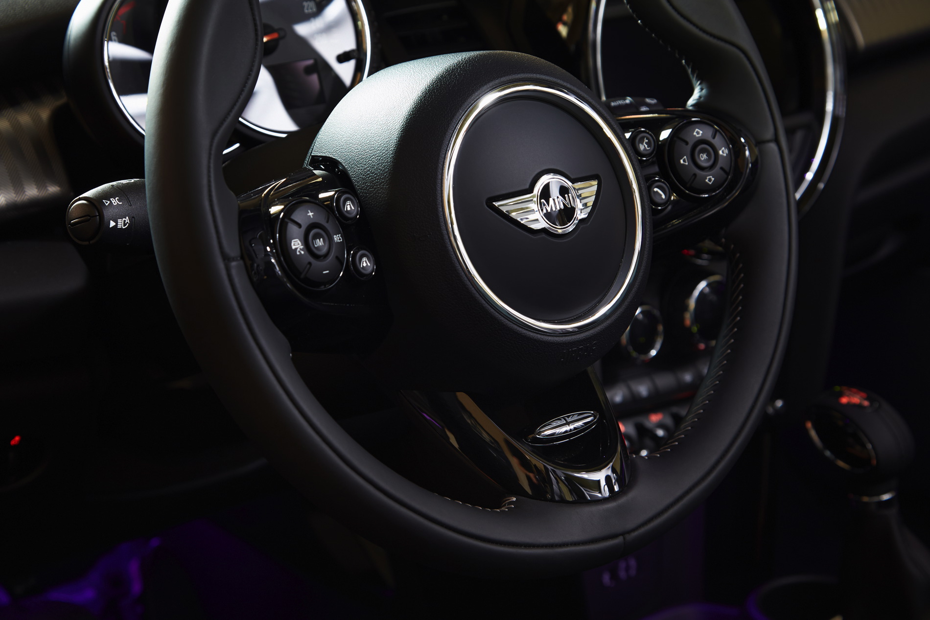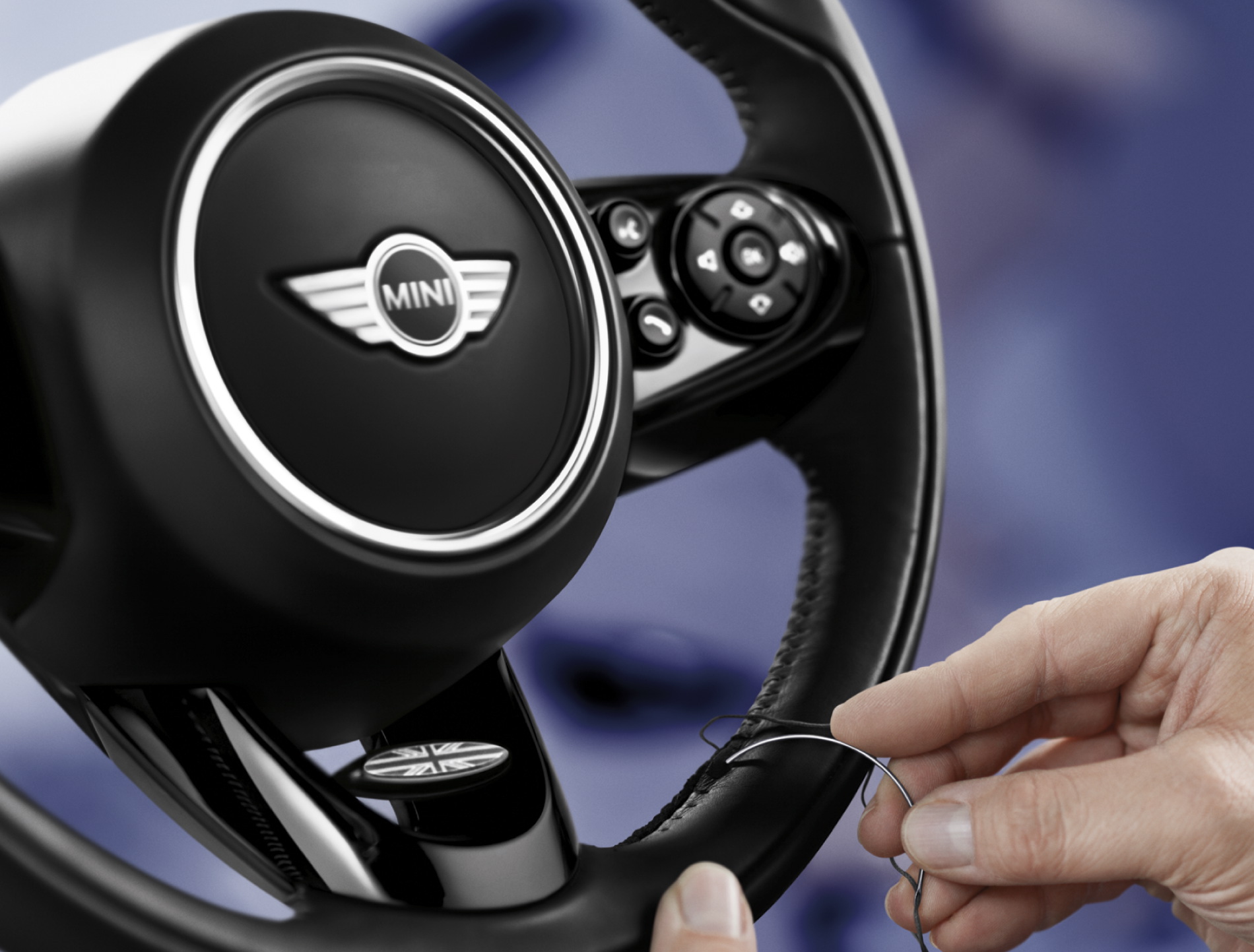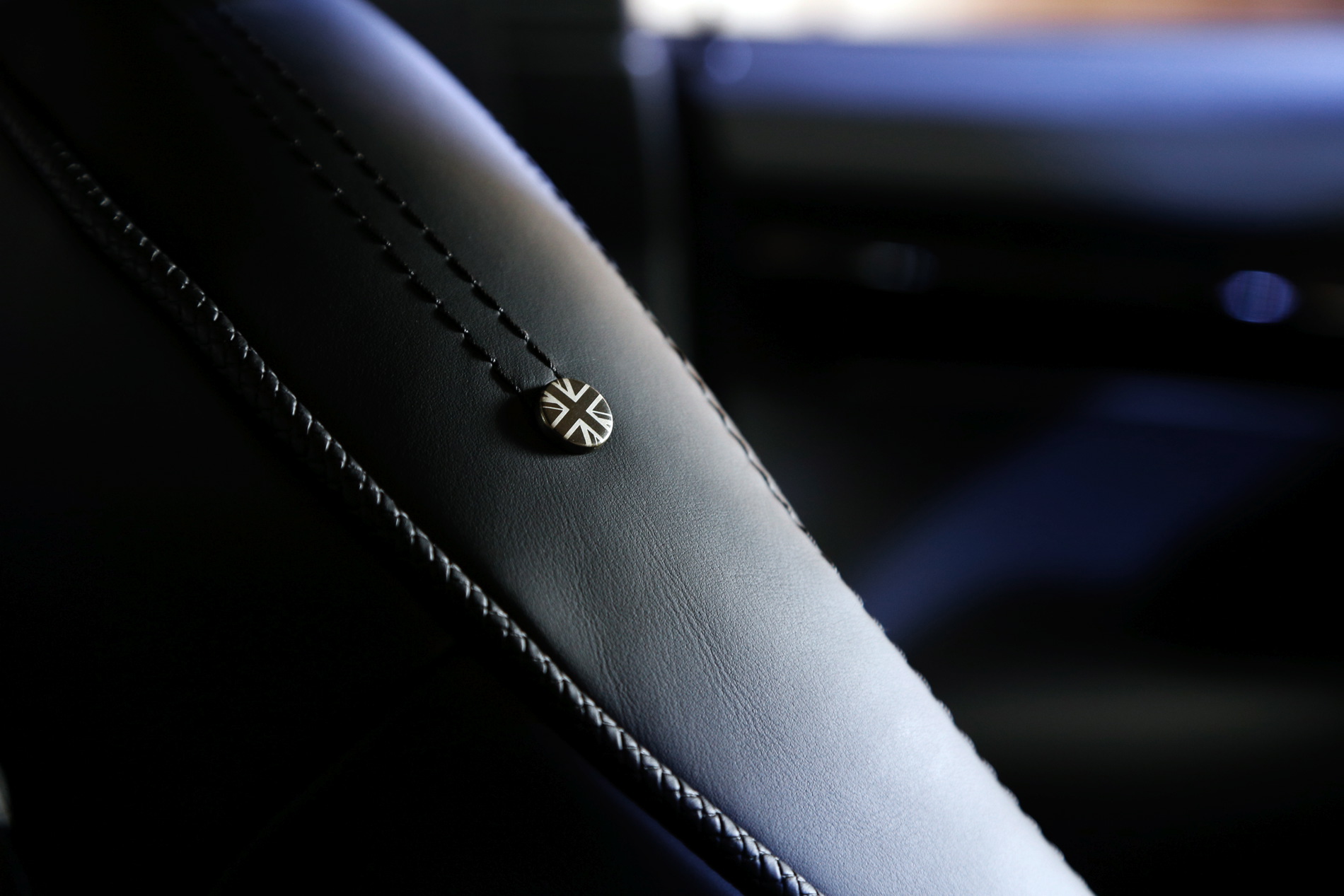 The leather upholstery scores with numerous inlaid Union Jack designs showcasing the British roots of the MINI. A very fine and soft nappa leather, dark aluminum color of the hand-sewn stitch shine contrast is applied. Using carefully selected luxury grain, the horizontal grain has been made through a special process to create a modern design.