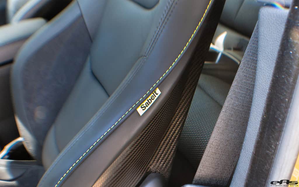 The interior also received some visual upgrades: a Sabelt SPS racing seats with a yellow stitching applied, Macht Schnell F8X FloorMounts,  a set of Awron DGA digital gauge display ensures the driver is properly informed about all engine modes and statuses, and the Pedal Haus aluminum pedal set. There is also a Macht Schnell EVC Control Module installed.