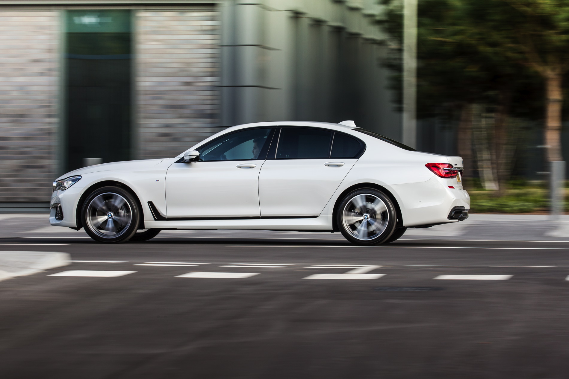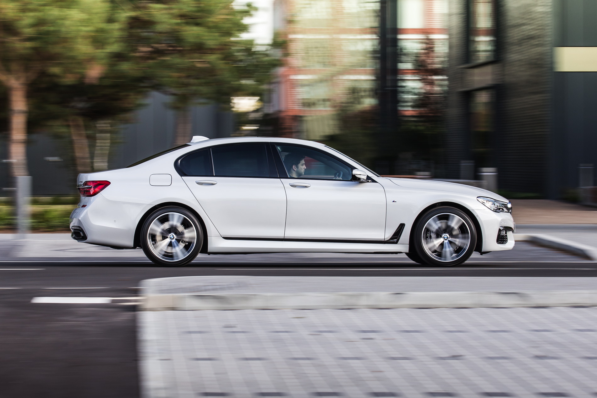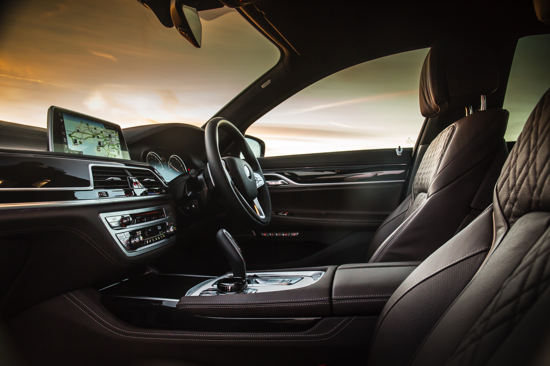 BMW’s 730d was fitted with the dynamic M Sport Package which includes an M aerodynamic body styling package comprising model-specific front/rear aprons and side skirts, plus 19-inch M light-alloy wheels in twin-spoke design, illuminated door sill finishers bearing the M logo and accents in either light or dark chrome. Inside there’s a BMW Individual headliner in Anthracite and Fineline black wood interior trim strips with high-gloss metal effect.