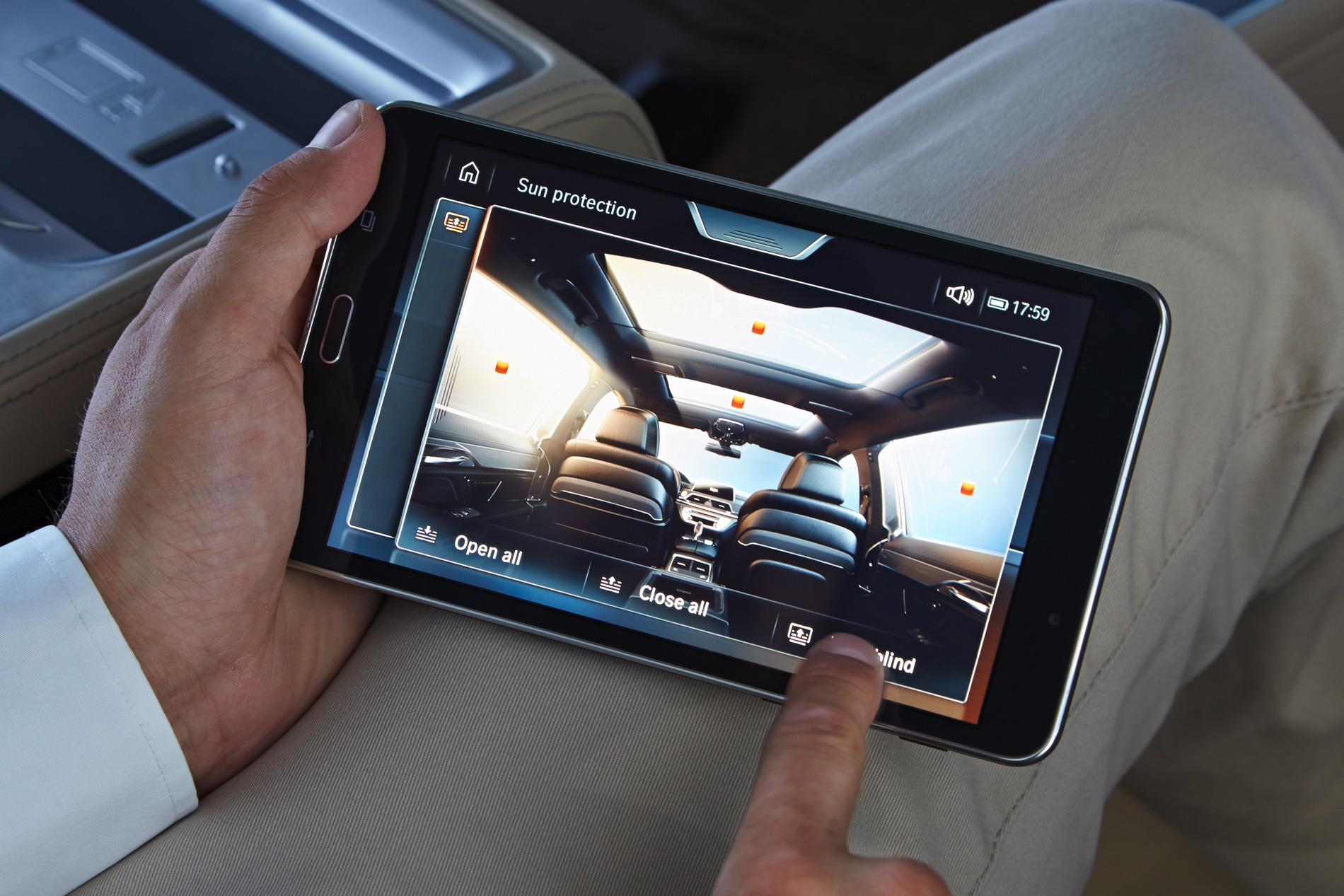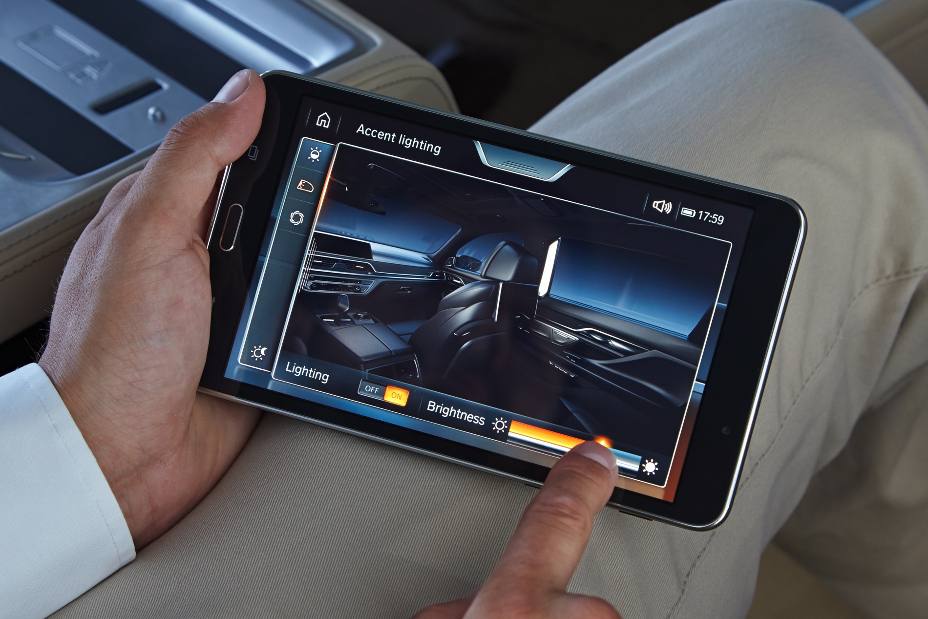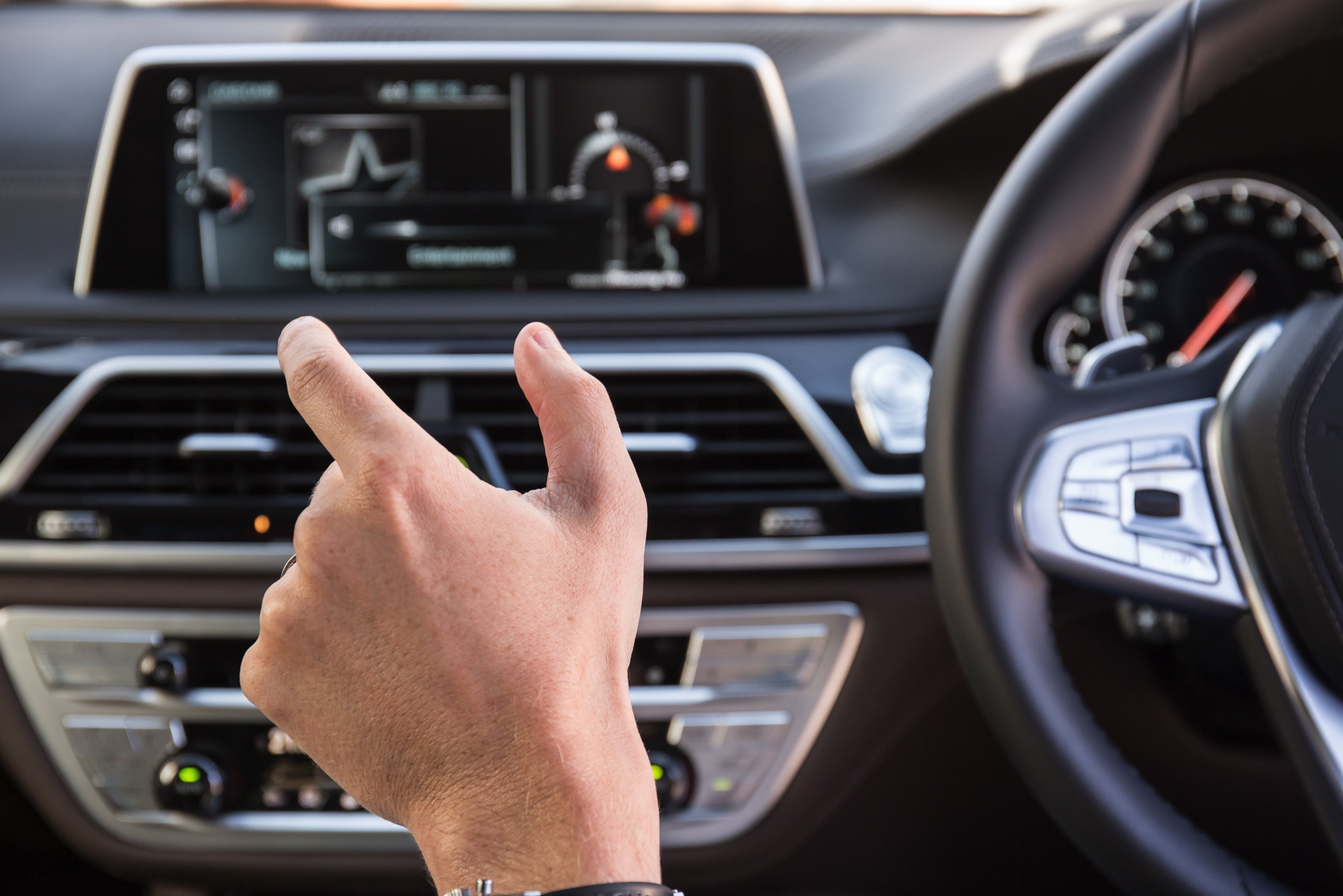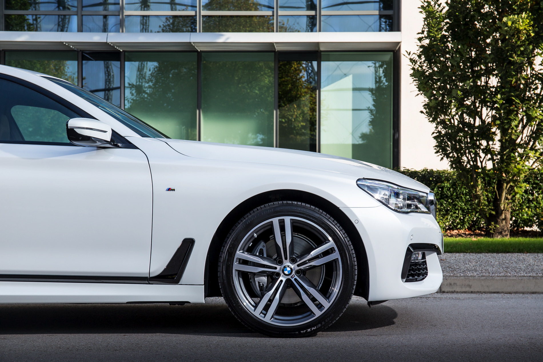 BMW’s 730d was fitted with the dynamic M Sport Package which includes an M aerodynamic body styling package comprising model-specific front/rear aprons and side skirts, plus 19-inch M light-alloy wheels in twin-spoke design, illuminated door sill finishers bearing the M logo and accents in either light or dark chrome. Inside there’s a BMW Individual headliner in Anthracite and Fineline black wood interior trim strips with high-gloss metal effect.