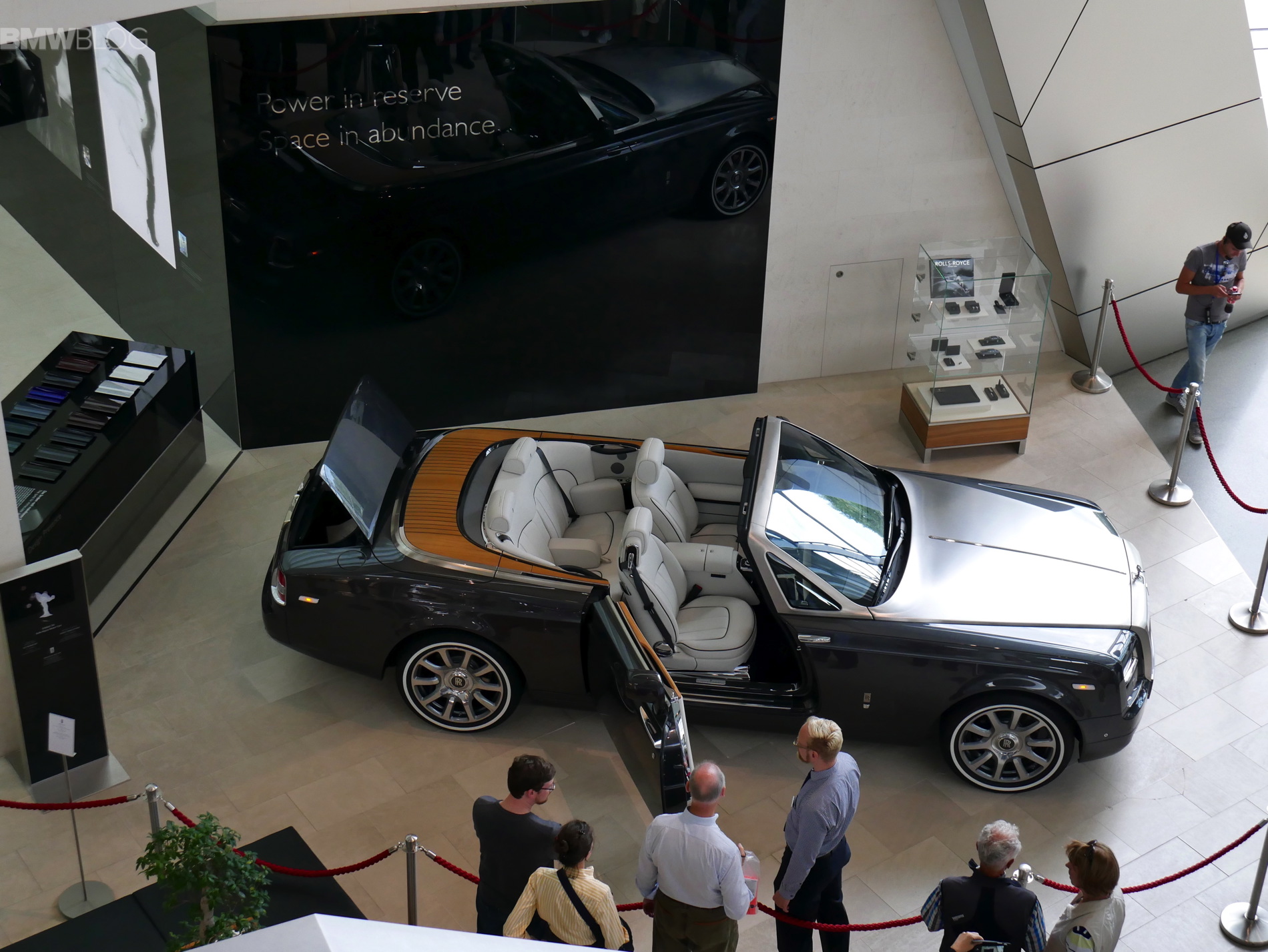 A little farther down is Rolls Royce which displays up close the stunning craftsmanship of the Phantom Drophead Coupe. It is roped off, so no touching but you can get pretty close to see the details up close.