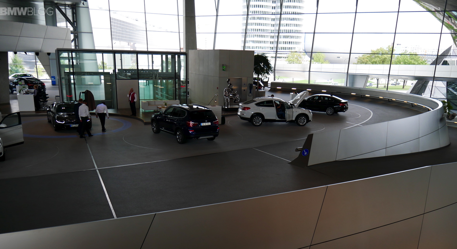 From the second level on a long winding bridge, you can watch the never ending delivery of new BMW’s to their owners. BMW places the cars on positioned on rotating discs that can line the BMW exactly the way the delivery specialist wants.