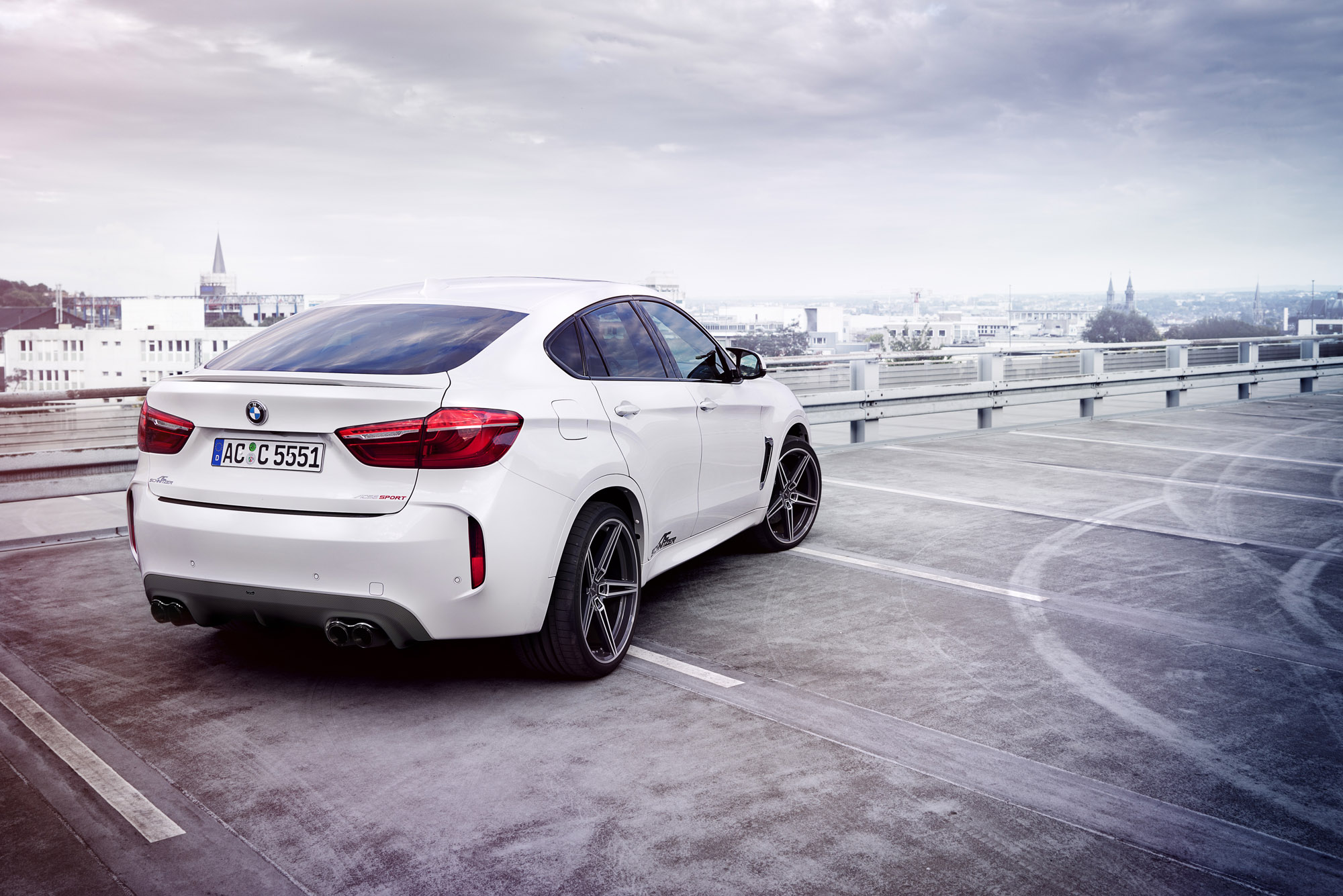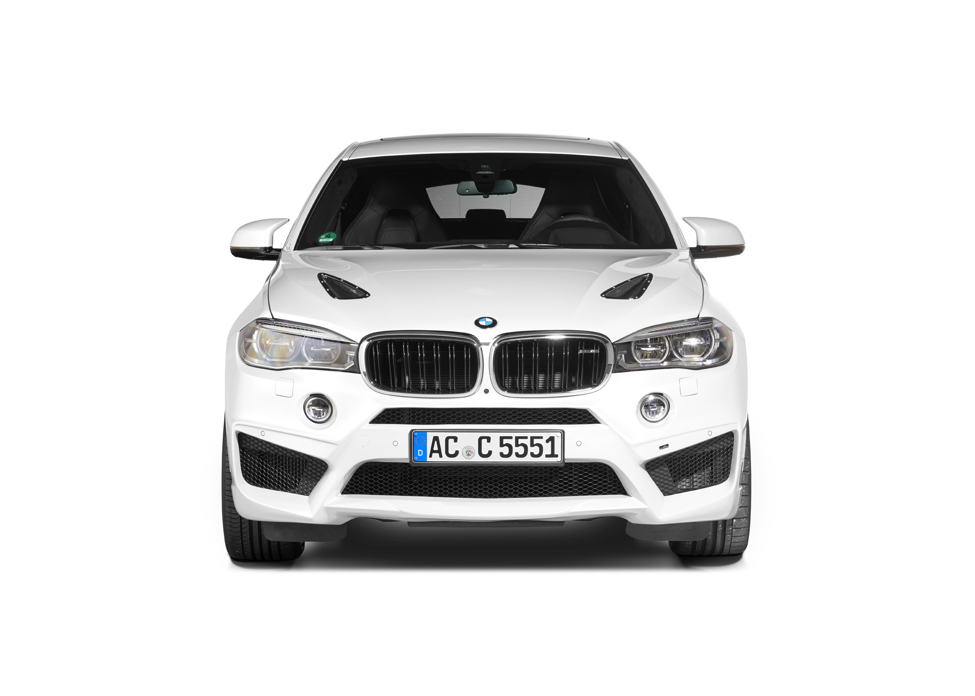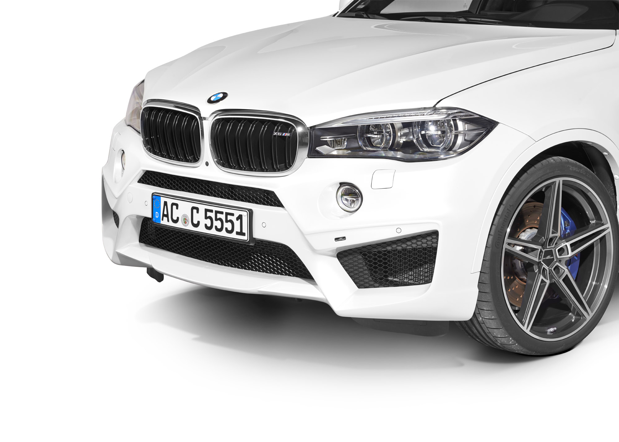 To improve the aesthetics of the X6 M, AC Schnitzer installed a new front skirt, a fixed carbon fiber rear wing, carbon rear skirt insert and vented sport bonnet, plus optional chrome design elements for the bonnet vents and the AC Schnitzer rear skirt decor film. The standard wheels were also swapped out for a custom solution in BiColor or matte anthracite finish. A 30mm lowering suspension spring kit for front and rear axle give the car a more composed stance.