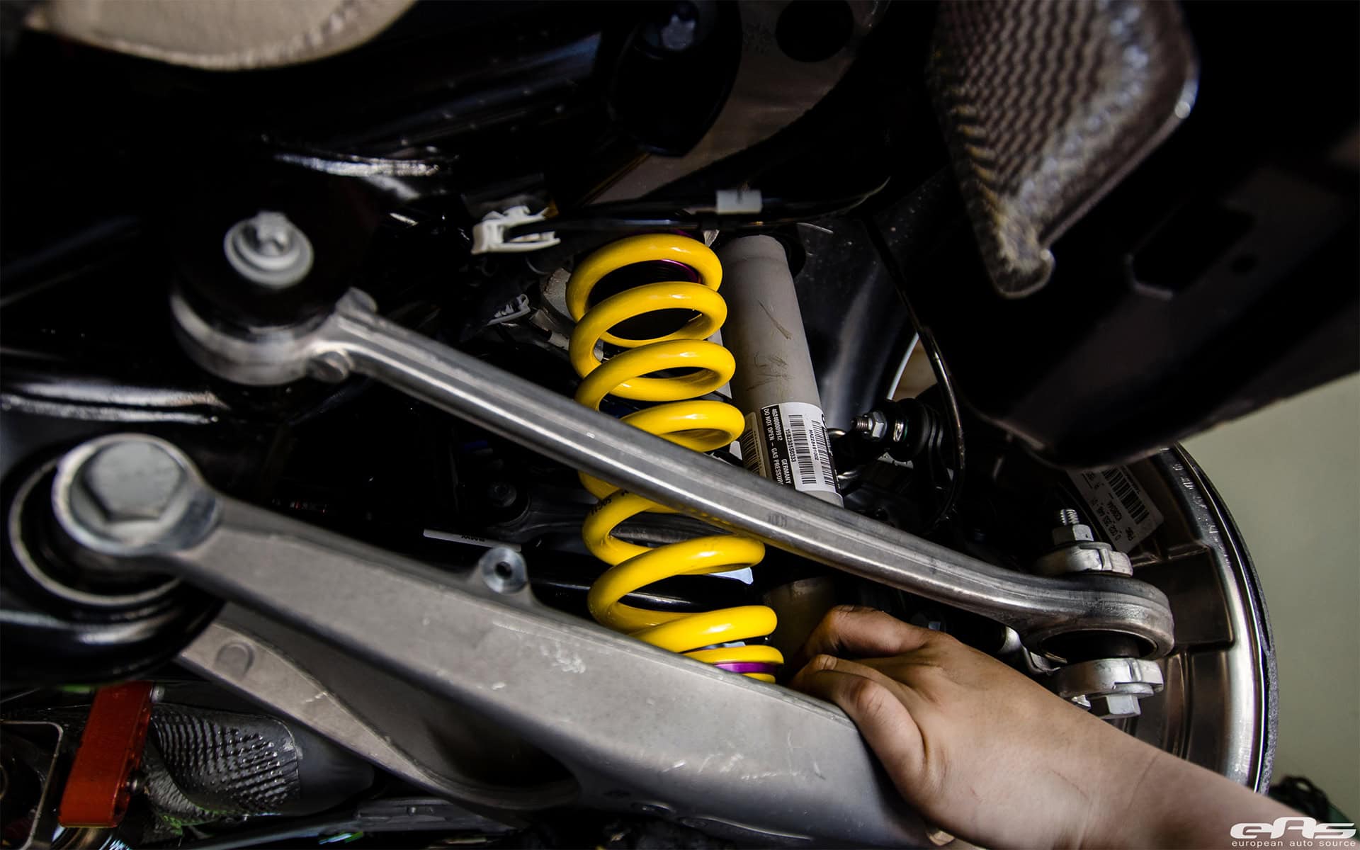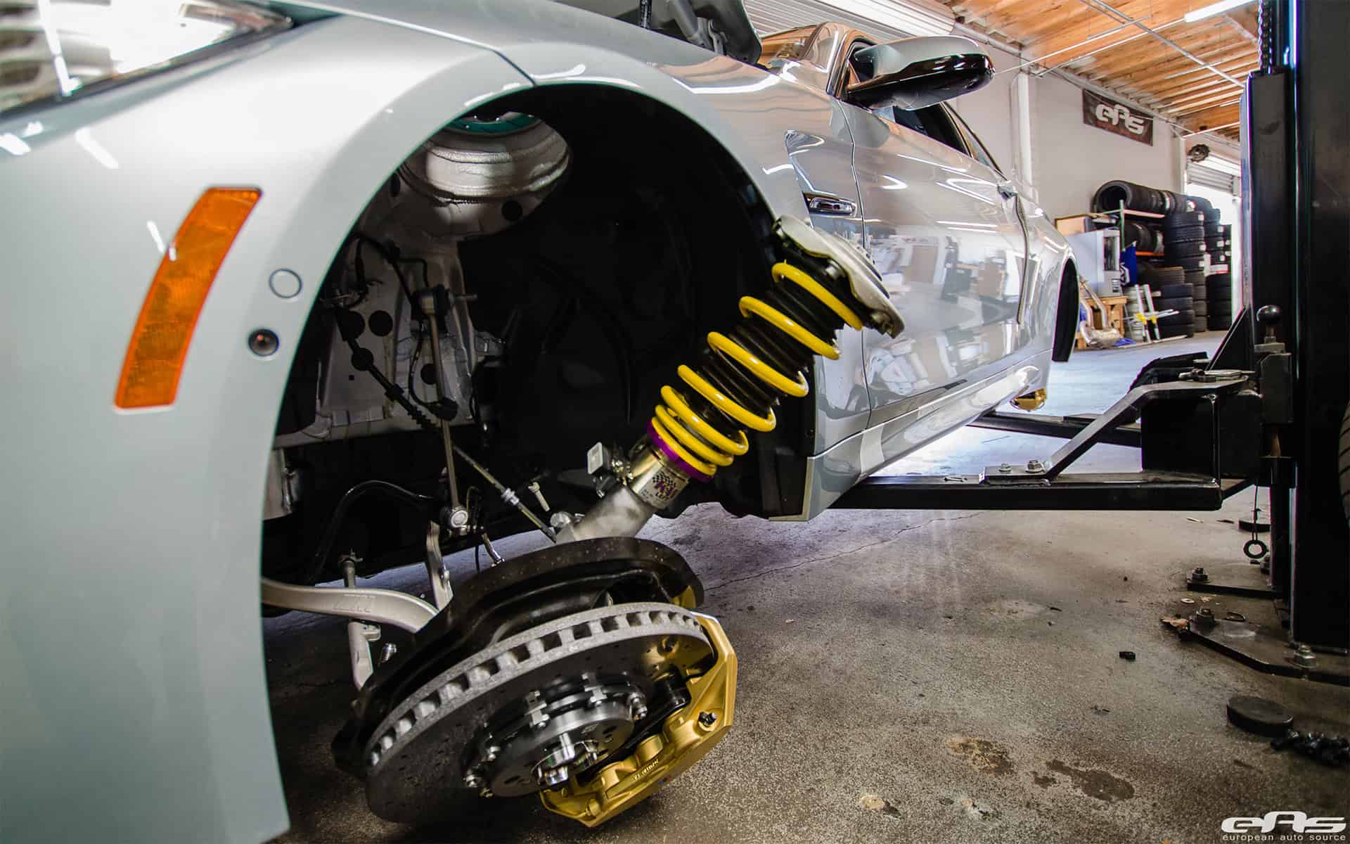 The guys at European Auto Source utilized their know-how and expertise, installing a set of visual and performance aftermarket modifications. A complete KW Height Adjustable Spring Kit was installed. These height adjustable springs kits are a great alternative to conventional springs. You can adjust the height with the KW height adjuster even after the kit has been installed. It’s a perfect solution if you wish to daily drive the car and track it on the weekends.
