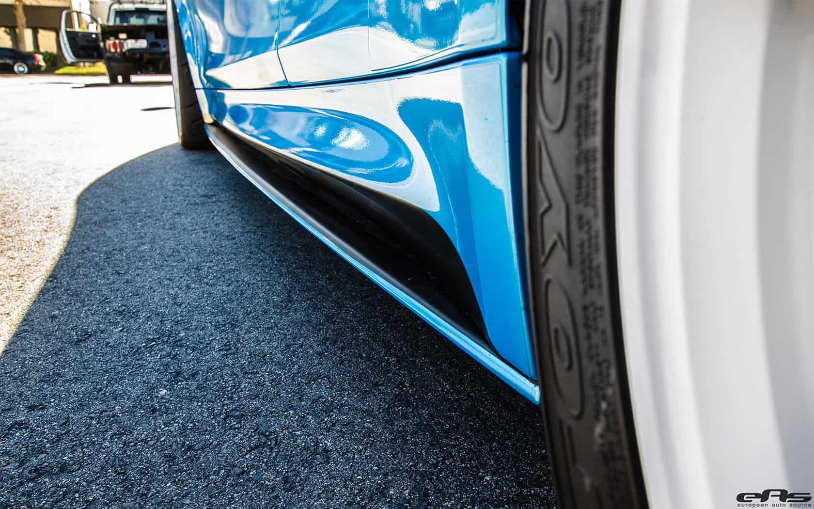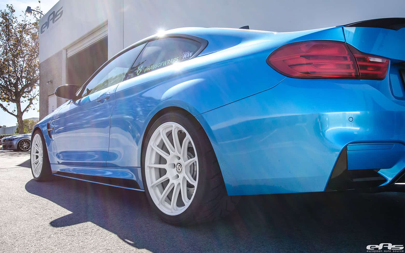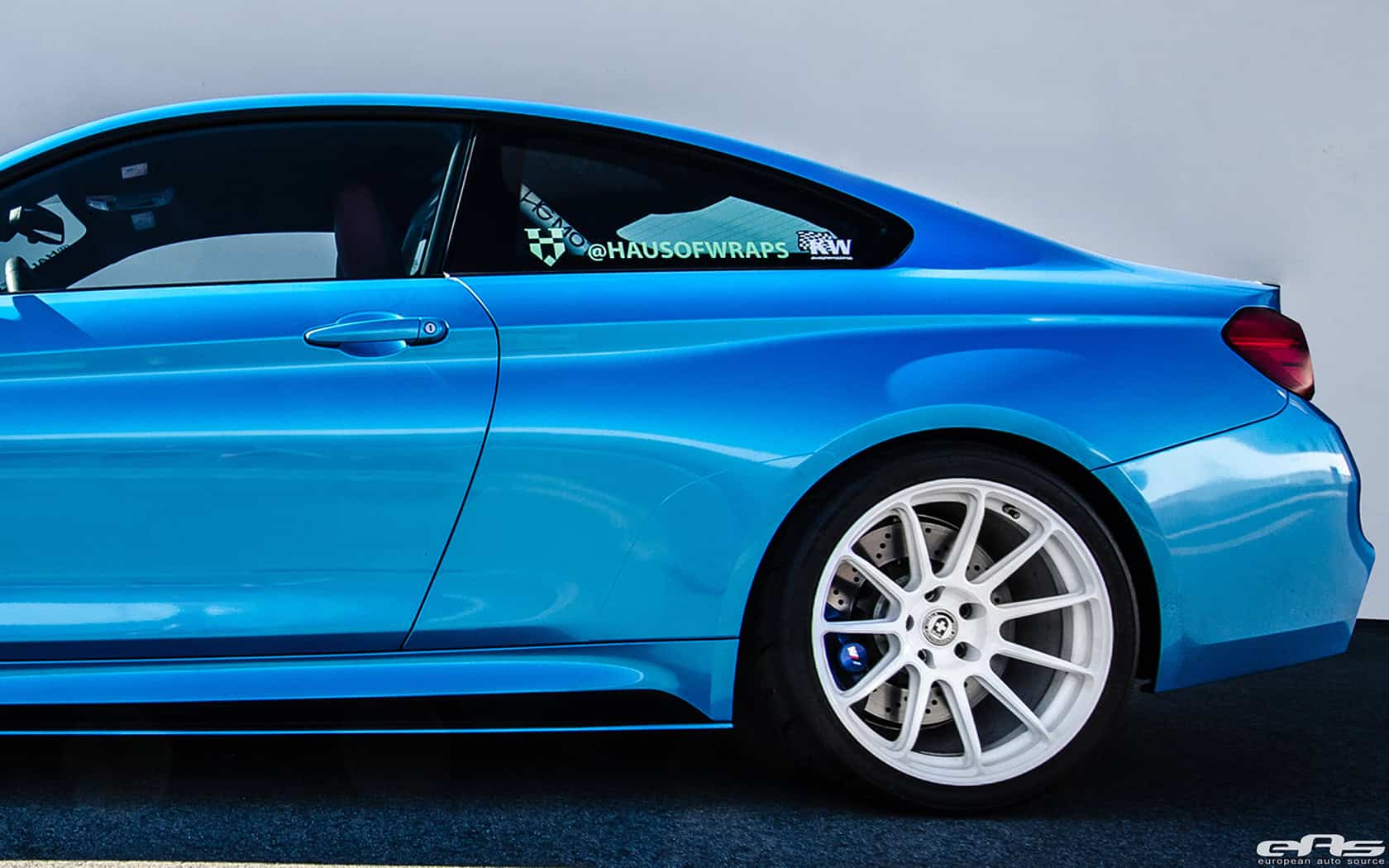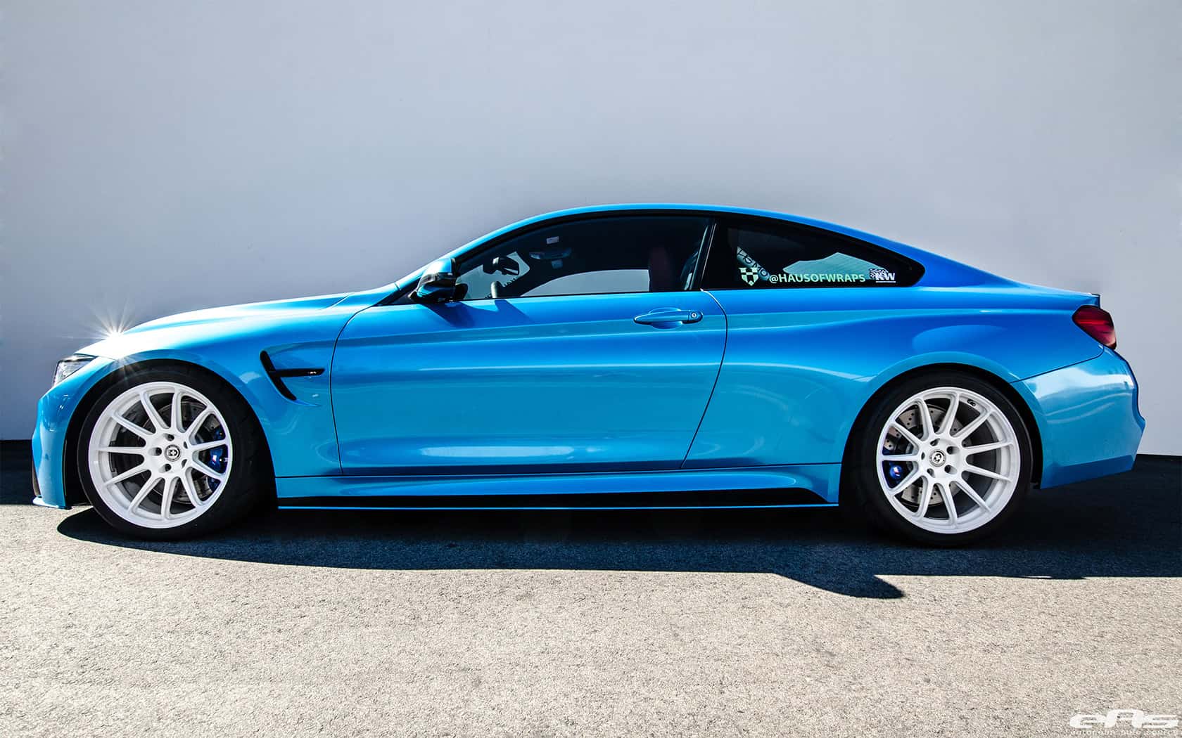 The vehicle sits on a set of pearl white HRE RC 103 wheels wrapped in Toyo R888 tires. This combination allows the Pearlescent Mexico Blue wrap on the M4 to really stand out. The aggressive stance of the vehicle is also enhanced thanks to a KW HAS Suspension. The build is wrapped up – no pun inteded – by a white HG Motorsports Roll Bar, Eisenmann GT4 Exhaust, and freshly installed AWRON DGA Display Gauges.