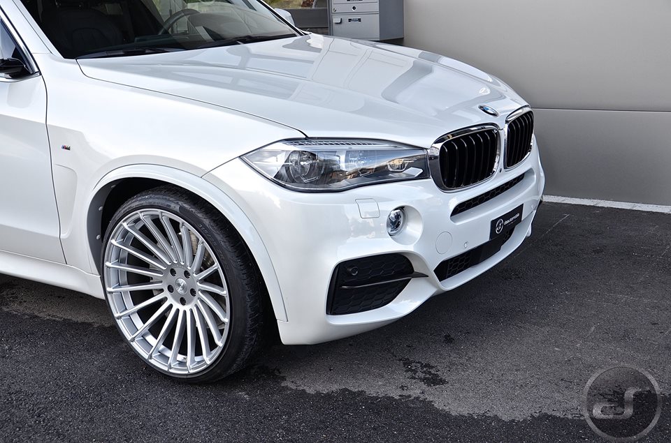 A new set of custom wheels was fitted to the X5 M50d as well. The Hamann Anniversary Evo wheels 11 x 23 inch with 315 mm tires give the car a powerful stance and more grip on the road – and on the track, if necessary.