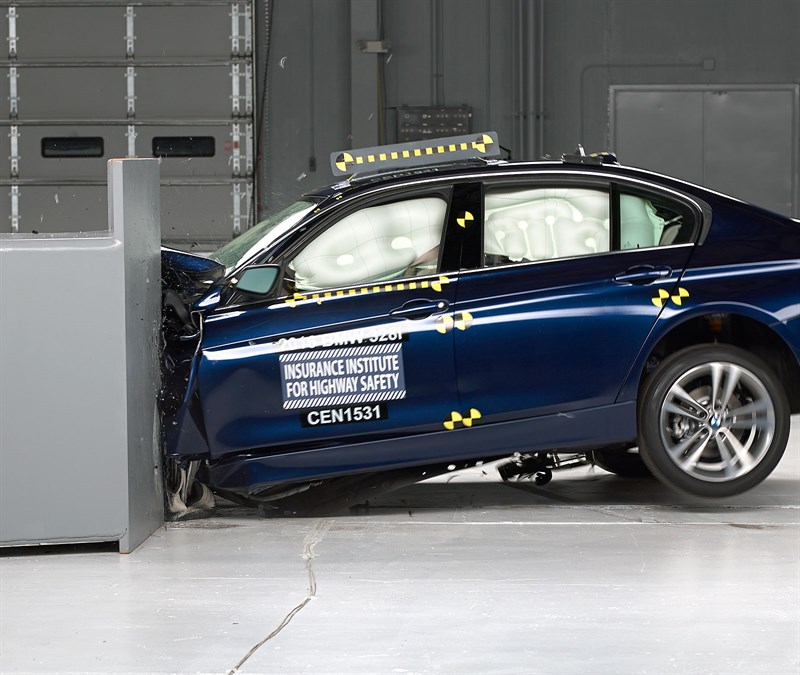The 2016 BMW 328i that was tested had shown signs of serious leg or foot injury for the driver of the vehicle and received a ‘marginal’ score. “The dummy’s right foot was trapped between the brake pedal and toepan, and the pedal had to be cut off to free the foot,”according to IIHS. Oddly enough, the test scores are better on the 2012, pre-LCI, BMW 328i.