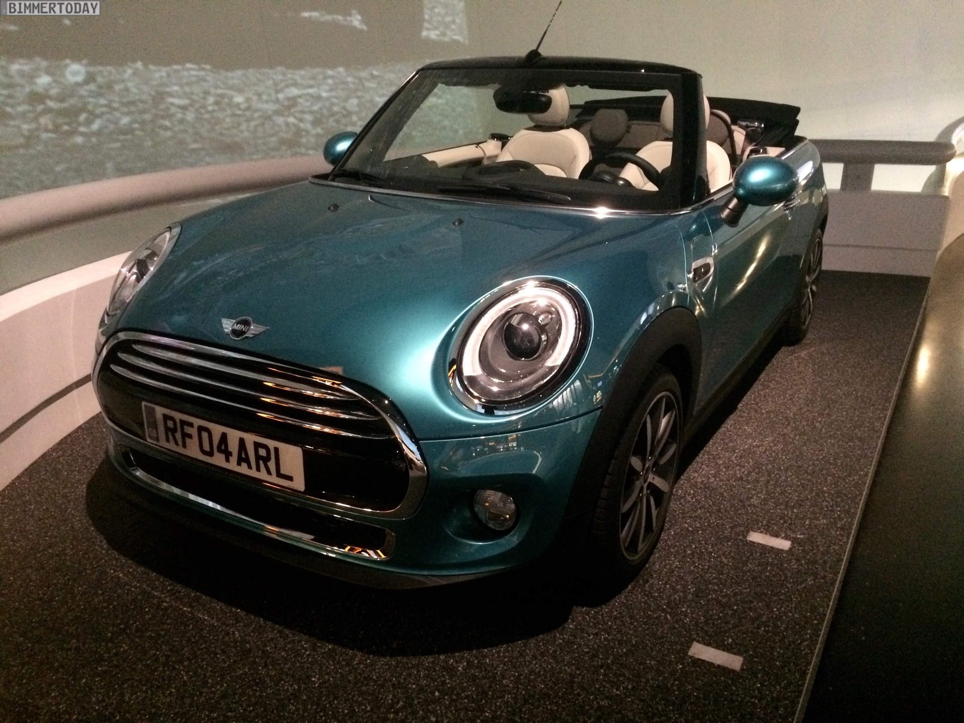 After its debut in Tokyo and LA, the new MINI F57 Cabrio lands in the BMW Welt in Munich glowing in a new exterior color – Caribbean Aqua – which will initially be available exclusively for the convertible.
