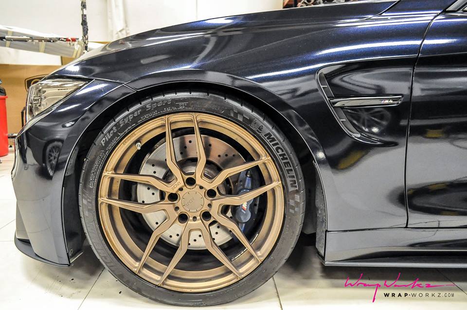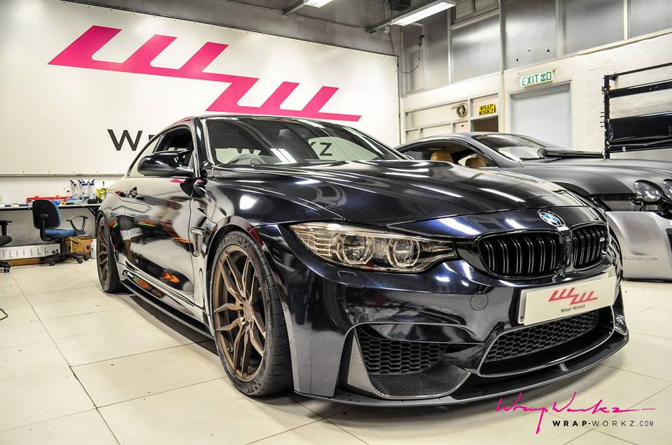 Take for example this Midnight Blue film installed by Wrap Workz on a BMW M4 Coupe. The blue metallic “paint” gives the car a unique look without taking away the beauty of the car’s design. We even dare to say that it actually accentuates the lines, giving the M4 both a more premium and sportier look.