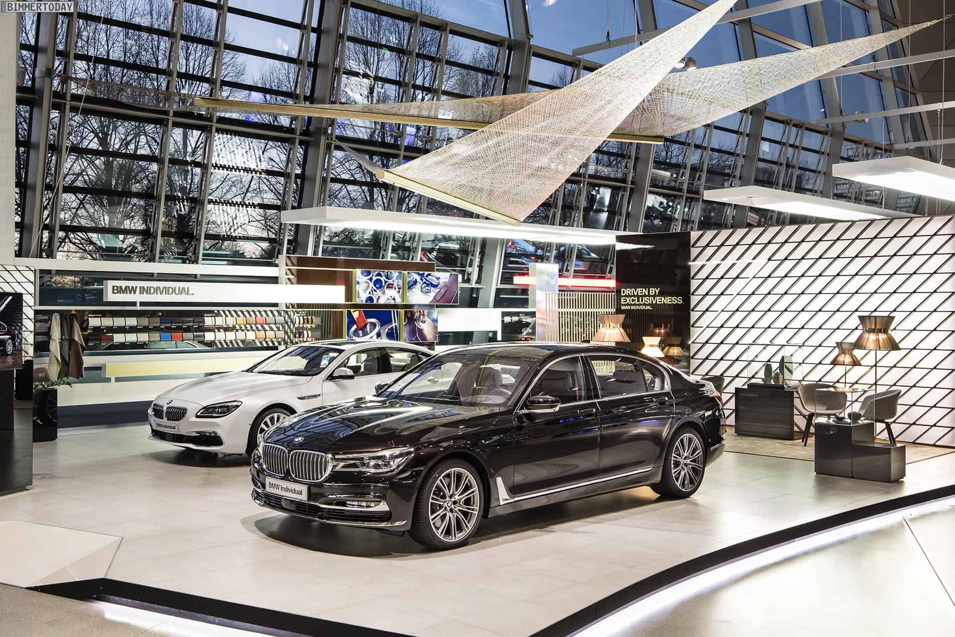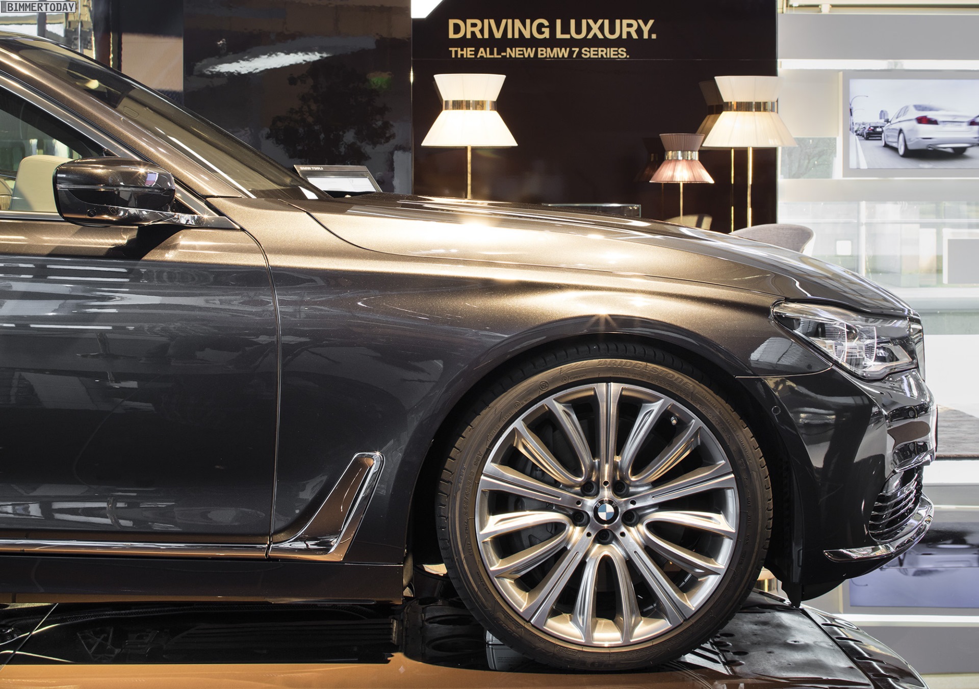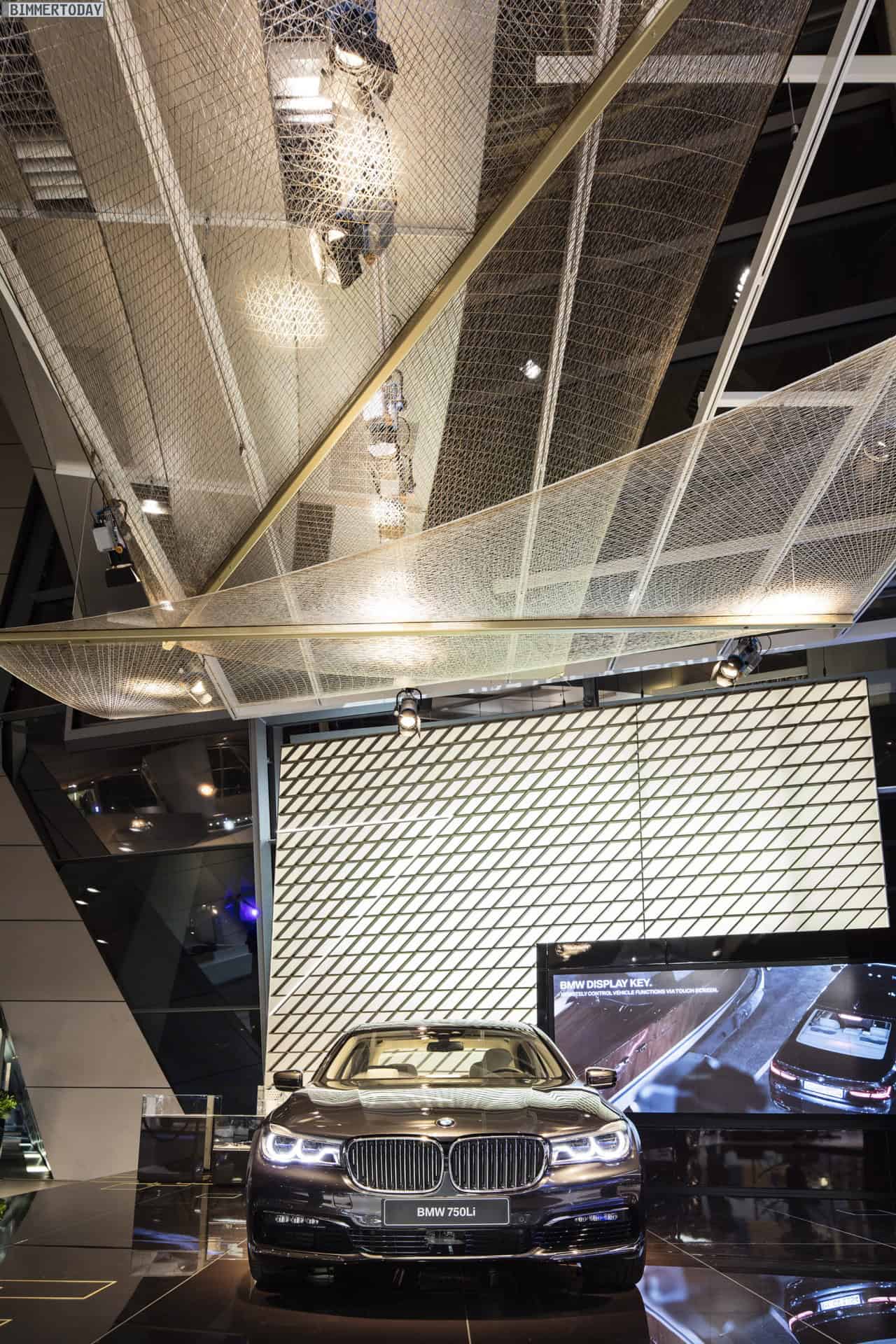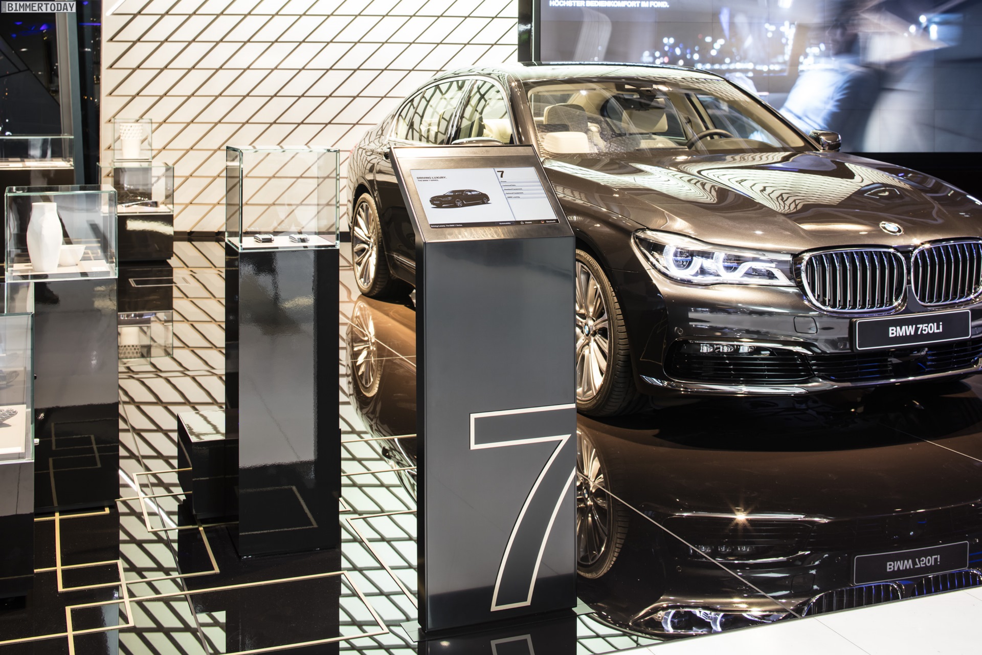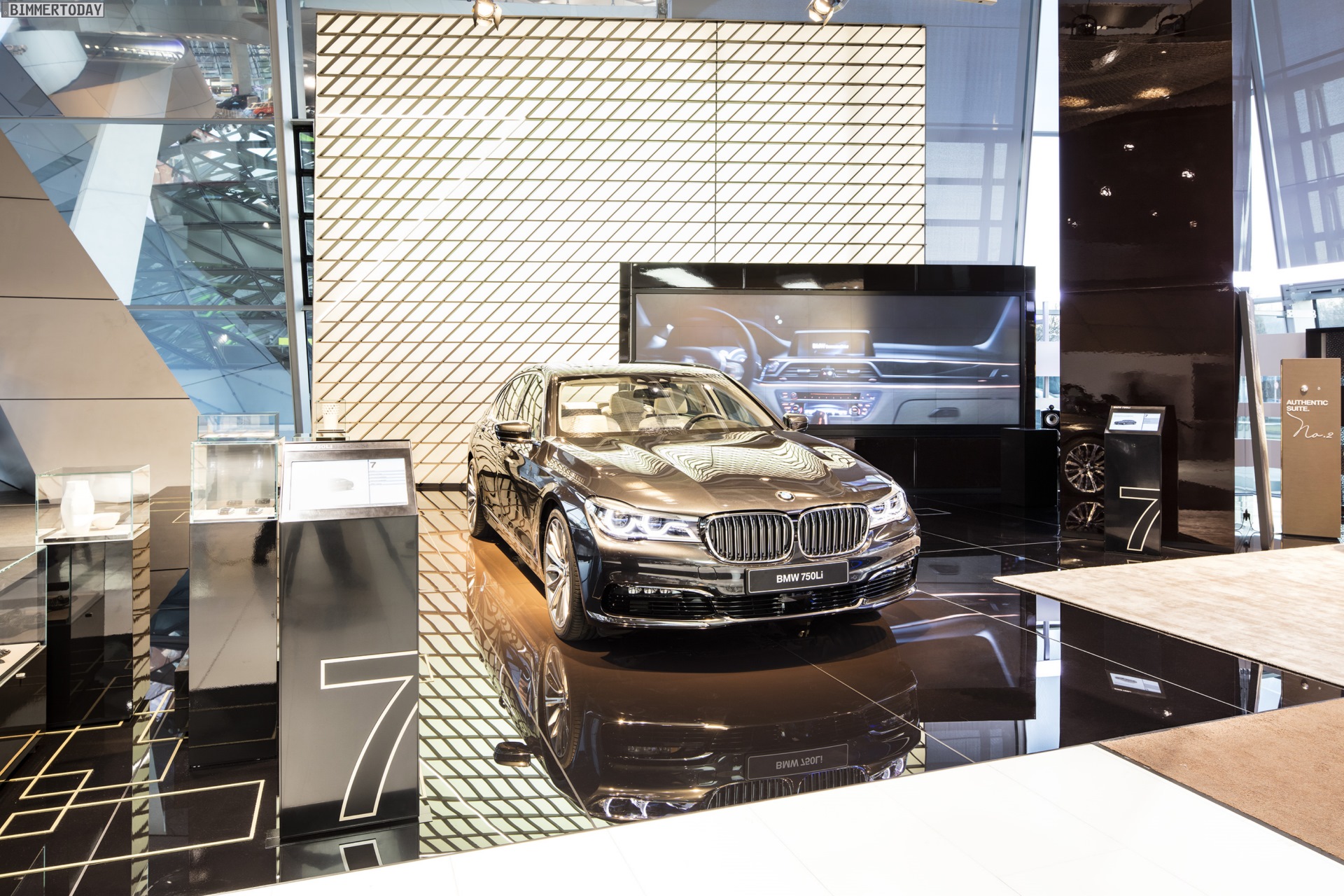 The new BMW 7 Series takes the centerstage at the BMW Welt in Munich. With a special exhibition – under the motto “Driven by Exclusiveness” – the Bavarians are showing the infinite customization program of the G11/G12 7 Series limousine. In the separate exhibition area at the southern entrance of the BMW Welt one can find a BMW 750Li G12, while a few steps high-quality equipment and options can be admired by visitors.