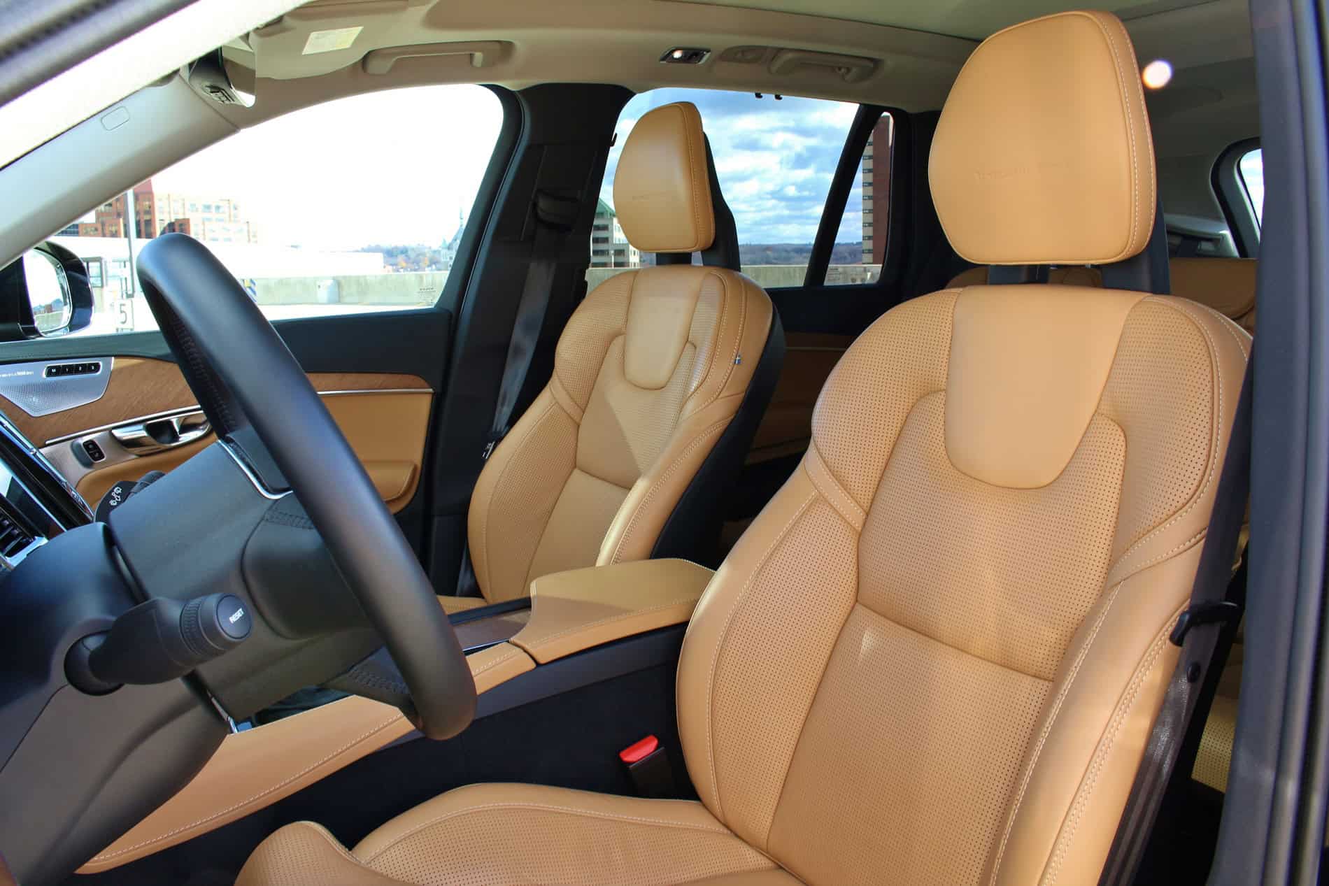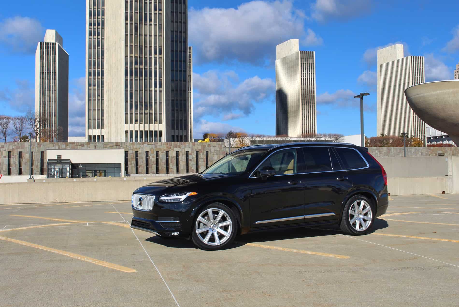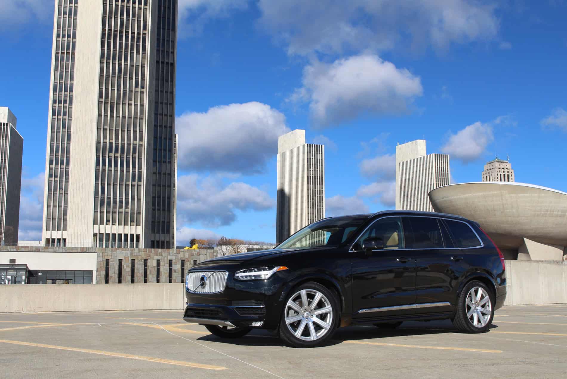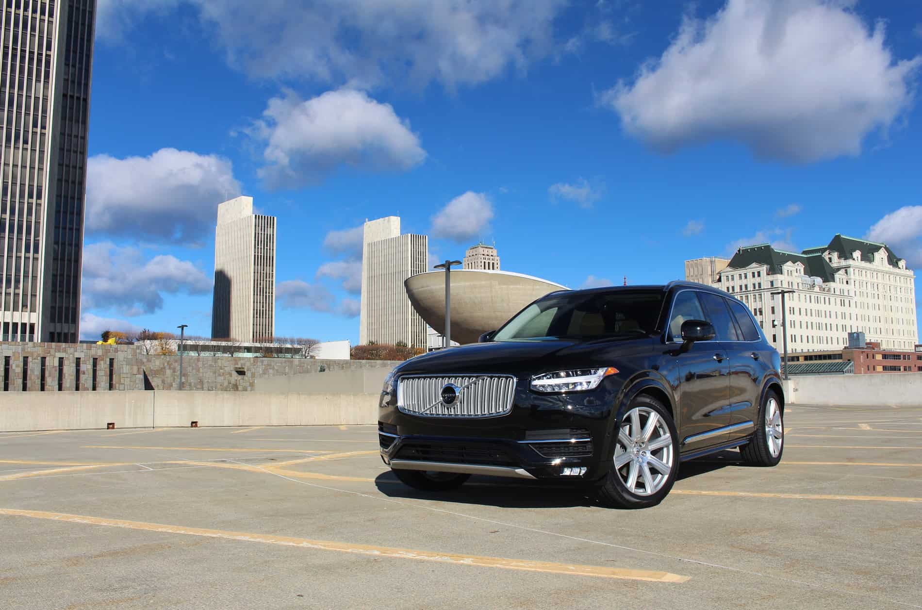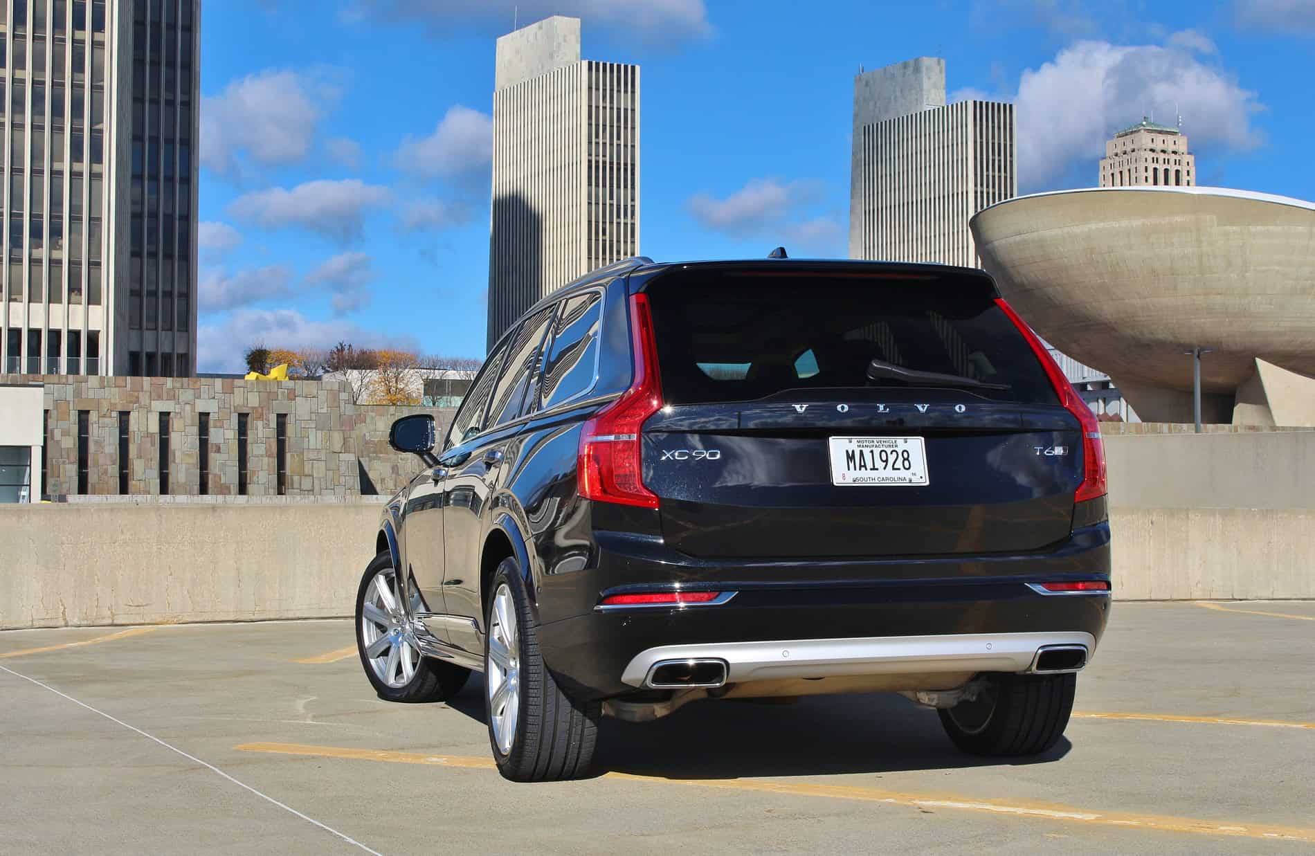 The engine in the 2016 XC90 is completely new. The 4,394 lb beast is powered by a 2.0-liter supercharged and turbocharged four cylinder engine, producing 316 hp and 295 lb-ft of torque. It’s paired with an 8-speed automatic transmission. It offers plenty of power with smooth gear changes. With a four cylinder engine, you do sacrifice the more appealing six or eight cylinder engine sound, but it does make up for it when it comes to fuel economy. The EPA estimates 20 mpg city and 25 mpg highway. Combined driving is rated at 22 mpg, however, our week with the XC90 it got a solid 20 mpg. Let’s just say we’re fans of this excellent forced induction engine. The big SUV handles exceptionally as well, especially in dynamic driving mode. Similar to its competitors, it offers adjustable driving modes (eco, comfort, off road, dynamic, individual). Volvo’s adaptive air suspension and adaptive dampers, an $1,800 option, provide comfort even on the bumpiest of city streets.