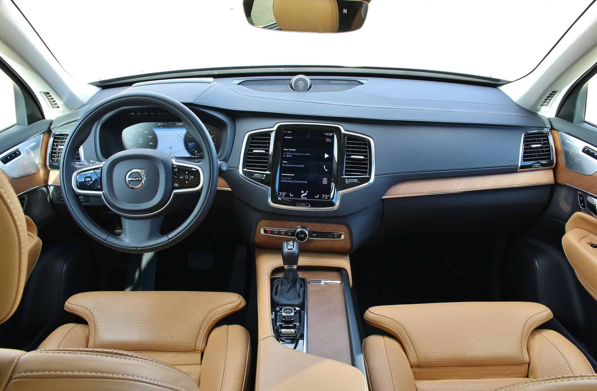 Besides Tesla, Volvo is the only other company that decided to integrate a tablet-like interface as its infotainment system. They call it Sensus. For those that use a tablet on a daily basis, whether it be Apple or Android, will find Sensus a breeze to use. And like Tesla, they orient the screen vertically to cut down on the need to scroll and help make map viewing easier. You can swipe to the left or right to access different menus or push the home button at the base of the screen to return to the main menu. It’s an intuitive system that throws out the textbook on automotive interfaces. Viewing maps and zooming in and out has become easier with the natural pinch in/out feature. Sometimes, you don’t even have to be in the car. By using the Volvo on Call app on your smartphone, it’s possible to start the engine remotely, warm/cool the cabin, get roadside assistance, unlock/lock the doors, and set GPS destinations. When you’re on the go, you’ll still be connected with voice recognition and a built-in hotspot. The icing on this Swedish meatball, however, comes from Volvo’s partnership with Bowers & Wilkins. with their goal of recreating the sound of Gothenburg Concert Hall. It’s an entirely new experience listening to a song you’ve heard hundreds of times though the XC90’s 1,400 watt,19 speaker audio system.