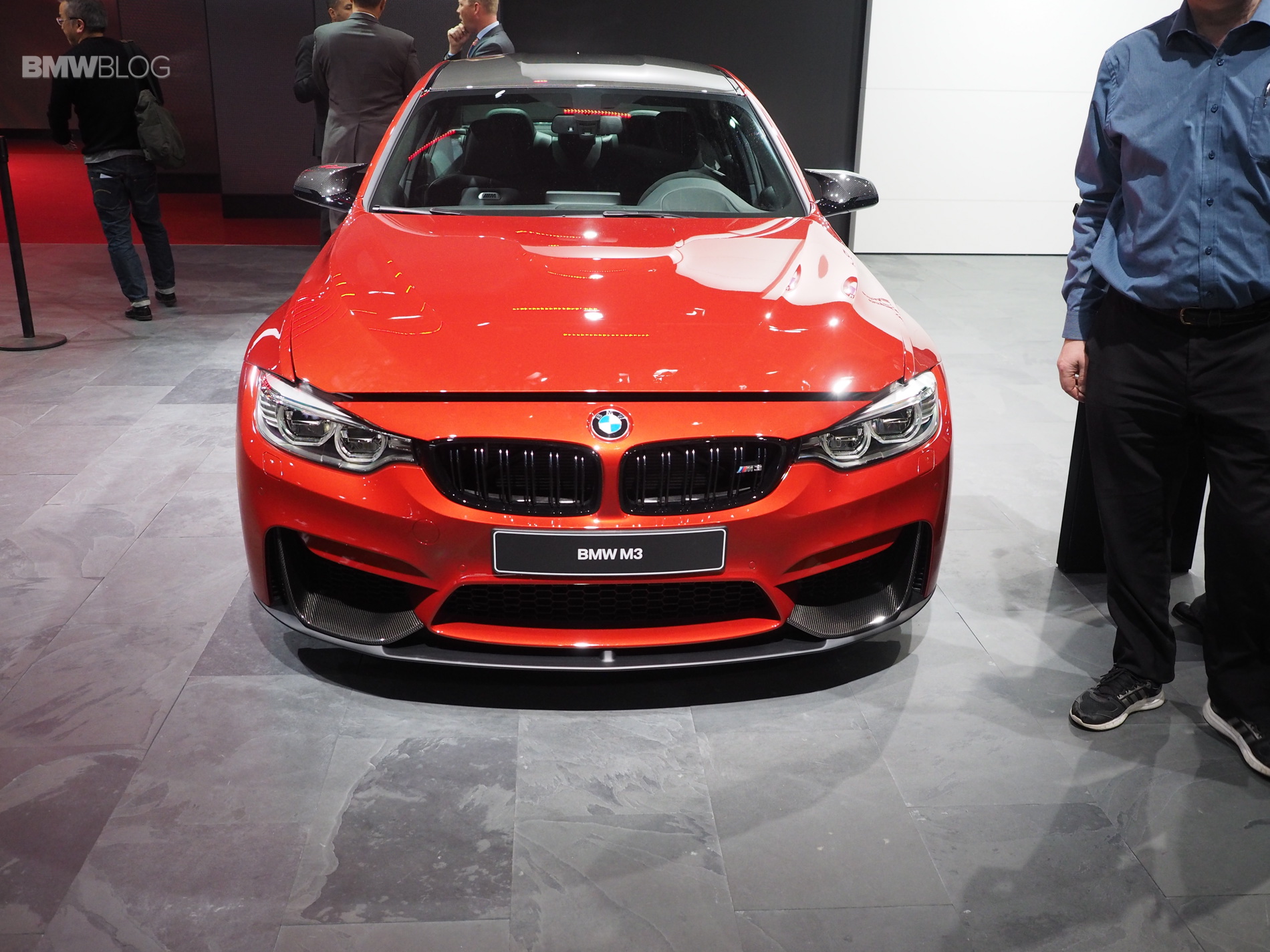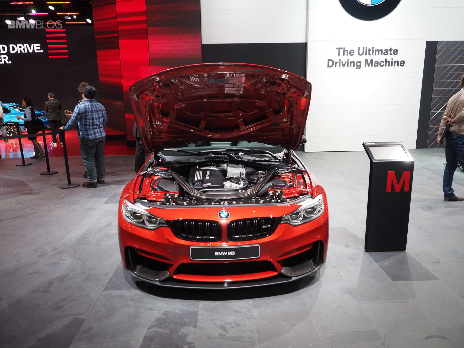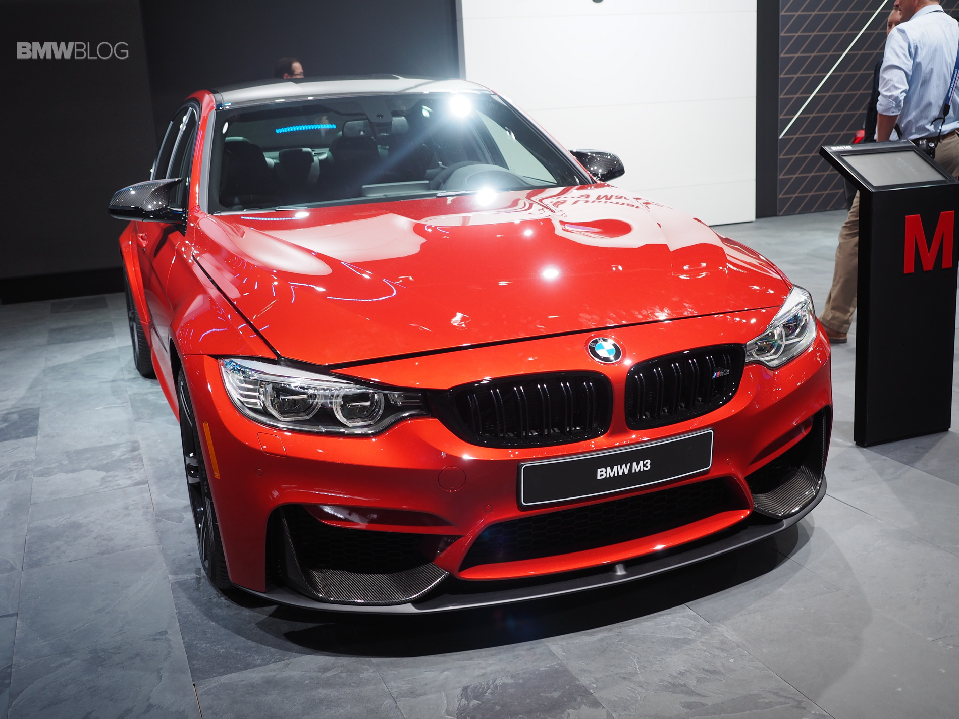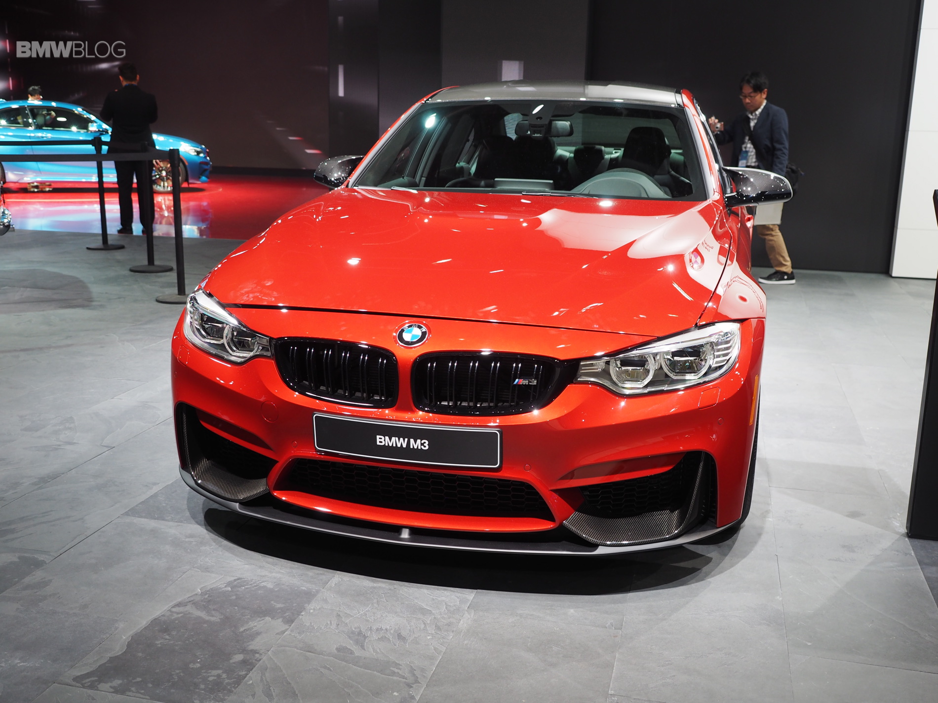 While the M2 takes the center stage at the BMW booth in Detroit, a BMW M3 in Sakhir Orange attracts a crowd as well. The flashy paint job and the BMW M Performance Parts give this M3 an unique look. The sporty sedan comes decked out with a carbon fiber front splitter, carbon fiber air curtains, carbon fiber rear spoiler, mirror caps and a rear diffuser.