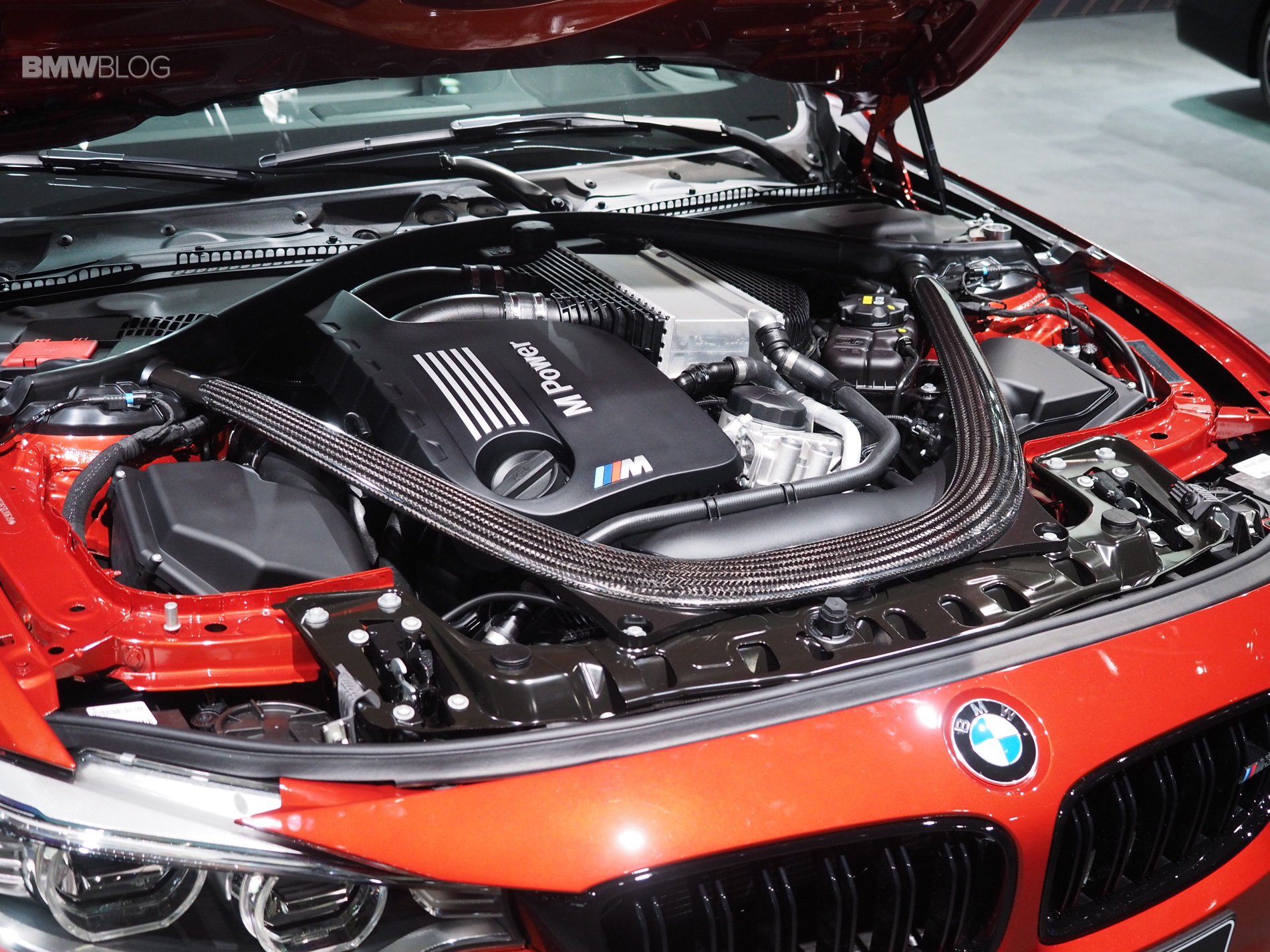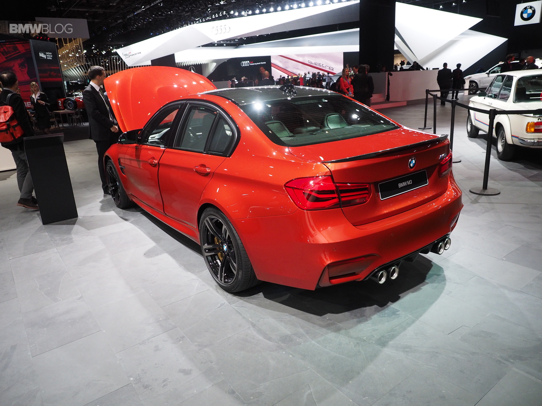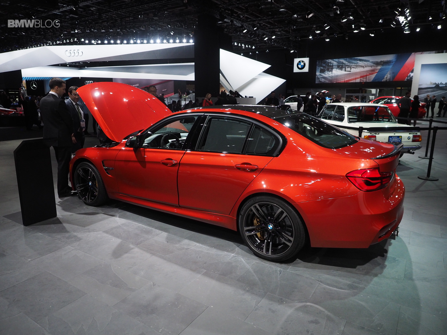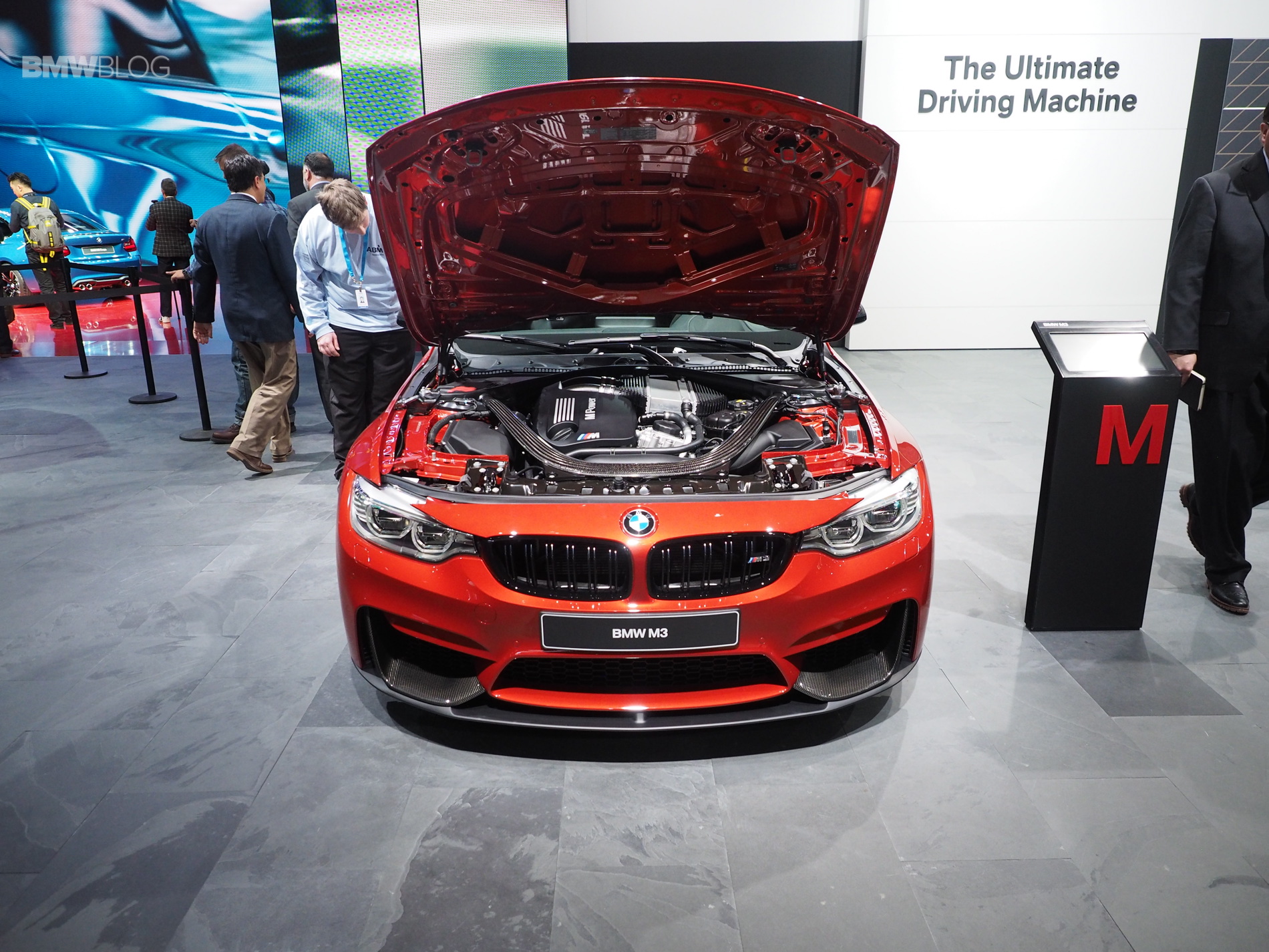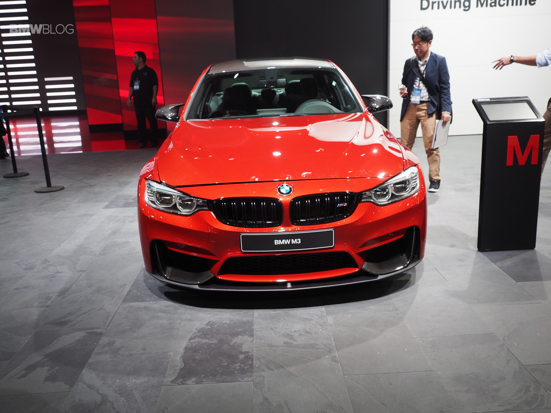 While the M2 takes the center stage at the BMW booth in Detroit, a BMW M3 in Sakhir Orange attracts a crowd as well. The flashy paint job and the BMW M Performance Parts give this M3 an unique look. The sporty sedan comes decked out with a carbon fiber front splitter, carbon fiber air curtains, carbon fiber rear spoiler, mirror caps and a rear diffuser.