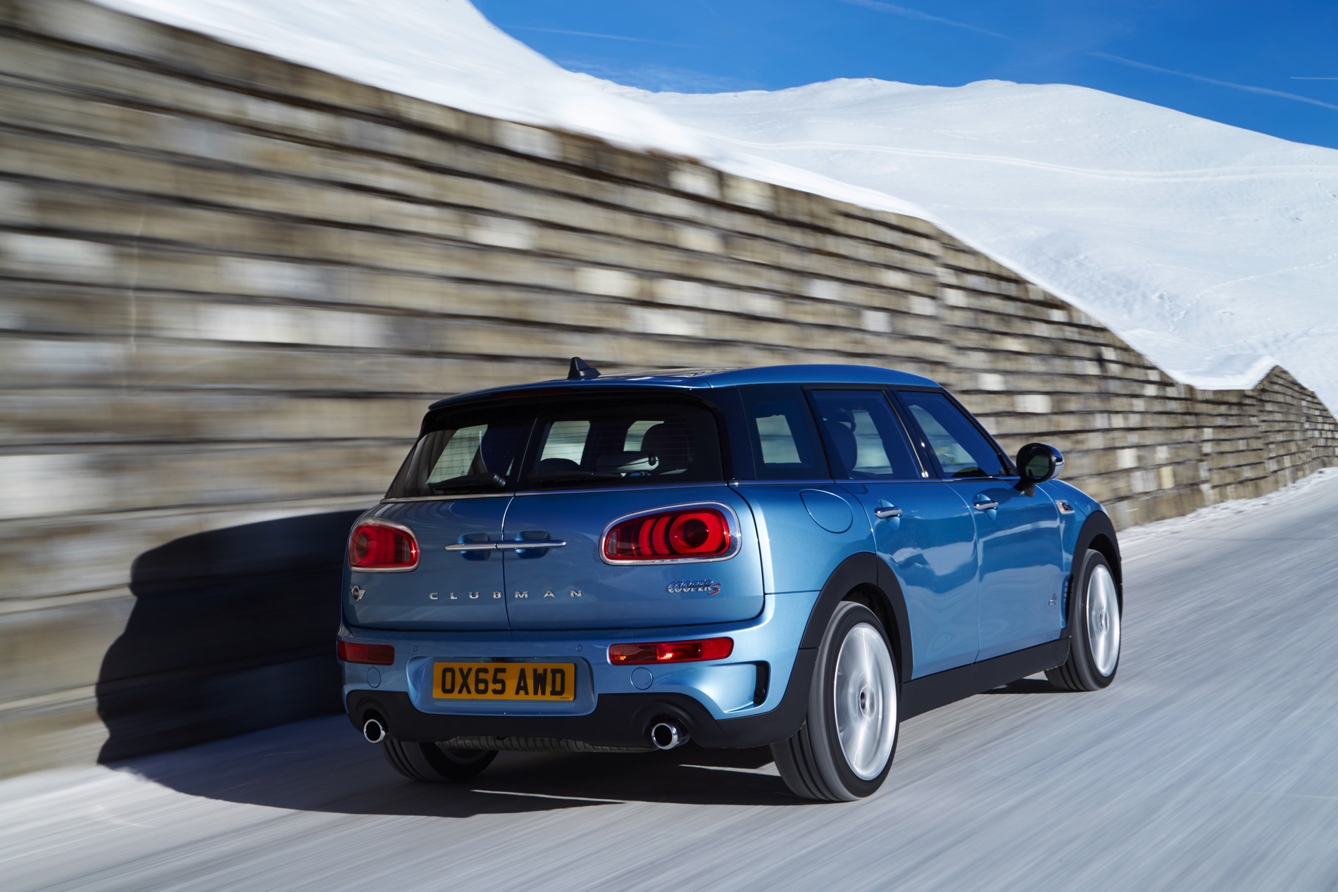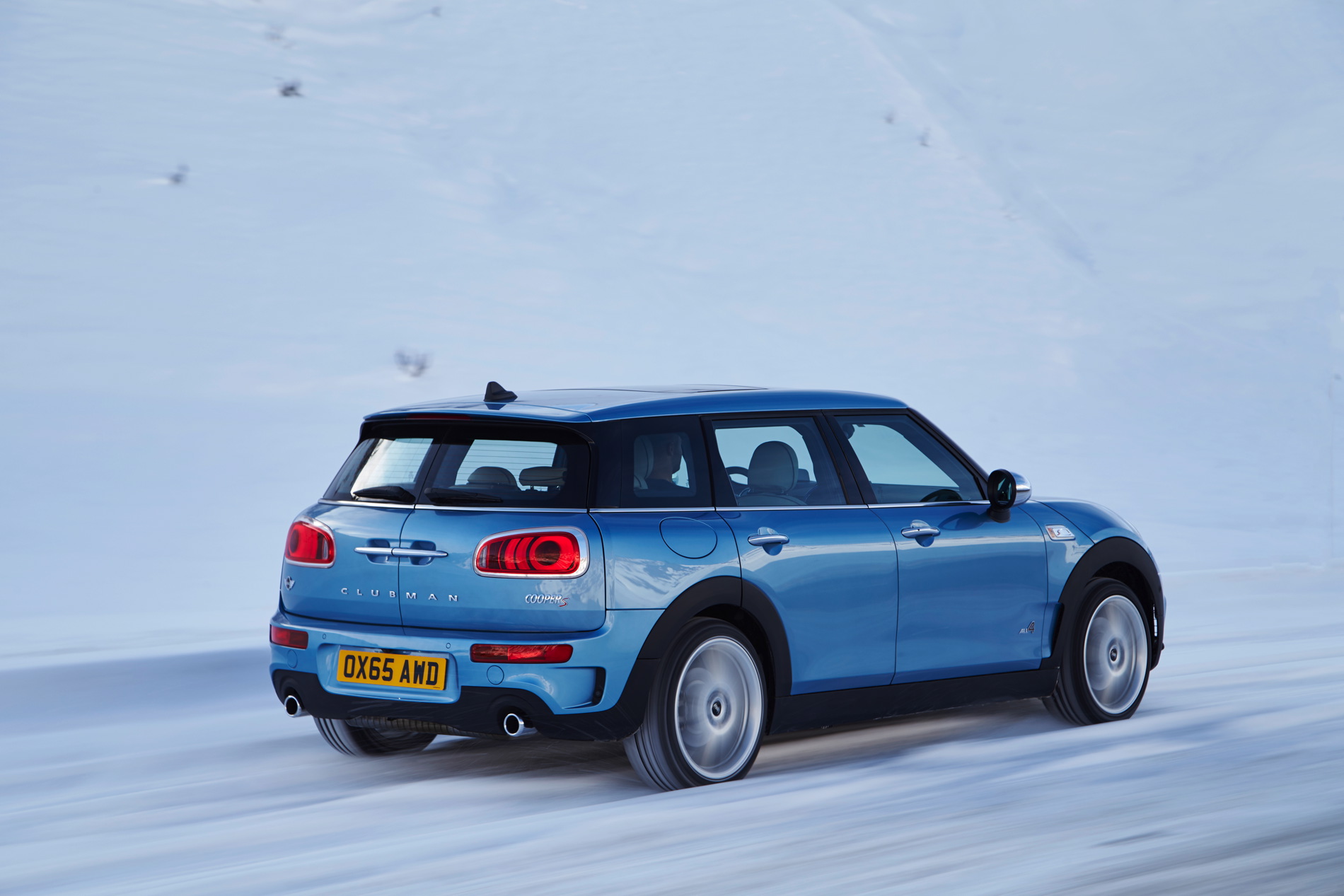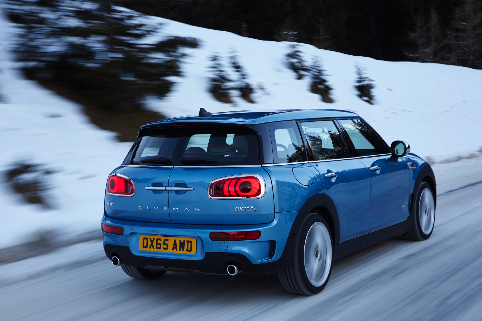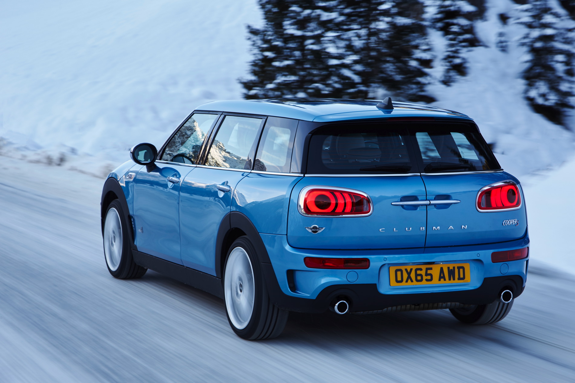 MINI Cooper S Clubman ALL4: 4-cylinder petrol engine with MINI TwinPower Turbo Technology (turbo charging, direct injection, fully variable valve control, variable camshaft control), capacity: 1998 cc, output: 141 kW/192 hp at 5 000 rpm, torque: 280 Nm at 1 250 rpm (300 Nm with overboost), acceleration (0–100 km/h): 7.0 seconds (automatic: 6.9 seconds), top speed: 225 km/h (225 km/h), average fuel consumption*: 7.0 – 6.9 liters (6.4 –6.3 liters)/100 kilometers, CO2 emissions*: 162 – 159 g/km (149 – 146 g/km), exhaust emission standard: EU6.