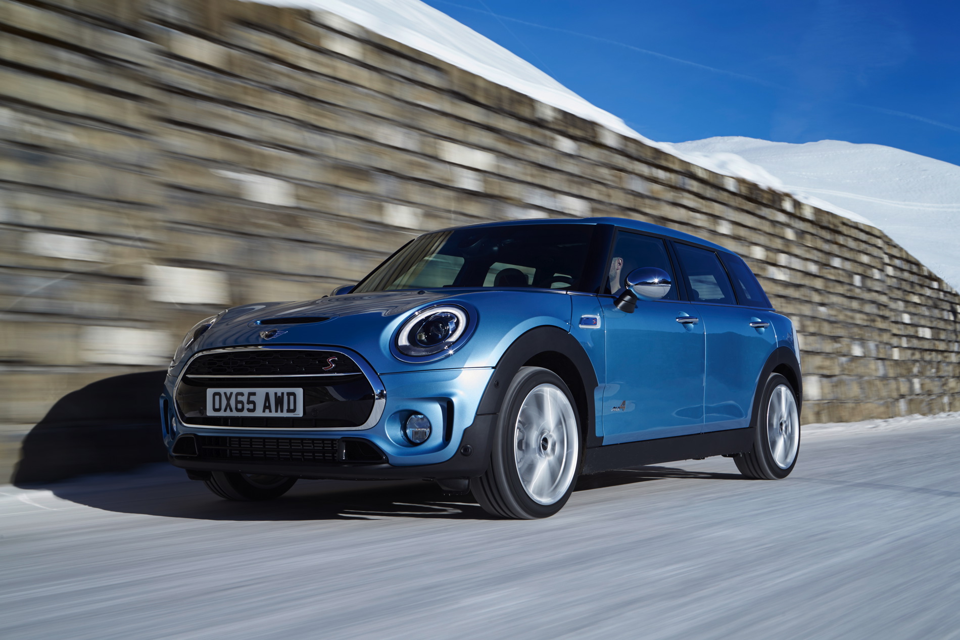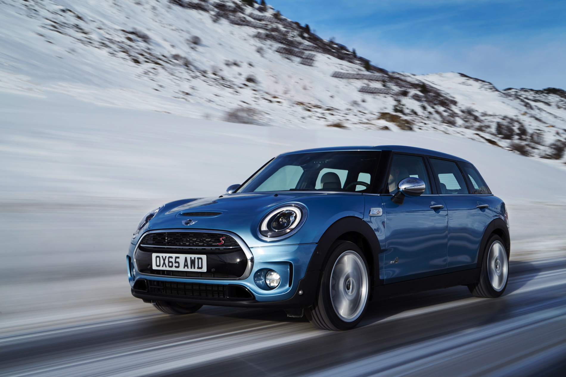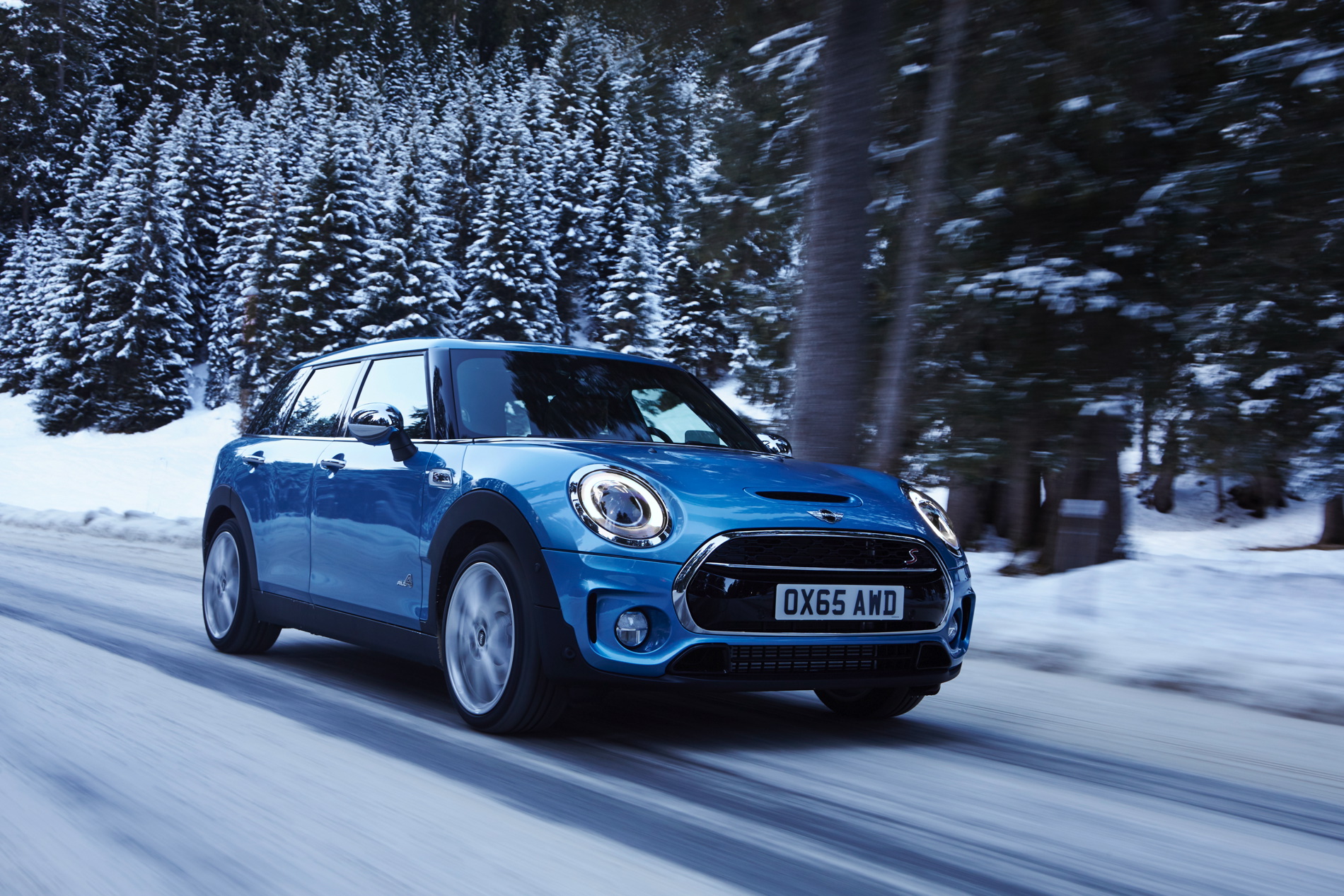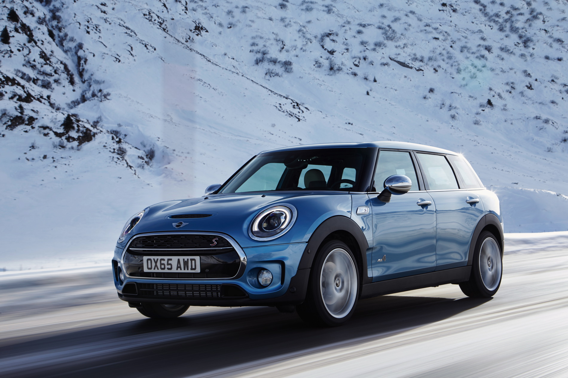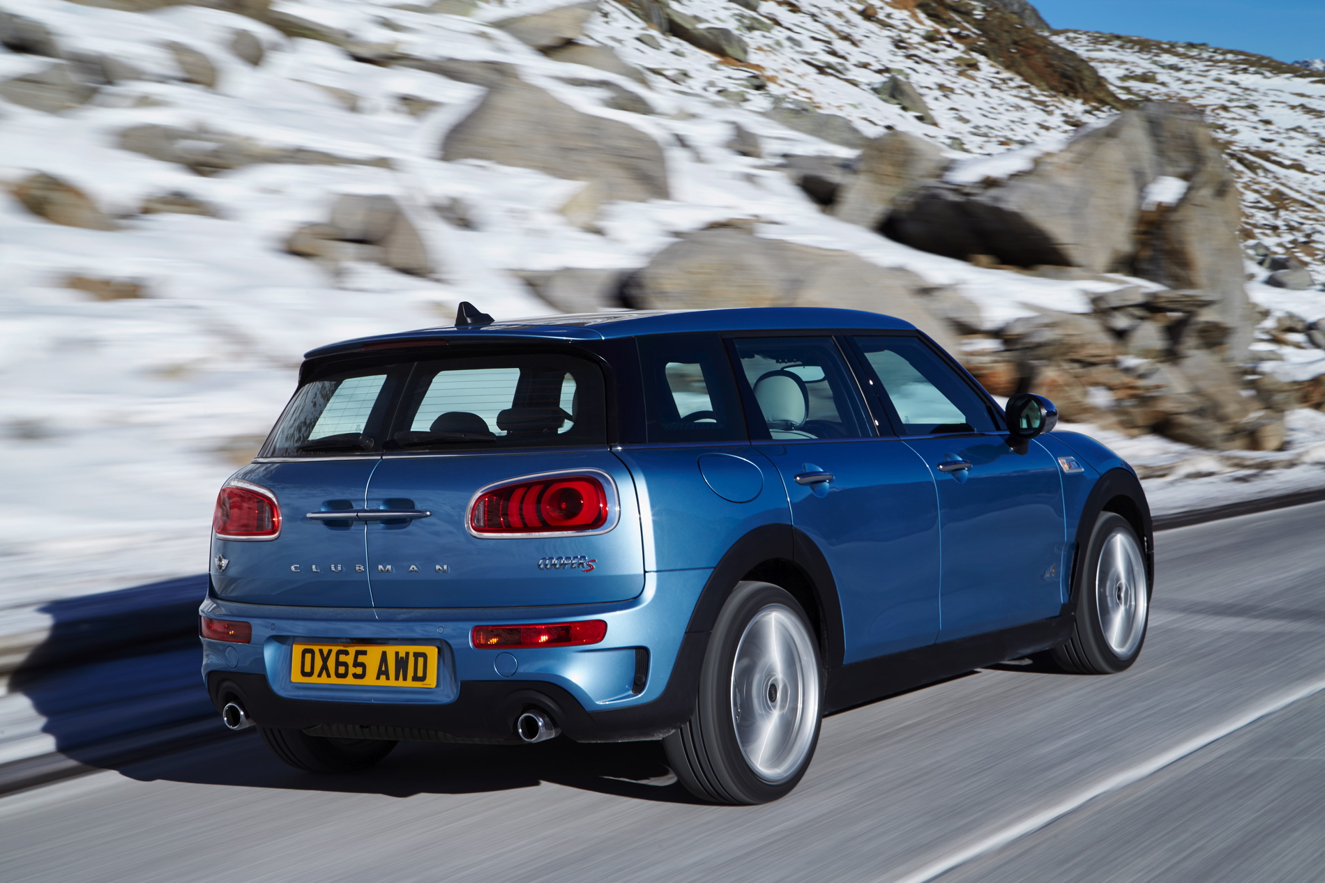 MINI Cooper S Clubman ALL4: 4-cylinder petrol engine with MINI TwinPower Turbo Technology (turbo charging, direct injection, fully variable valve control, variable camshaft control), capacity: 1998 cc, output: 141 kW/192 hp at 5 000 rpm, torque: 280 Nm at 1 250 rpm (300 Nm with overboost), acceleration (0–100 km/h): 7.0 seconds (automatic: 6.9 seconds), top speed: 225 km/h (225 km/h), average fuel consumption*: 7.0 – 6.9 liters (6.4 –6.3 liters)/100 kilometers, CO2 emissions*: 162 – 159 g/km (149 – 146 g/km), exhaust emission standard: EU6.
