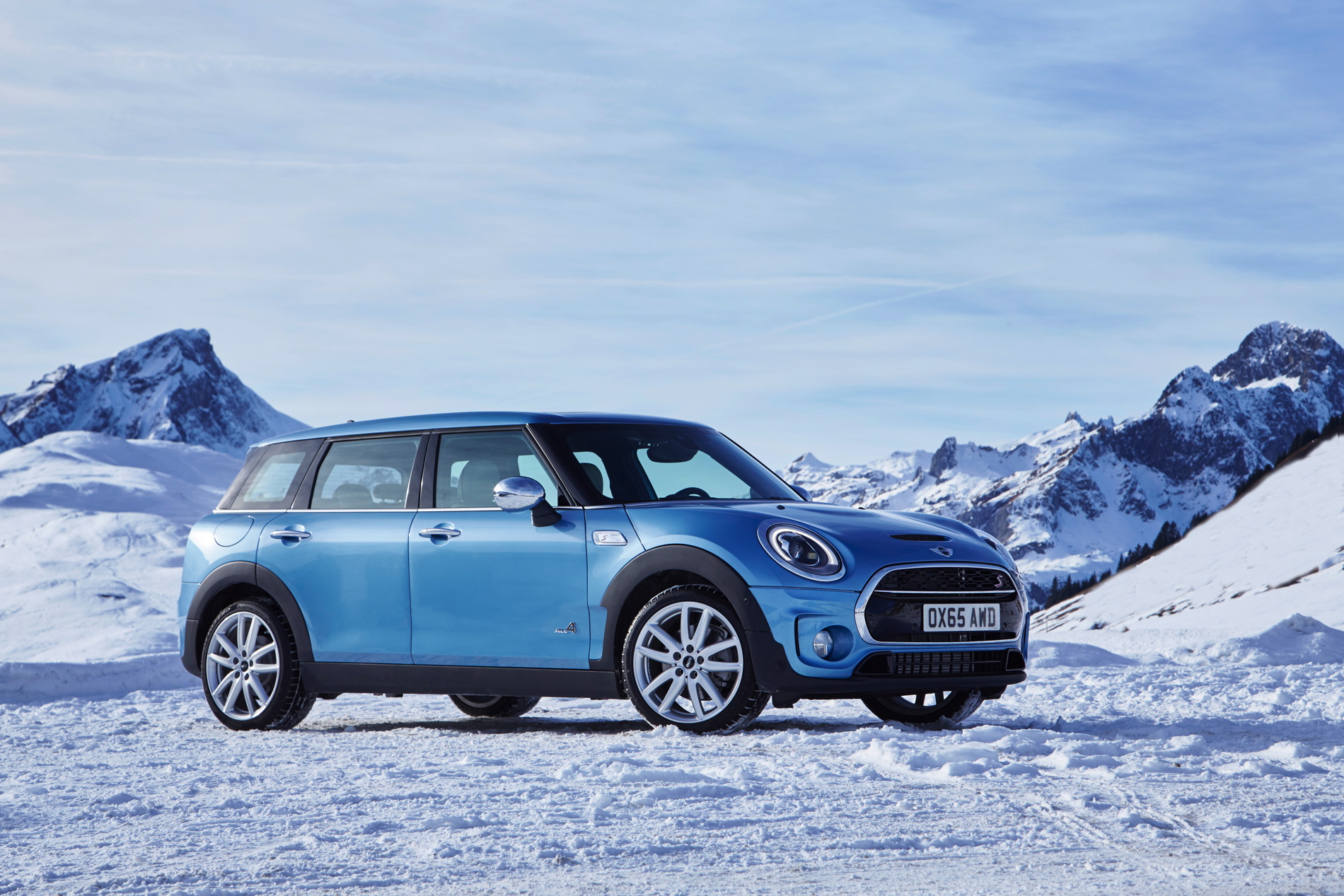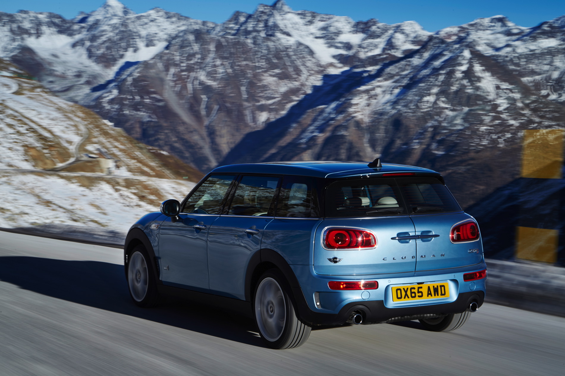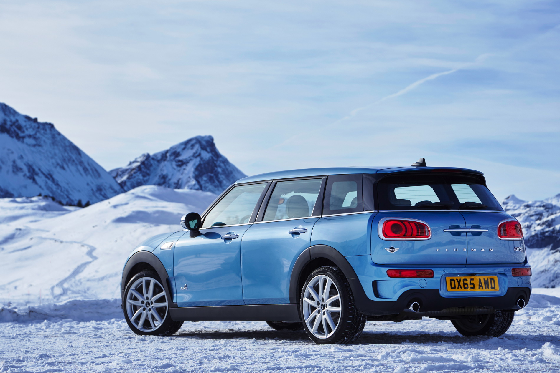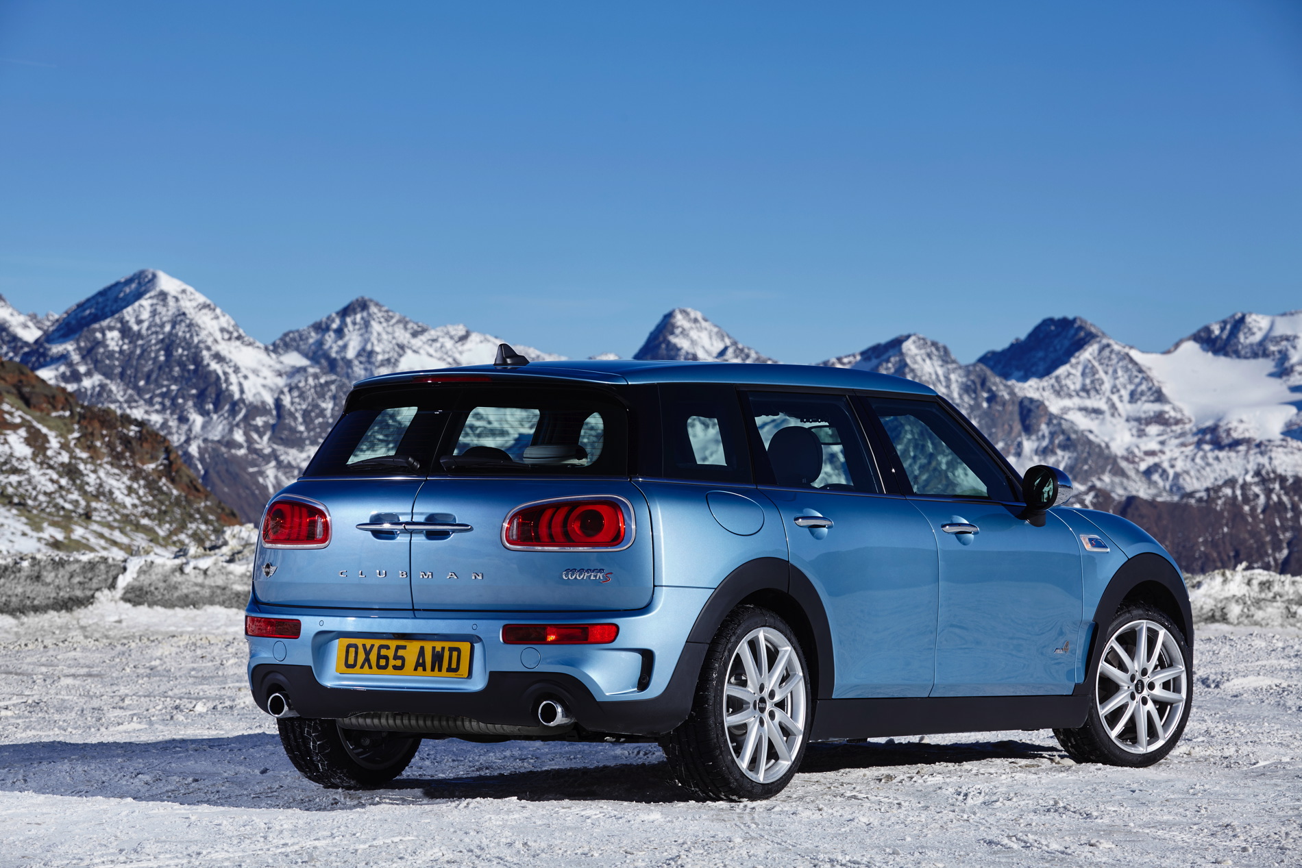 MINI Cooper SD Clubman ALL4: 4-cylinder diesel engine with MINI TwinPower Turbo Technology (turbocharger with variable turbine geometry, common rail direct injection), capacity: 1 995 cc, output: 140 kW/190 hp at 4 000 rpm, max. torque: 400 Nm at 1 750 – 2 500 rpm, acceleration (0–100 km/h): 7.2 seconds, top speed: 222 km/h, average fuel consumption*: 4.9 – 4.8 liters/100 kilometers, CO2 emissions*: 129 – 126 g/km, exhaust emission standard: EU6.