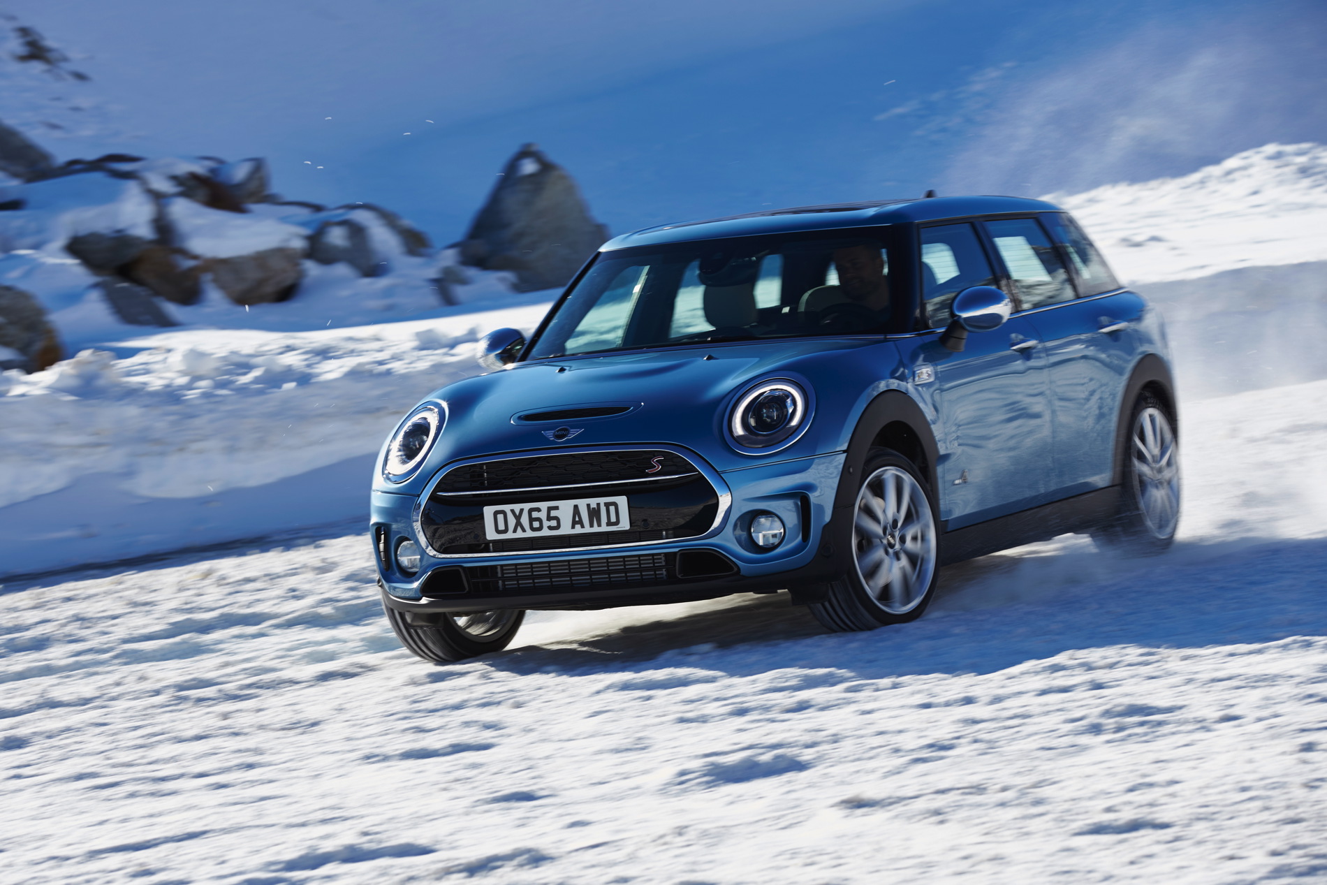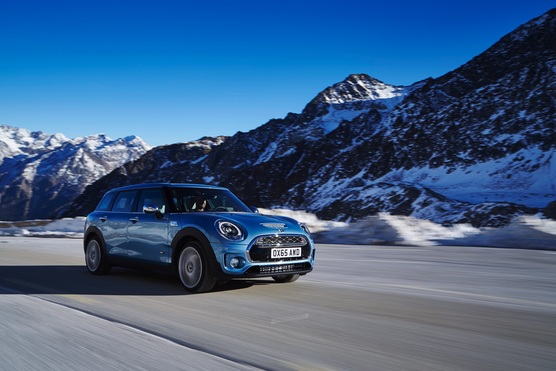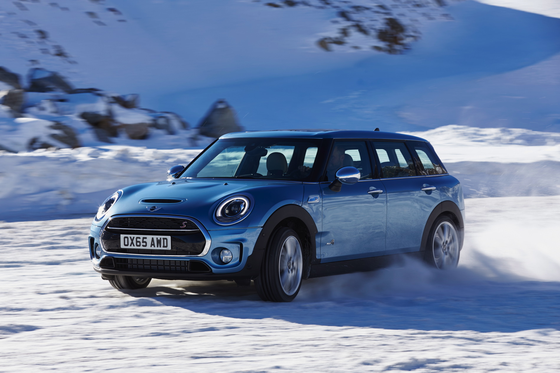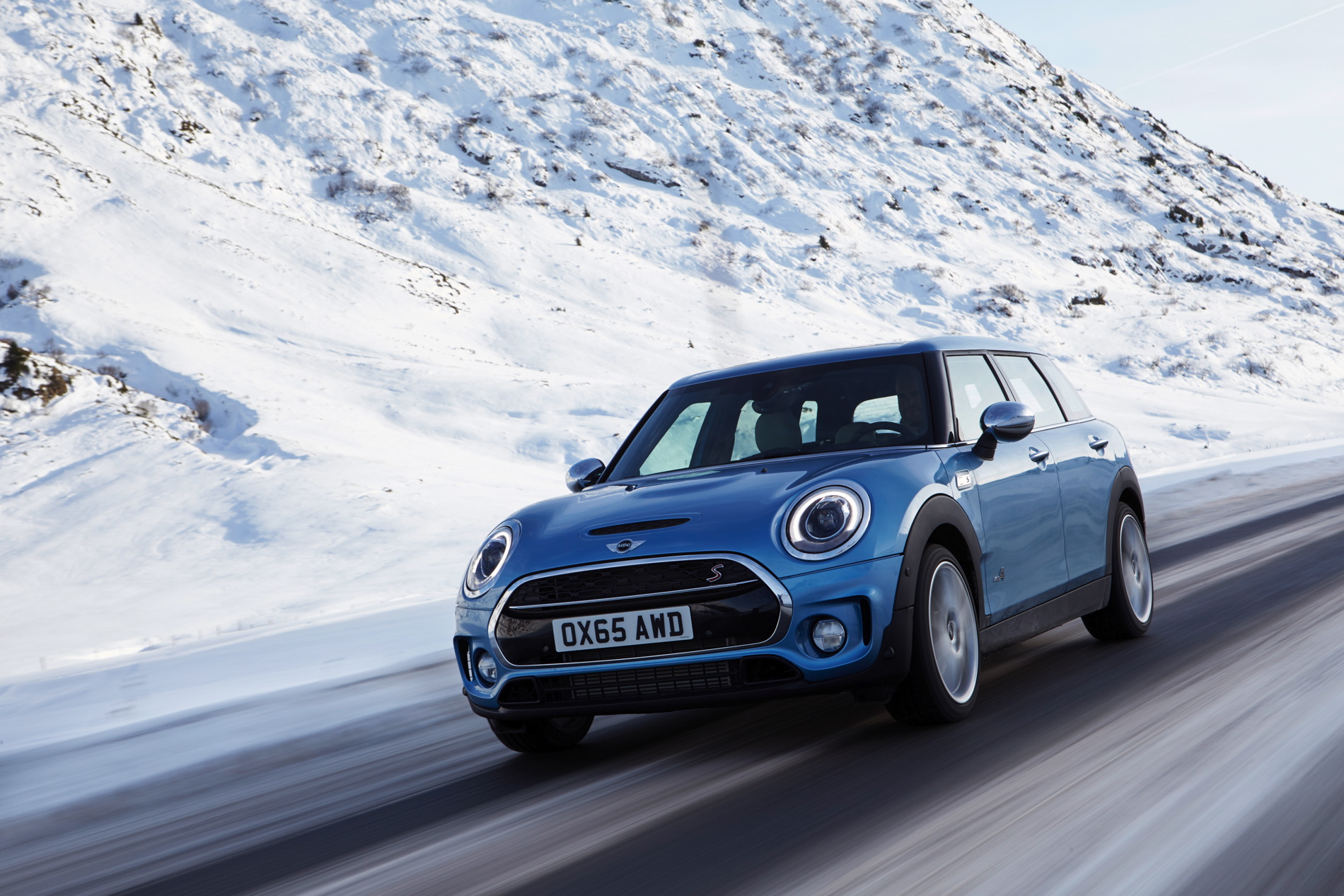 MINI Cooper SD Clubman ALL4: 4-cylinder diesel engine with MINI TwinPower Turbo Technology (turbocharger with variable turbine geometry, common rail direct injection), capacity: 1 995 cc, output: 140 kW/190 hp at 4 000 rpm, max. torque: 400 Nm at 1 750 – 2 500 rpm, acceleration (0–100 km/h): 7.2 seconds, top speed: 222 km/h, average fuel consumption*: 4.9 – 4.8 liters/100 kilometers, CO2 emissions*: 129 – 126 g/km, exhaust emission standard: EU6.