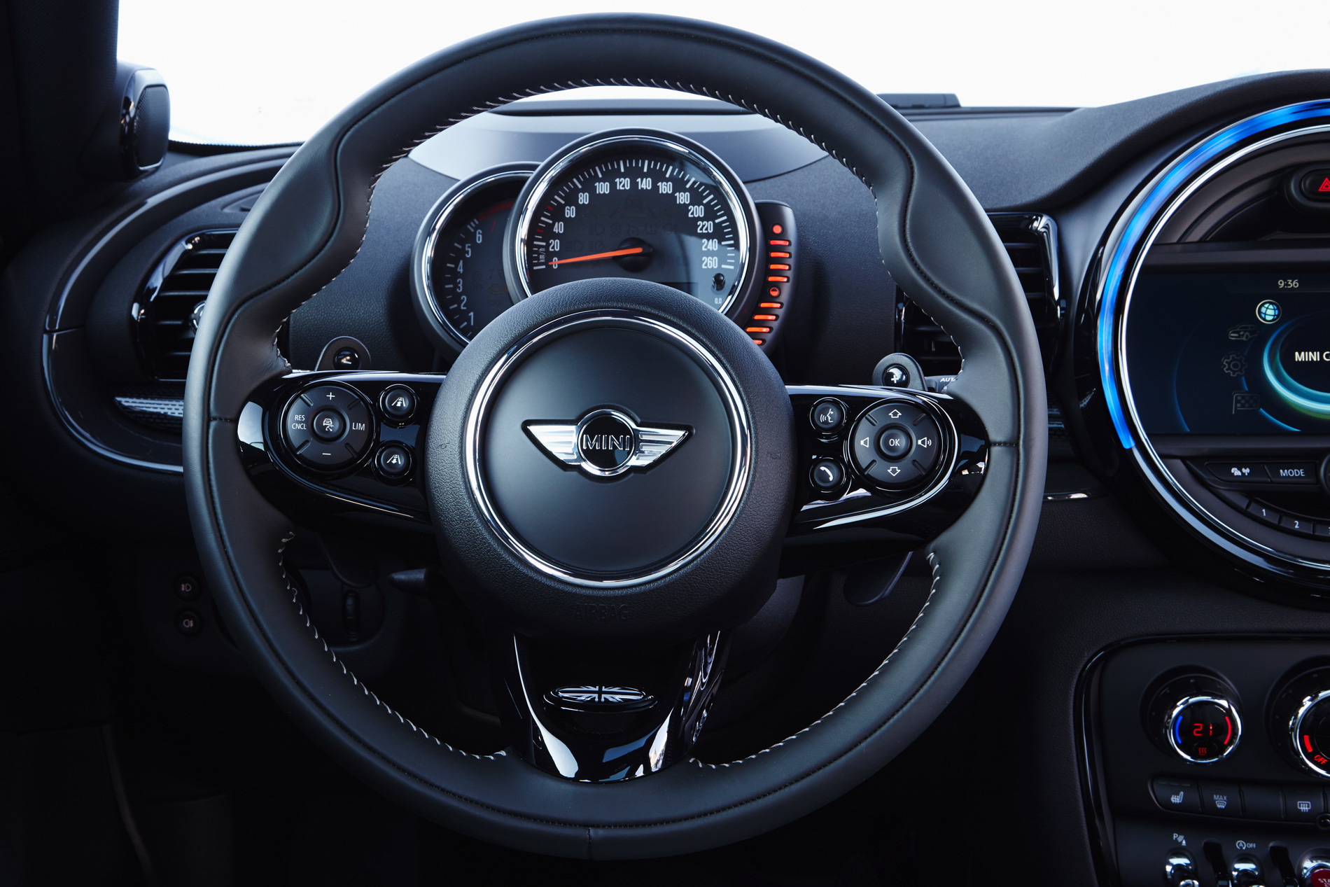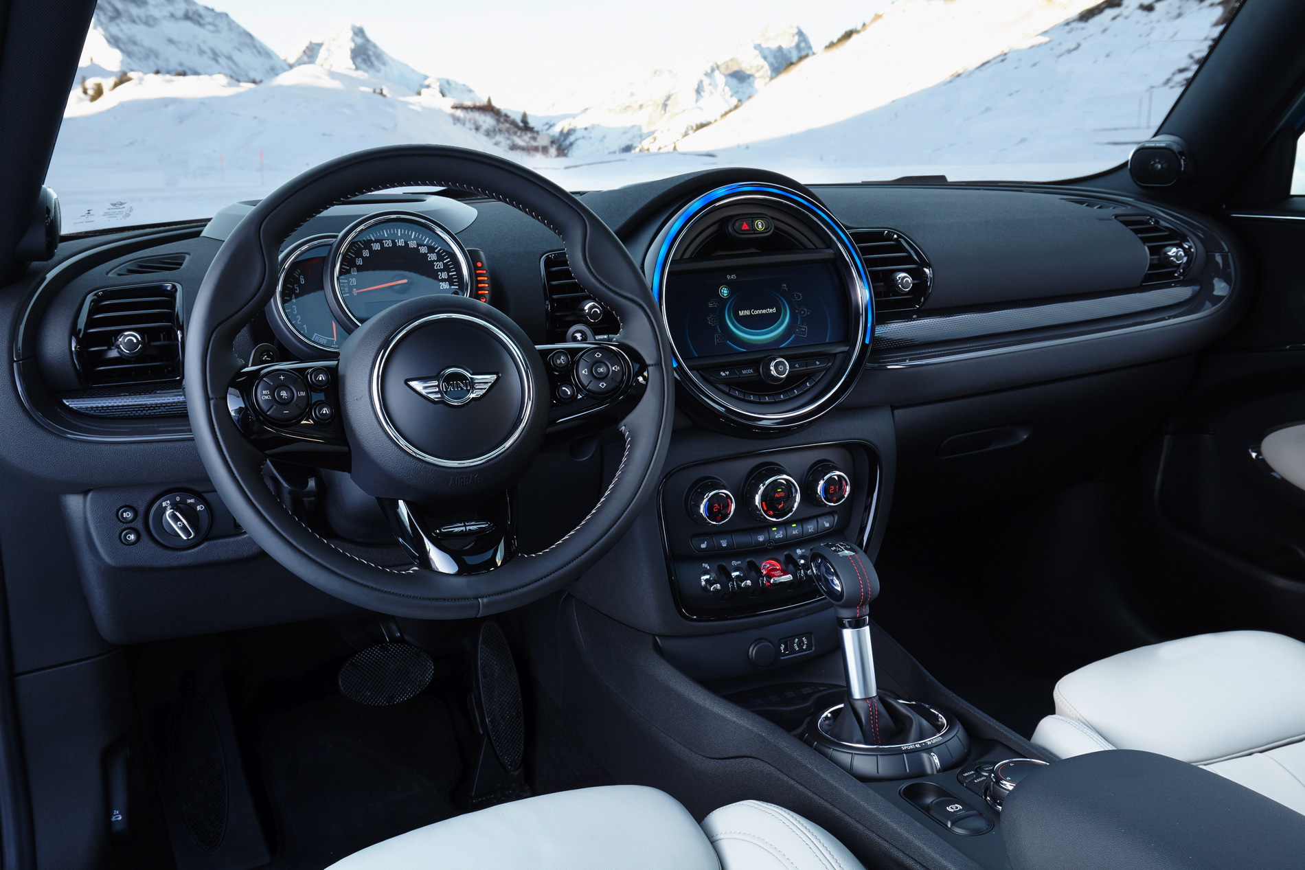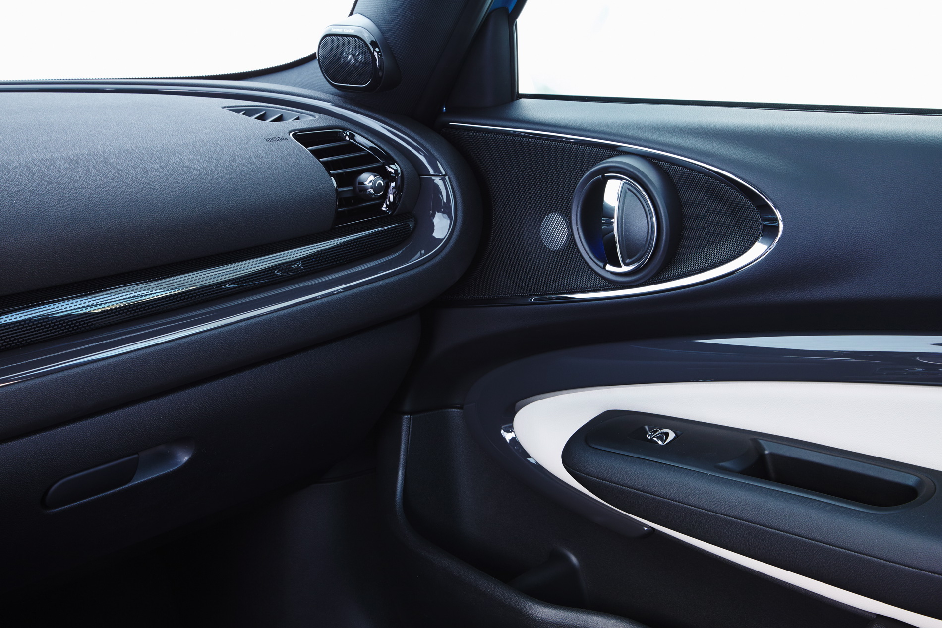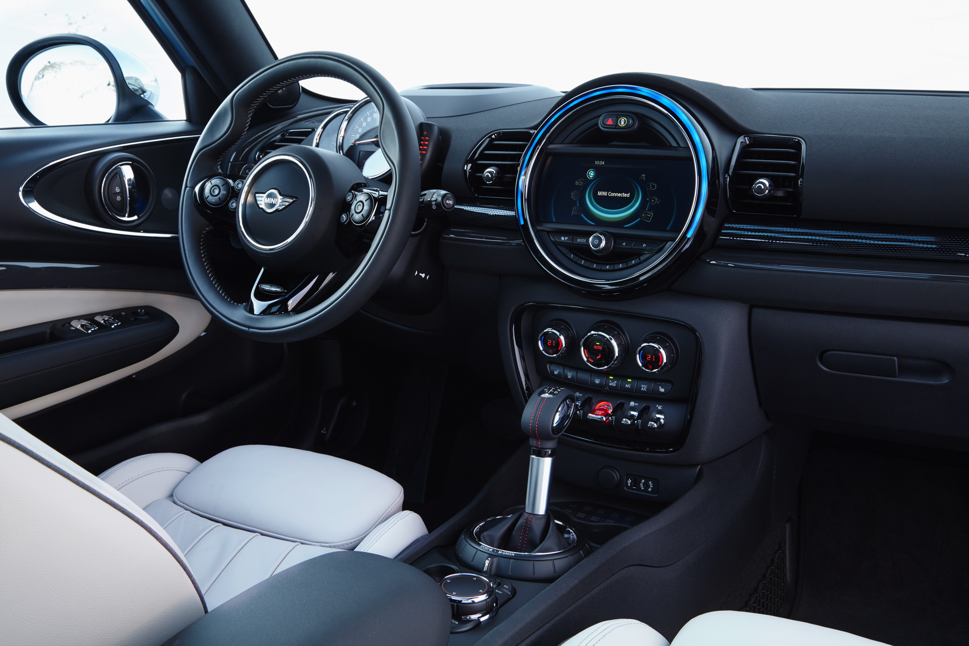 A full range of optional equipment increases driving fun, comfort and individuality – MINI Head-Up-Display, Parking Assistant, rear view camera and Driving Assistant; LED headlamps; LED fog lights; electrically adjustable seats for driver and front passenger; Comfort Access including non-contact opening of the split doors; trailer tow hitch; panorama glass roof; MINI Excitement Package with LED interior and ambient lighting and projection of the MINI logo from the exterior mirror on the driver’s side when opening and closing the car; MINI Yours Interior Styles with backlit door bezels; alarm system including red LED status light in the fin antenna; range also includes: exclusive John Cooper Works and MINI Yours options and the current MINI Connected in-car infotainment program.