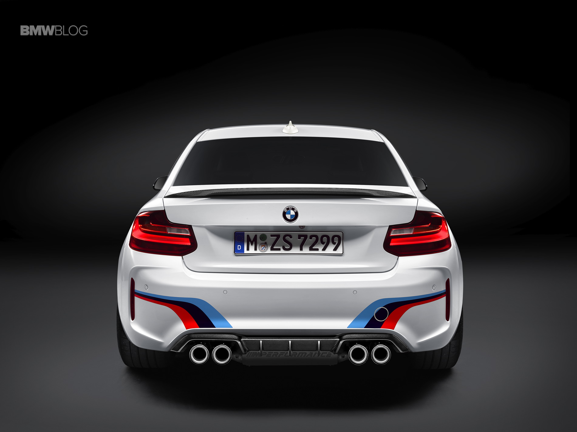 The M Performance flap silencer system makes for more intense perception of the engine sound. Its two operating modes Sport and Track can be set by Bluetooth remote control. The Sport mode is intended for use on public roads and indulges the driver with a distinctive sporty sound that has been specially harmonised with the BMW M2. Meanwhile the Track setting further intensifies the volume and character of the exhaust sound, perceptibly enhancing its emotional flair. This creates a much more intense driving experience and makes the driver feel more closely connected to the car. The M Performance flap exhaust system further enhances the BMW M2 visually, too, with its high-gloss silencer unit including deep-embossed M Performance logo, tailpipes with a diameter of 80 millimetres and perforated inner pipe. As an alternative there are also carbon fibre tailpipe trim elements available for the M Performance exhaust system with a diameter of 93 millimetres and integrated BMW M logo.
