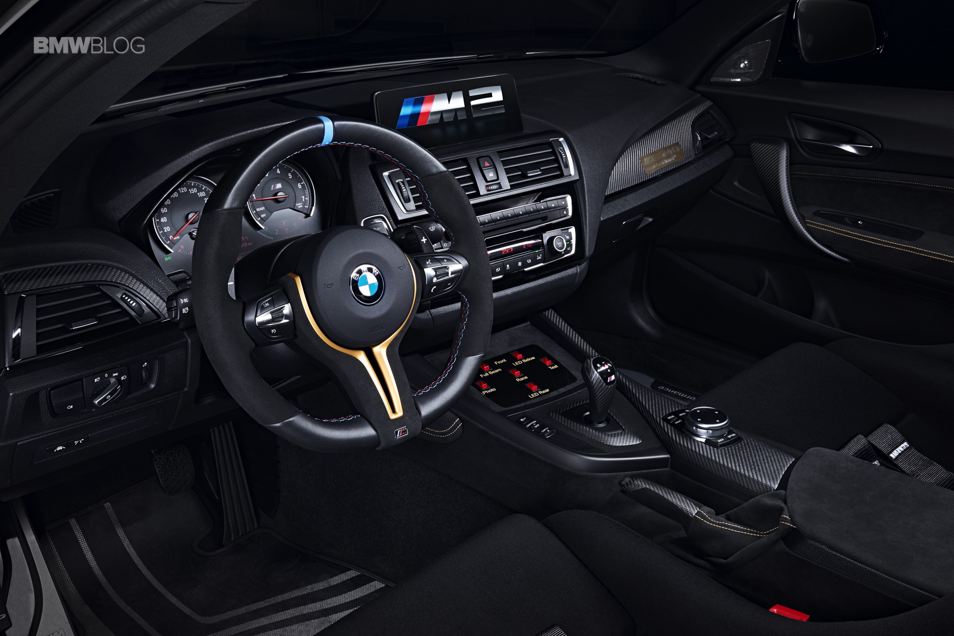 An adjustable coilover suspension the carbon fiber blades applied to the body and side skirts, the diffuser insert at the rear are just a few of the aerodynamic improvements. The racing wing, M carbon ceramic brakes and the Michelin Cup 2 tires are just some of the latest details that make this M2 a track monster.