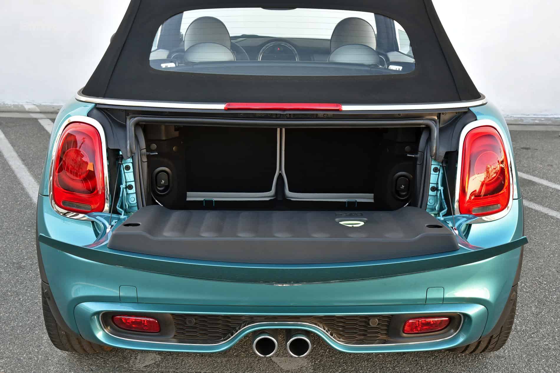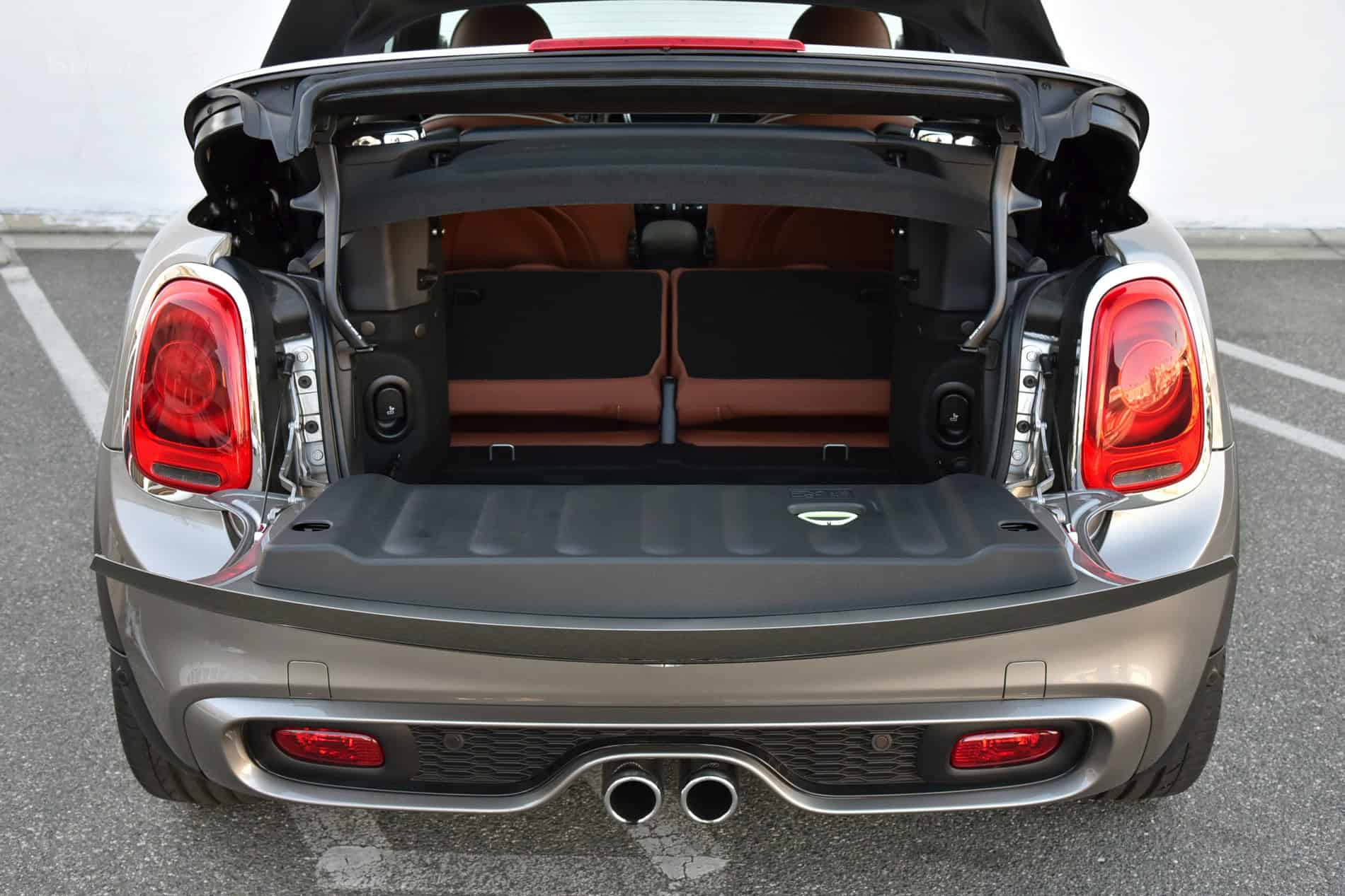 But quirks aside, the interior is just as well built and filled with as many quality materials as the Coupe. With the top up, it’s quieter than expected on the inside and MINI does a nice job of filtering out road noise. With the top down, the cabin is also quite calm and serene, with very little buffeting, as the Convertible’s windscreen is more upright and the shoulder line has been elongated. And to keep drop-top passengers safe in case of a rollover, two pyrotechnic-controlled aluminum rollover bars eject from behind the passengers’ heads when the car detects a rollover. The windscreen and A-pillars have also been reinforced in case of a rollover.