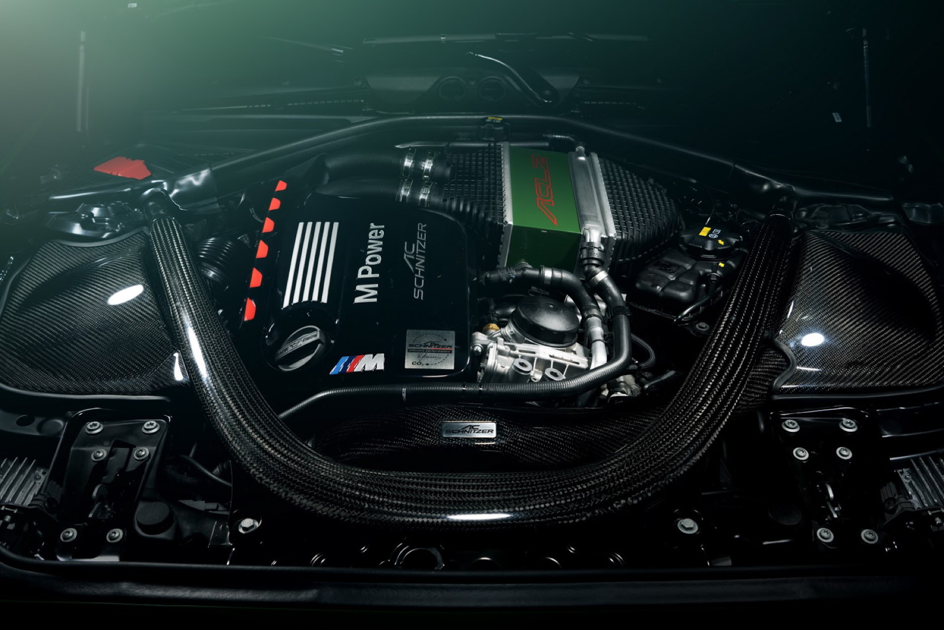 from the M3/M4 models. Even the carbon fiber engine brace is included. The tuner promises a power to weight ratio of 2.54 hp/kg.