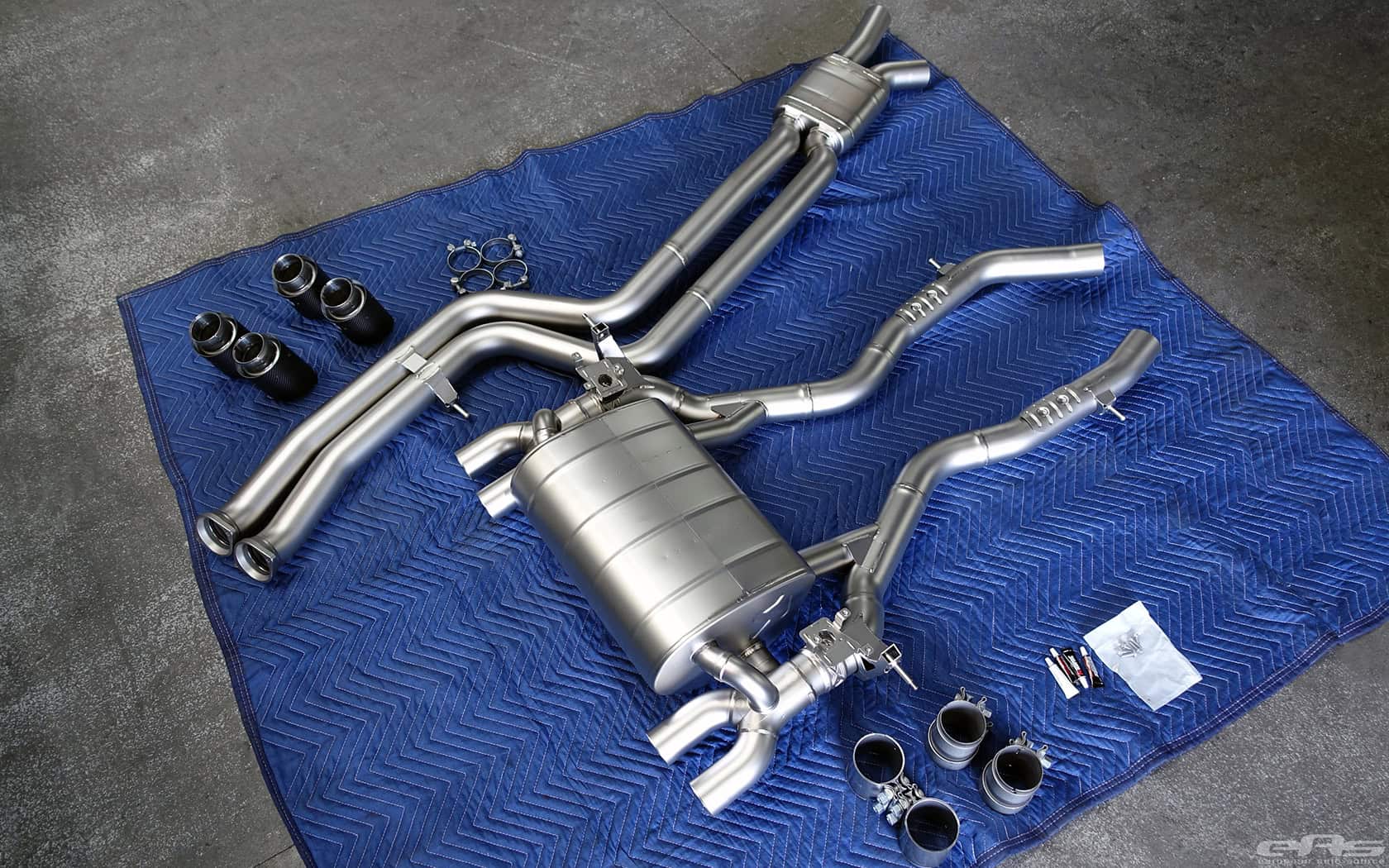 The Evolution titanium exhaust system for the BMW M3/M4 consists of a single-central muffler with valves and bigger link pipe tubes with a middle muffler, all designed to make the performance and workmanship of the Evolution as perfect as its looks. With no second set of cats— unlike the stock system – the whole system is designed to give the smoothest flow. The power and torque gains of the BMW with the Evolution system are simply amazing.