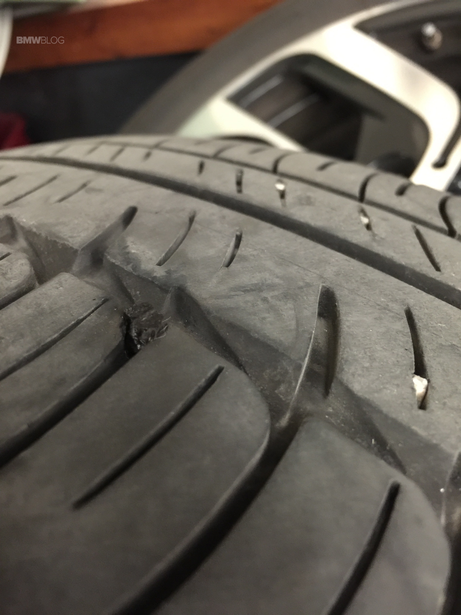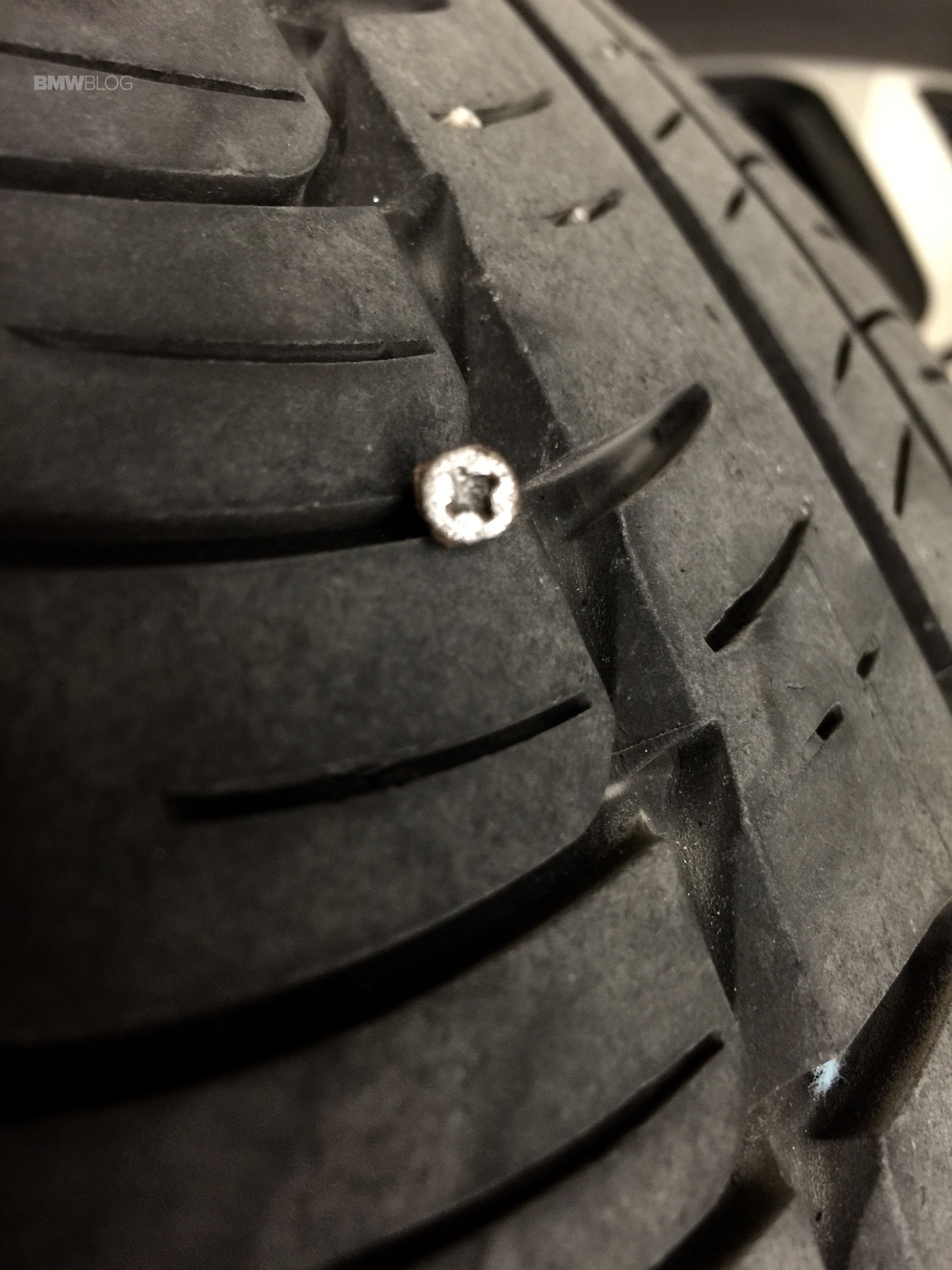 BMWBLOG holds the record for the quickest flat after purchase at Day 2 of ownership and less than 150 miles. Our first was caused by a 4-inch bolt that killed the tire. And I do mean killed it. It was too big of a hole to patch or plug. It costs us $148 for a new tire from the dealer along with install mount, balance and tax, ended up totaling $211.78. Happily we made it about 14,000 more miles before we had our second flat.