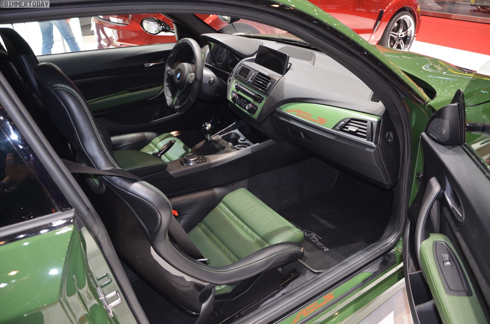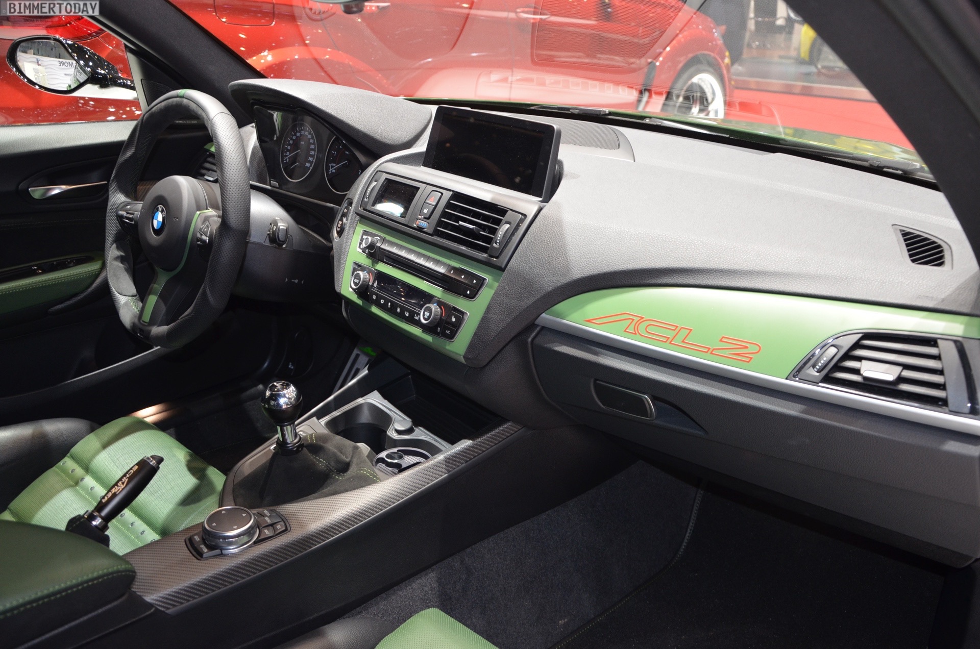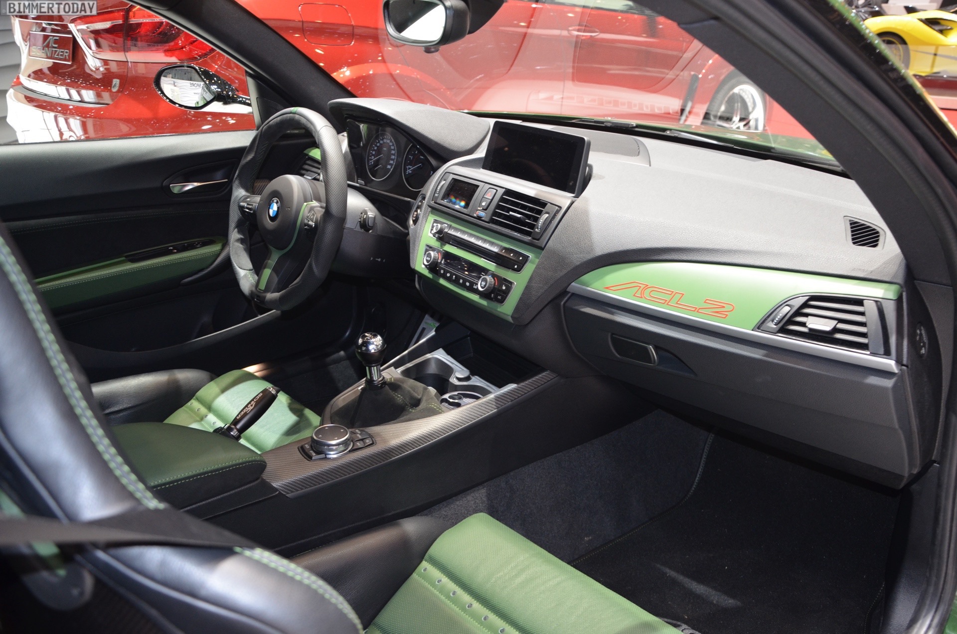 Inside we can find the typical AC Schnitzer badging, and also a set of new pedals, sports seats, gear knob, handbrake grip, and carbon fiber trim. The steering wheel is just as impressive as the rest of the car. Green has invaded the cabin, with green leather, green stitching over black suede and carbon bucket seats with green inserts.