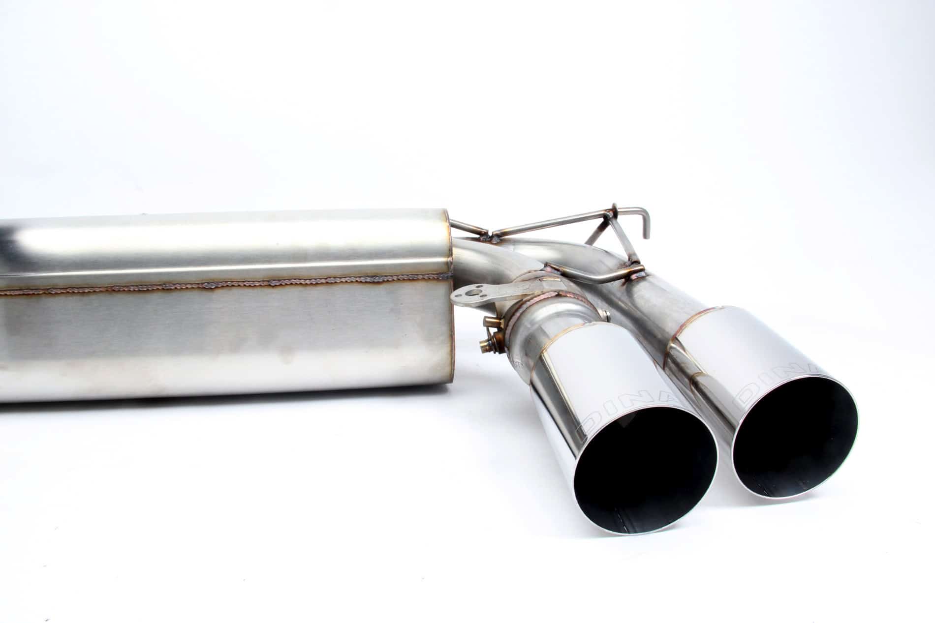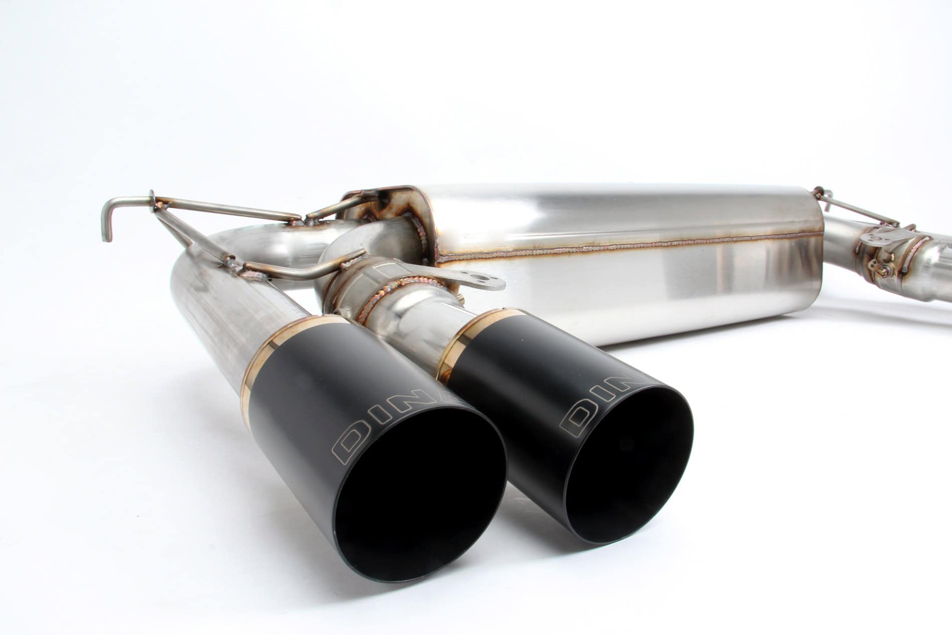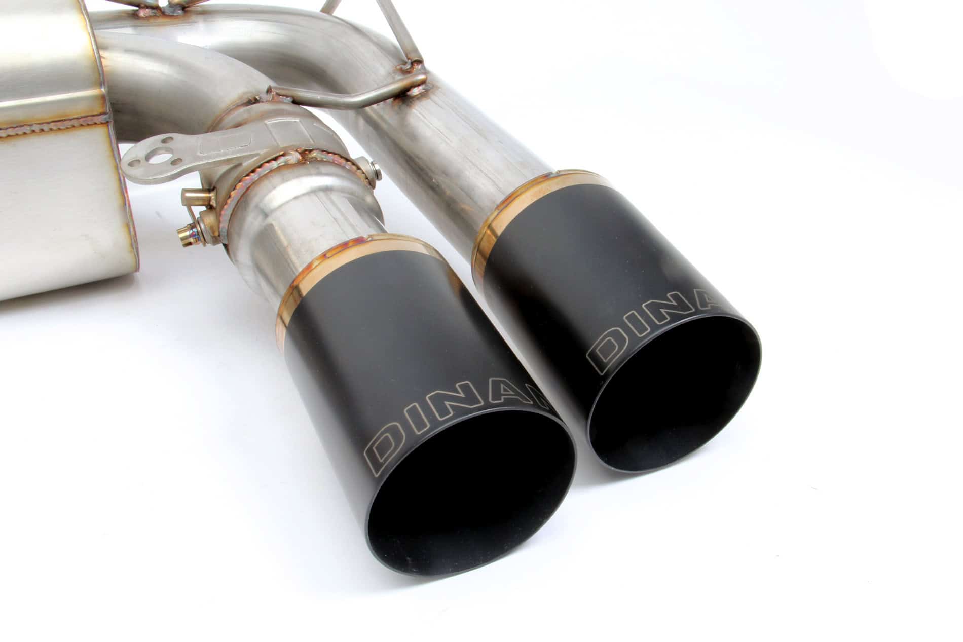 The Dinan Free Flow exhaust system is built to Dinan’s exacting quality specifications and is constructed from 100% 16 gauge 304 stainless steel. The system is available with either black ceramic coated or polished quad 3.5” tips. Owners can expect to see gains of 8hp at 6000 rpm and 7 lb-ft of torque at 6000 rpm with no other modifications though the system is designed to pair ideally with the DINANTRONICS piggyback ECU for maximum performance.
