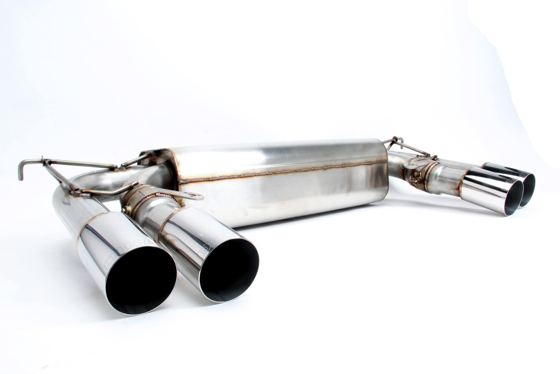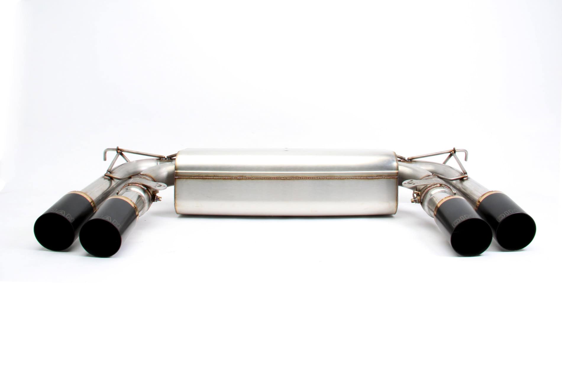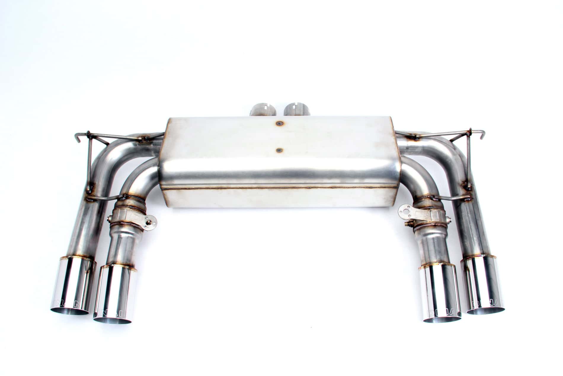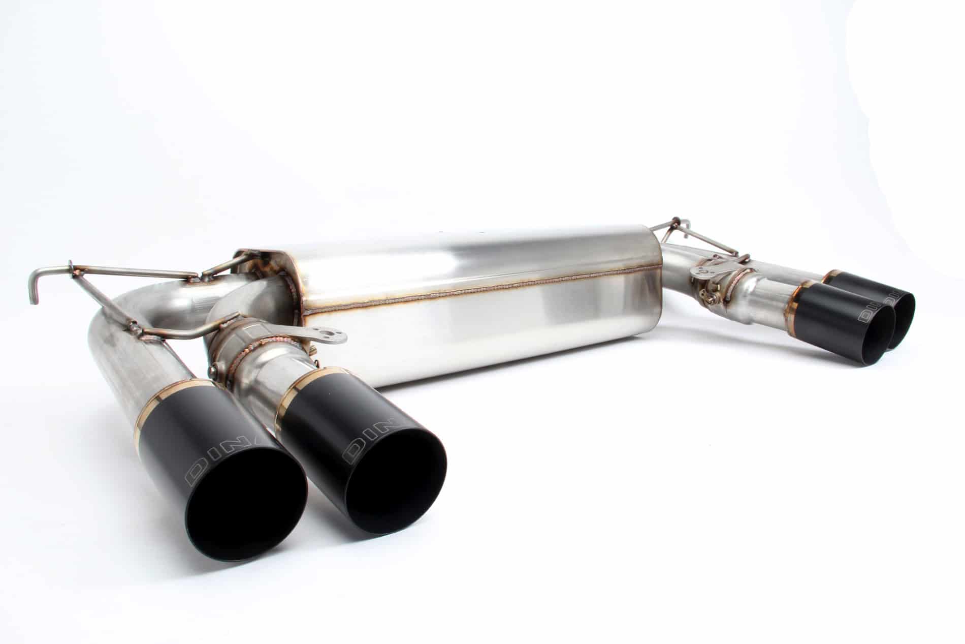 The Dinan Free Flow exhaust system is built to Dinan’s exacting quality specifications and is constructed from 100% 16 gauge 304 stainless steel. The system is available with either black ceramic coated or polished quad 3.5” tips. Owners can expect to see gains of 8hp at 6000 rpm and 7 lb-ft of torque at 6000 rpm with no other modifications though the system is designed to pair ideally with the DINANTRONICS piggyback ECU for maximum performance.
