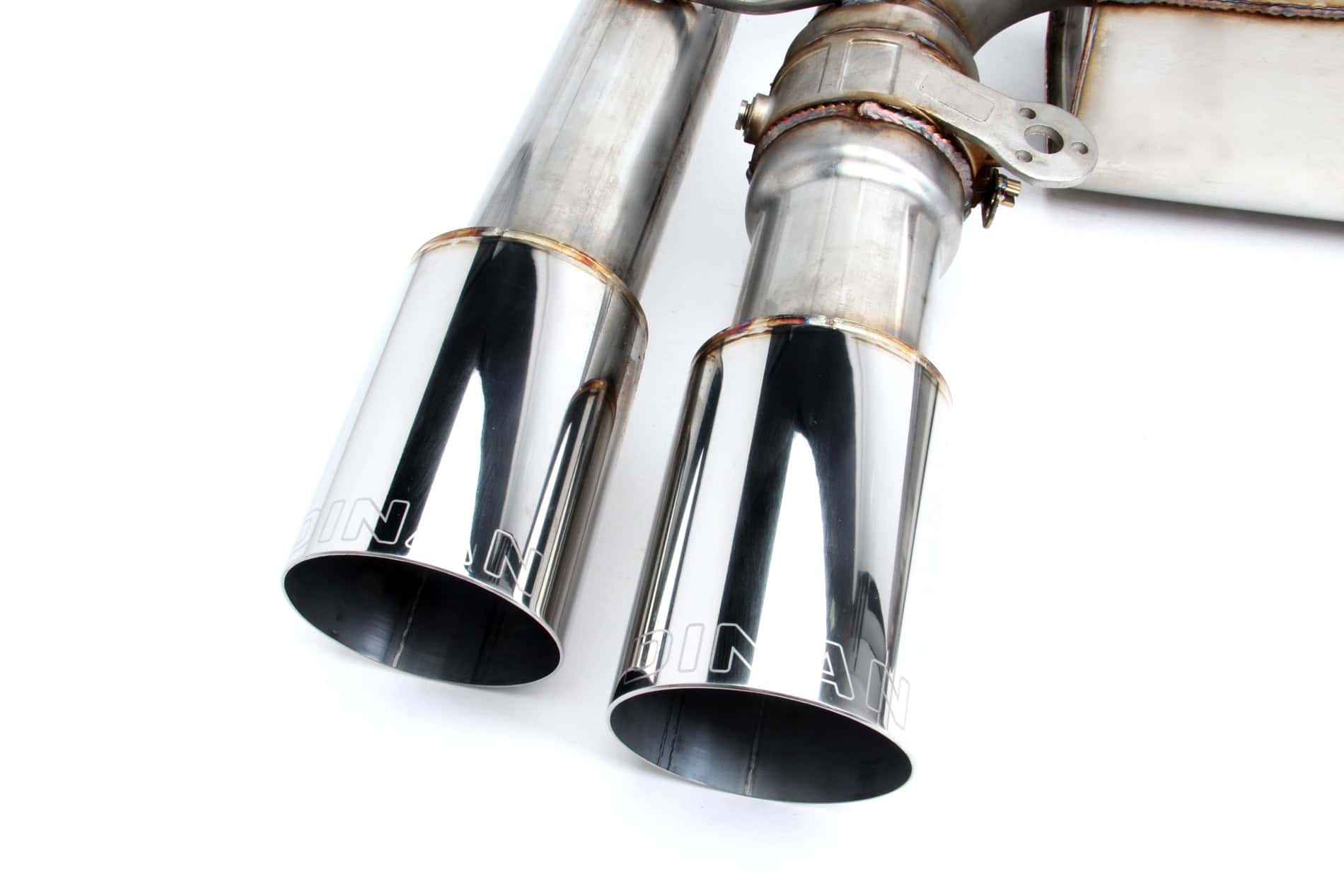 The new Dinan Free Flow exhaust system has been designed to improve exhaust flow by reducing backpressure. This results in increased power output and really improves the tone characteristics of the 4.4 liter engine without making it overly loud. Dinan utilizes a Helmholtz chamber that works to reduce exhaust drone on the freeway.