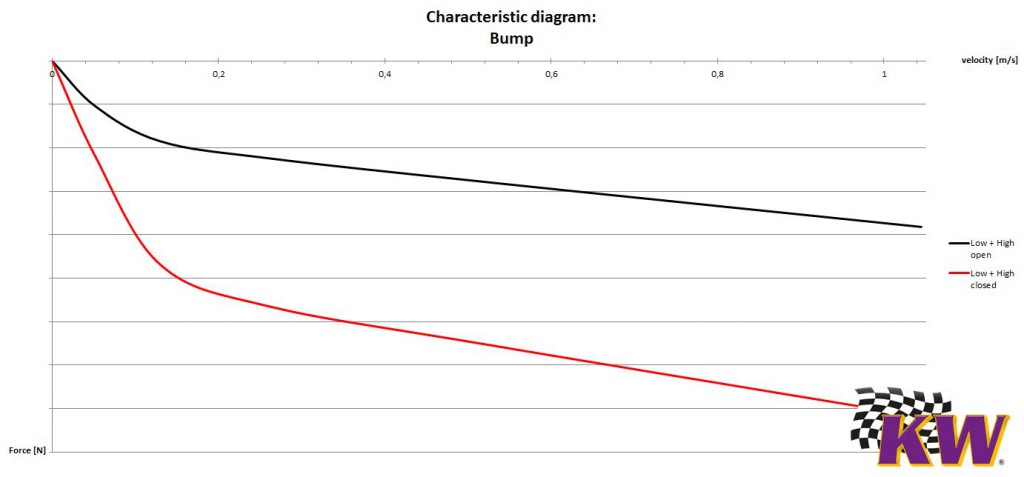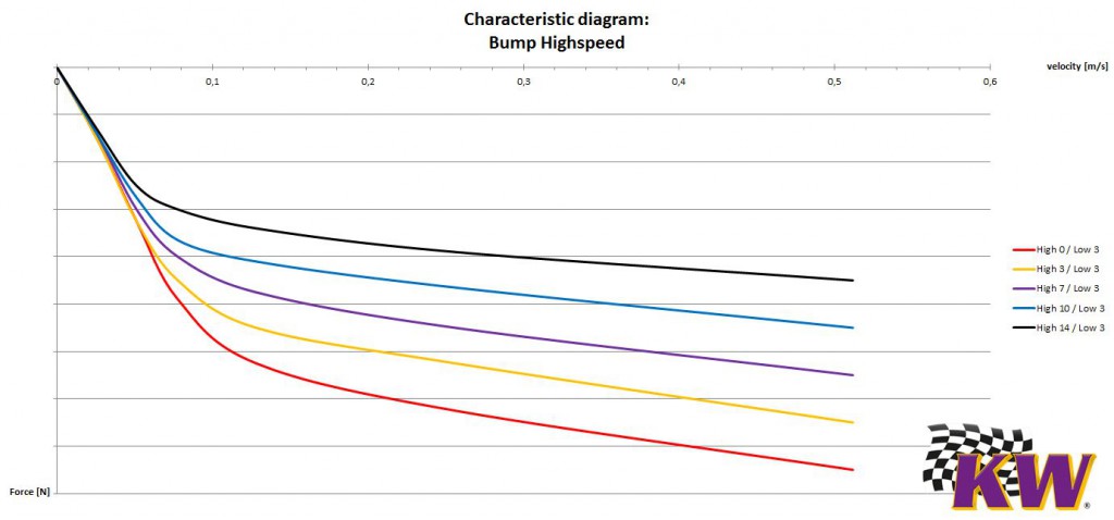 KW is using a patented valve technology with two throttle valves. The low-speed is always designed linearly, while for the high-speed we configure the spring-loaded valve digressively.