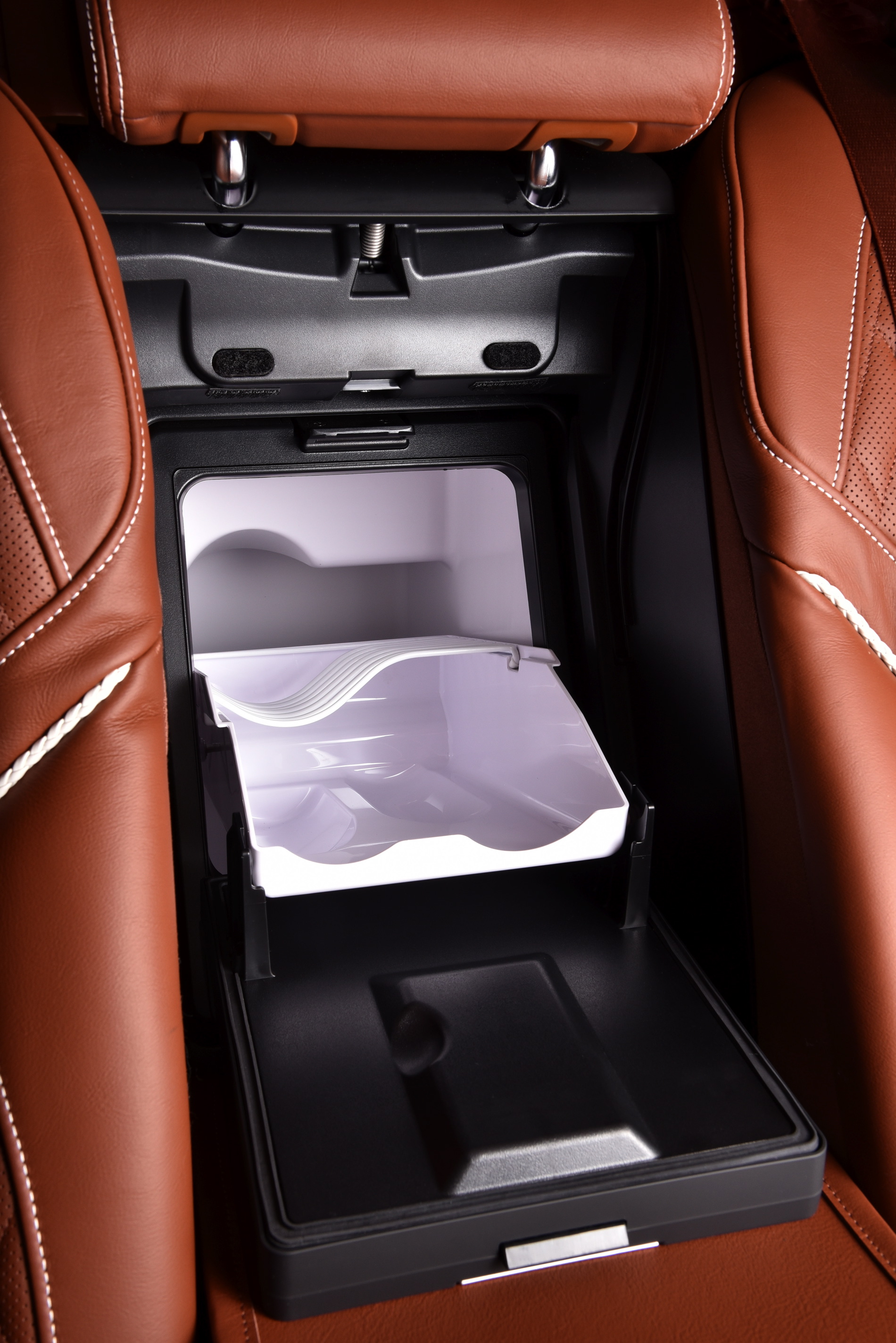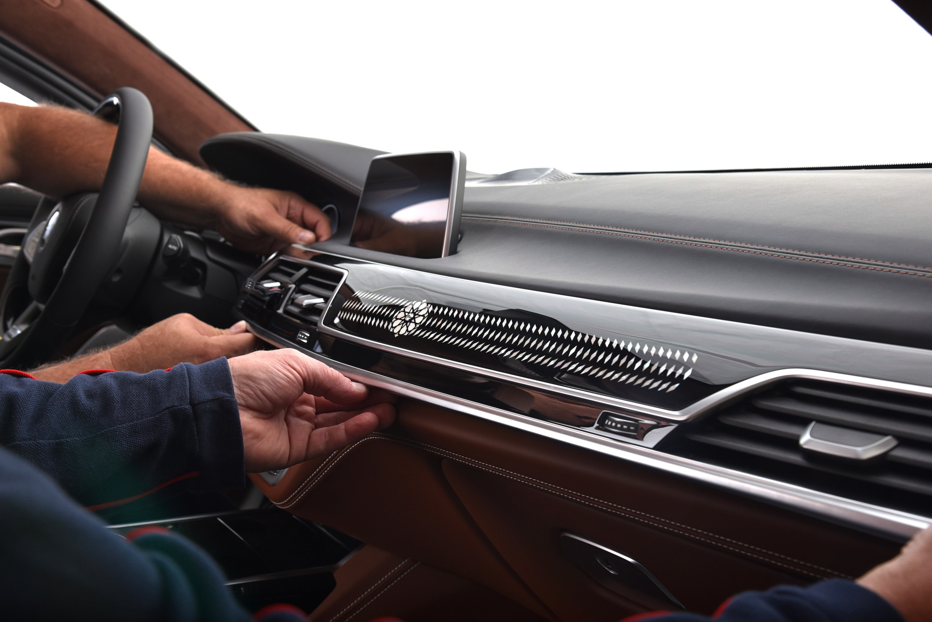Inside the car, i.e. where comfort is experienced first hand by the customer, a large number of exclusive features emphasize the aesthetics, luxury and elegance of these edition models. The exclusive BMW Individual fine-grain full leather trim Merino in the colour Tartufo as well as the Alcantara roof liner in the same colour contribute considerably towards the vehicle’s ambience. Extremely soft floor mats made from sheared lambskin in Tartufo, storage compartments for cosmetic tissues finished in color-matching leather in both rear doors as well as soft, Alcantara covered cushions in the color Tartufo bearing the embroidered lettering “Solitaire” or “Master Class” respectively all enhance the luxurious character of the BMW 750Li xDrive. A bar compartment with tulip sparkling wine glasses and an integrated cooling box in the rear compartment center console are available for refreshments, whilst a silver-plated plaque on the cent re console discreetly informs passengers that they are traveling in a highly exclusive edition model that has been produced only seven times. However, the highlight of these special edition models are undoubtedly the five optional diamond inserts in the interior trims on the dashboard and doors.