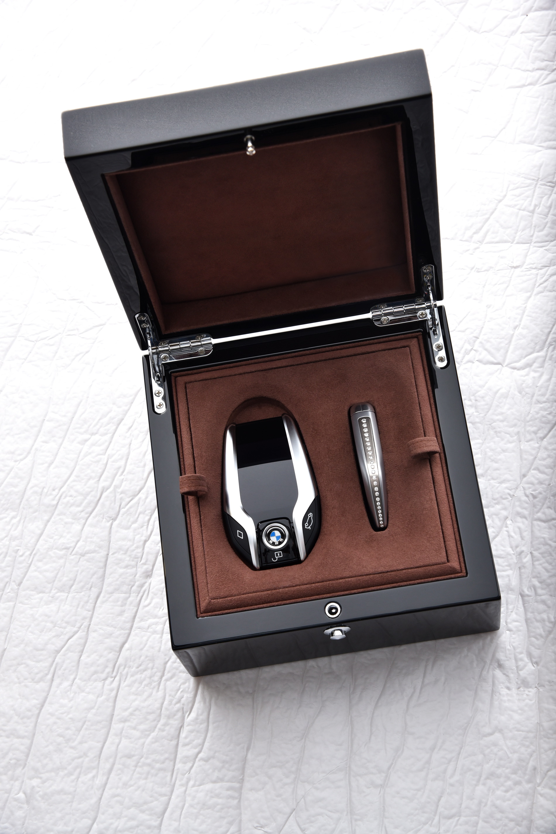 The vehicles exquisite features are also to be found in the luggage compartment. The boot, which is lined with Alcantara in the color Tartufo, not only protects exclusive items of luggage, but also underpins the stylishly luxurious design that exists everywhere in the vehicle. In keeping with the car’s high-class character, the range of edition model options also include an exclusive box for key storage, at home for instance. It comes with a BMW Individual Black Piano finish and a pearlescent insert on the lid and, like the interior trims, is optionally available with diamond inserts and an inlay with Alcantara leather lining.