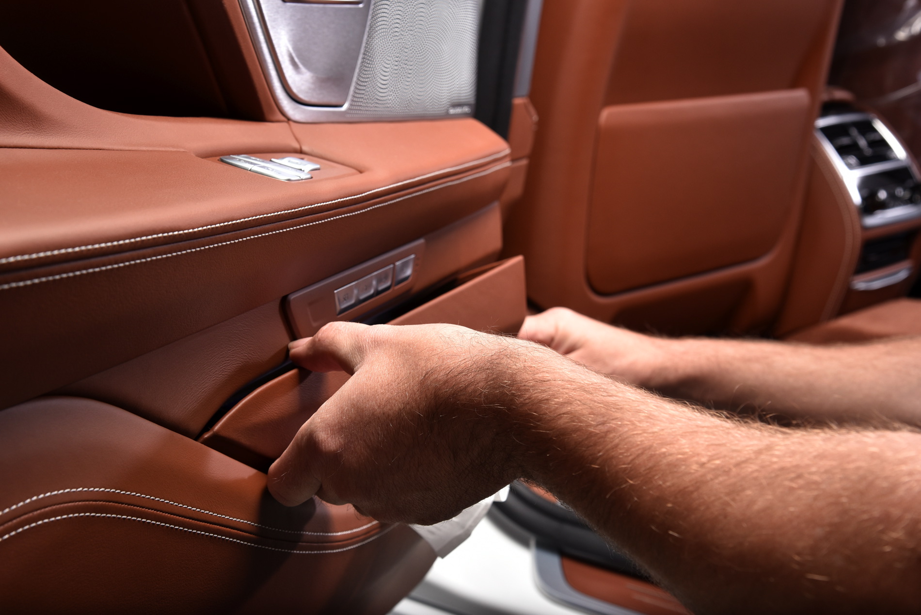 However, BMW Individual not only sets standards in the new BMW 7 Series with the quality of this exceptionally high-class leather, but also with further optional features for the leather trim. In addition to the back panel cladding for the seats, the upper and lower instrument panels as well as the door panels, including the B pillars, are covered with BMW Individual fine-grain Merino leather.