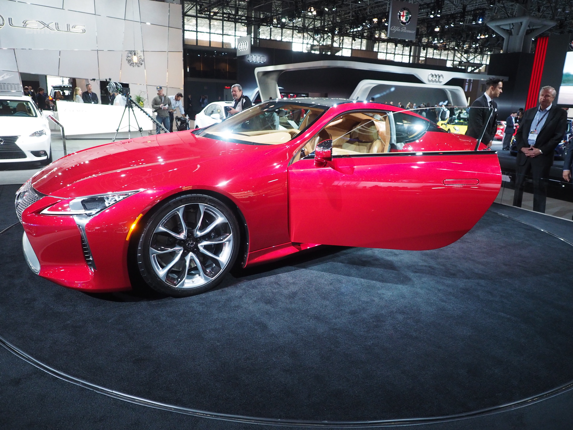 Lexus LC 500 Coupe and its plug-in hybrid counterpart made an appearance at the 2016 New York Auto Show. The LC 500 is powered by the familiar 5.0-liter V-8 engine found in high-performance models like the RC F and GS F and sticks with an output of 467 horsepower and 389 pound-feet of torque.