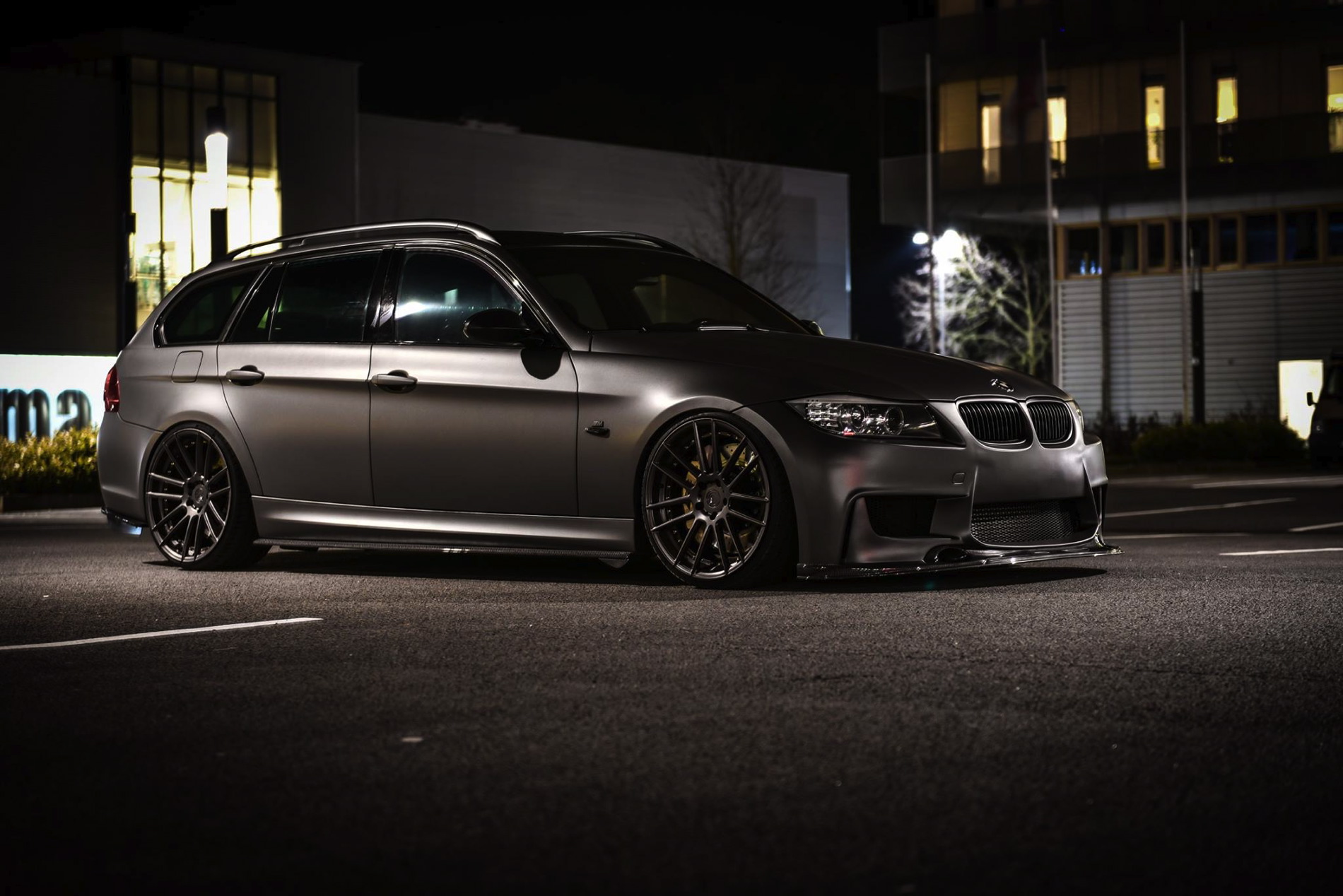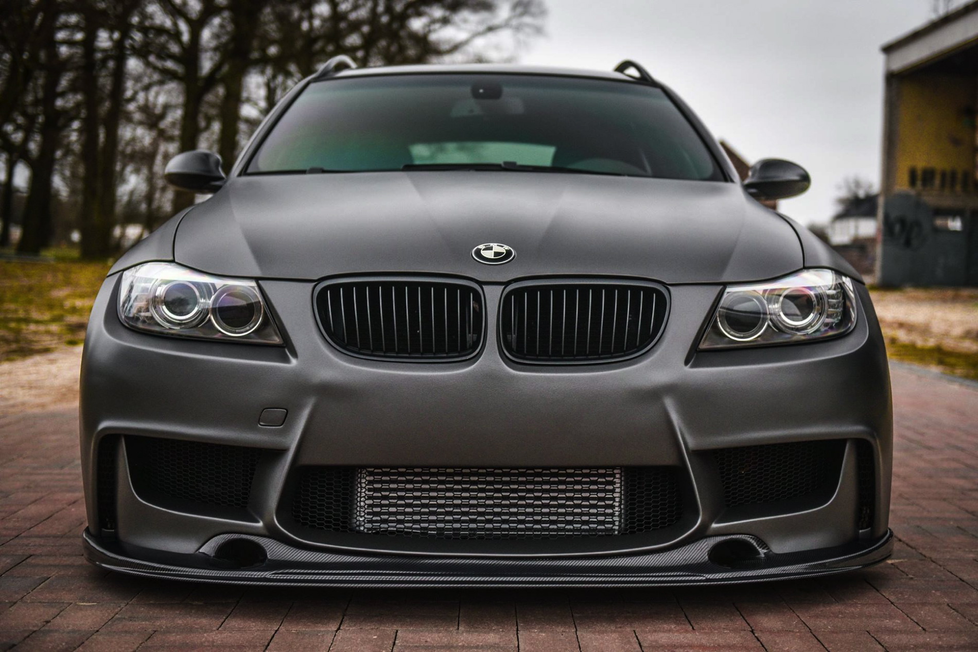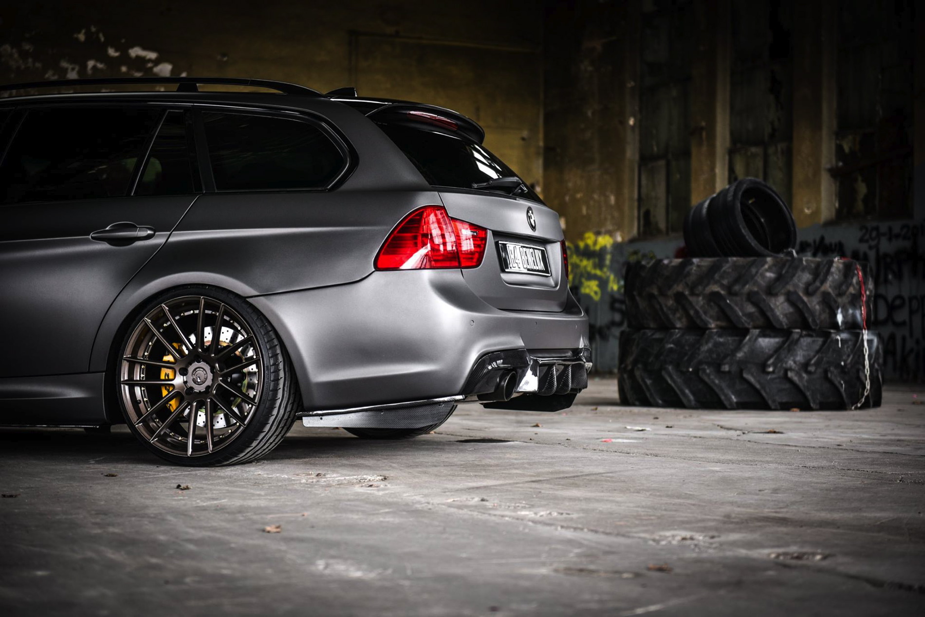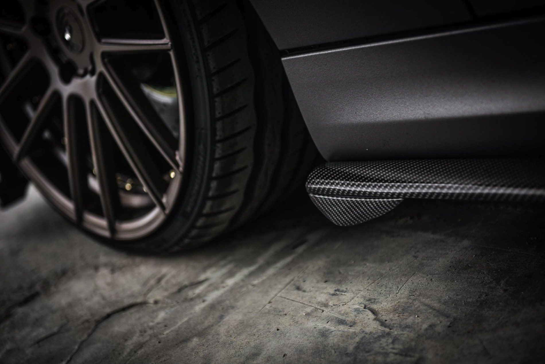 The exterior was wrapped with a matte gray vinyl which perfectly matches the colored bronze alloy wheels in 20 inches made ADV1. Wheels. The front-end gets a 1M bodykit with massive air curtains, while the carbon fiber splitter adds to the sportiness of the car. Carbon fiber side skirts and a rear diffuser are just some of the carbon fiber additions to the car.