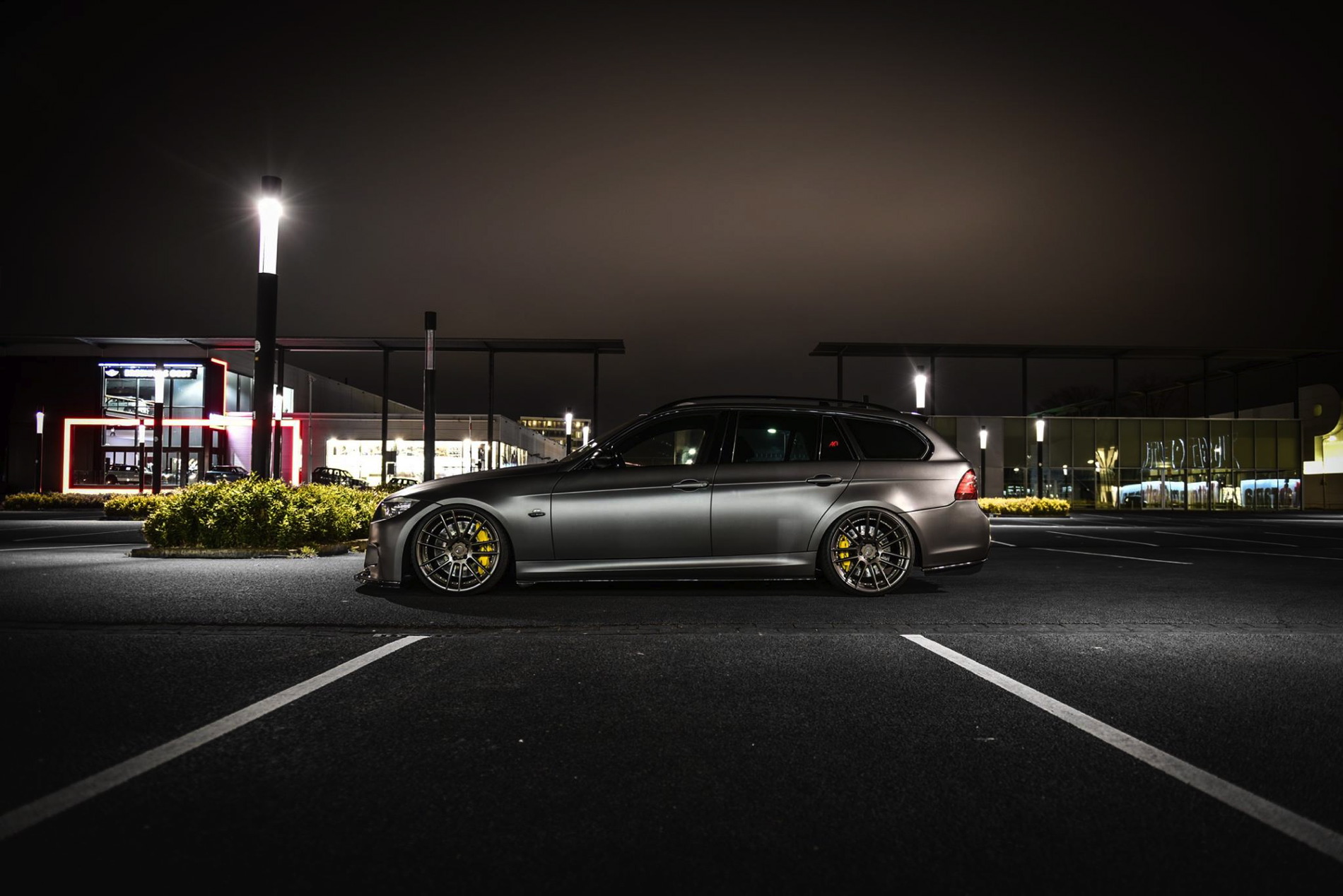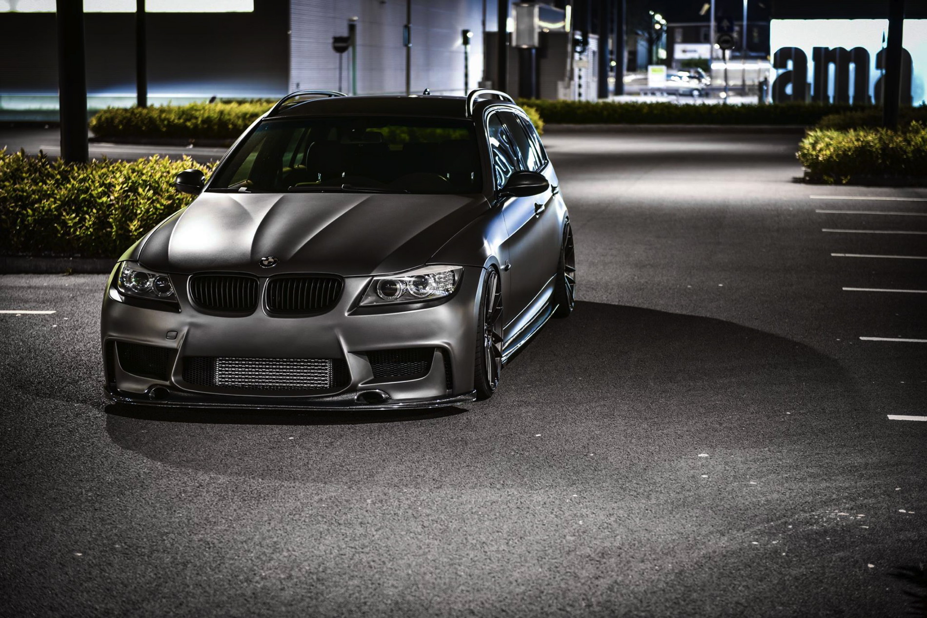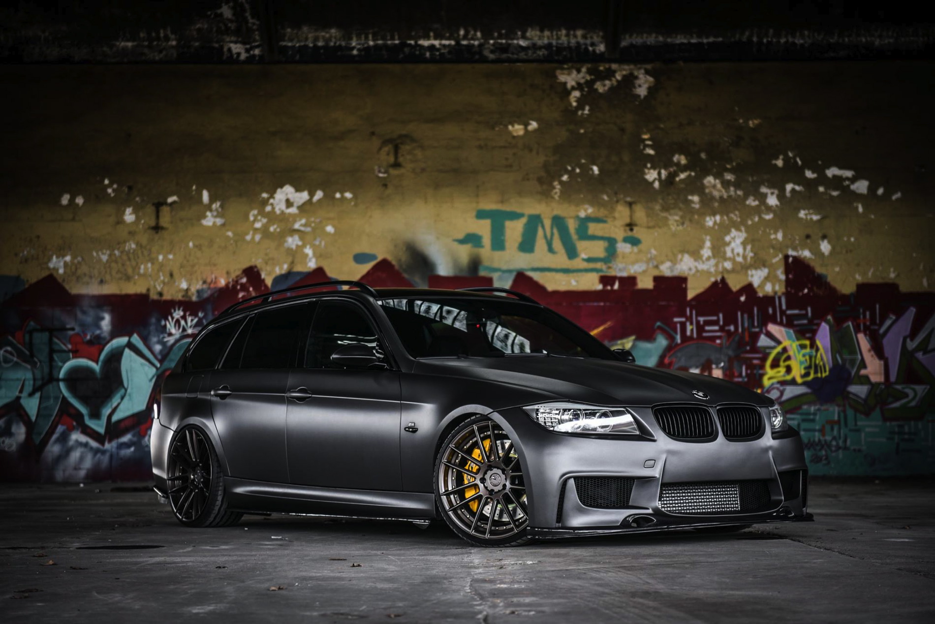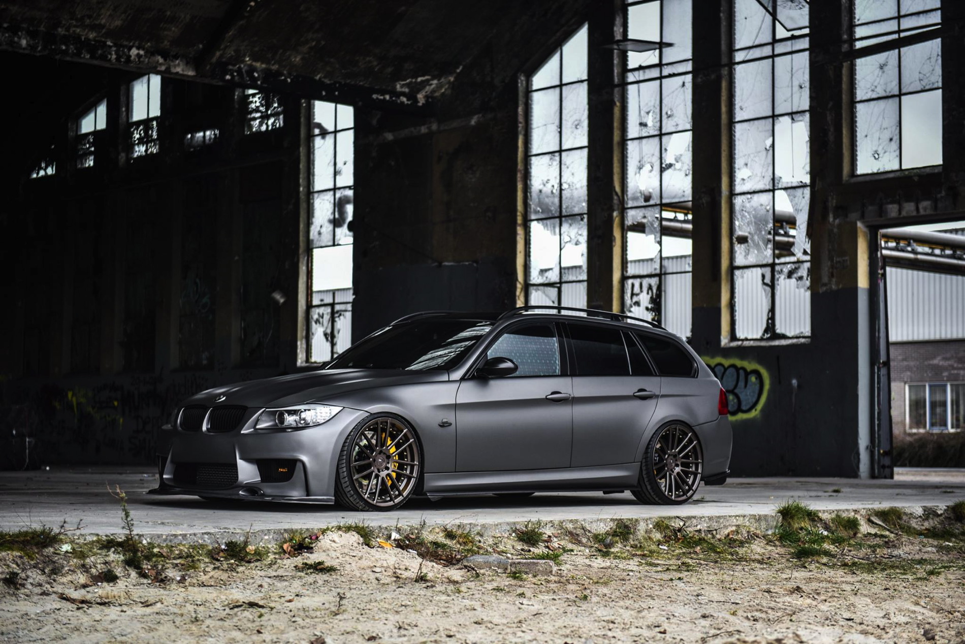 The exterior was wrapped with a matte gray vinyl which perfectly matches the colored bronze alloy wheels in 20 inches made ADV1. Wheels. The front-end gets a 1M bodykit with massive air curtains, while the carbon fiber splitter adds to the sportiness of the car. Carbon fiber side skirts and a rear diffuser are just some of the carbon fiber additions to the car.