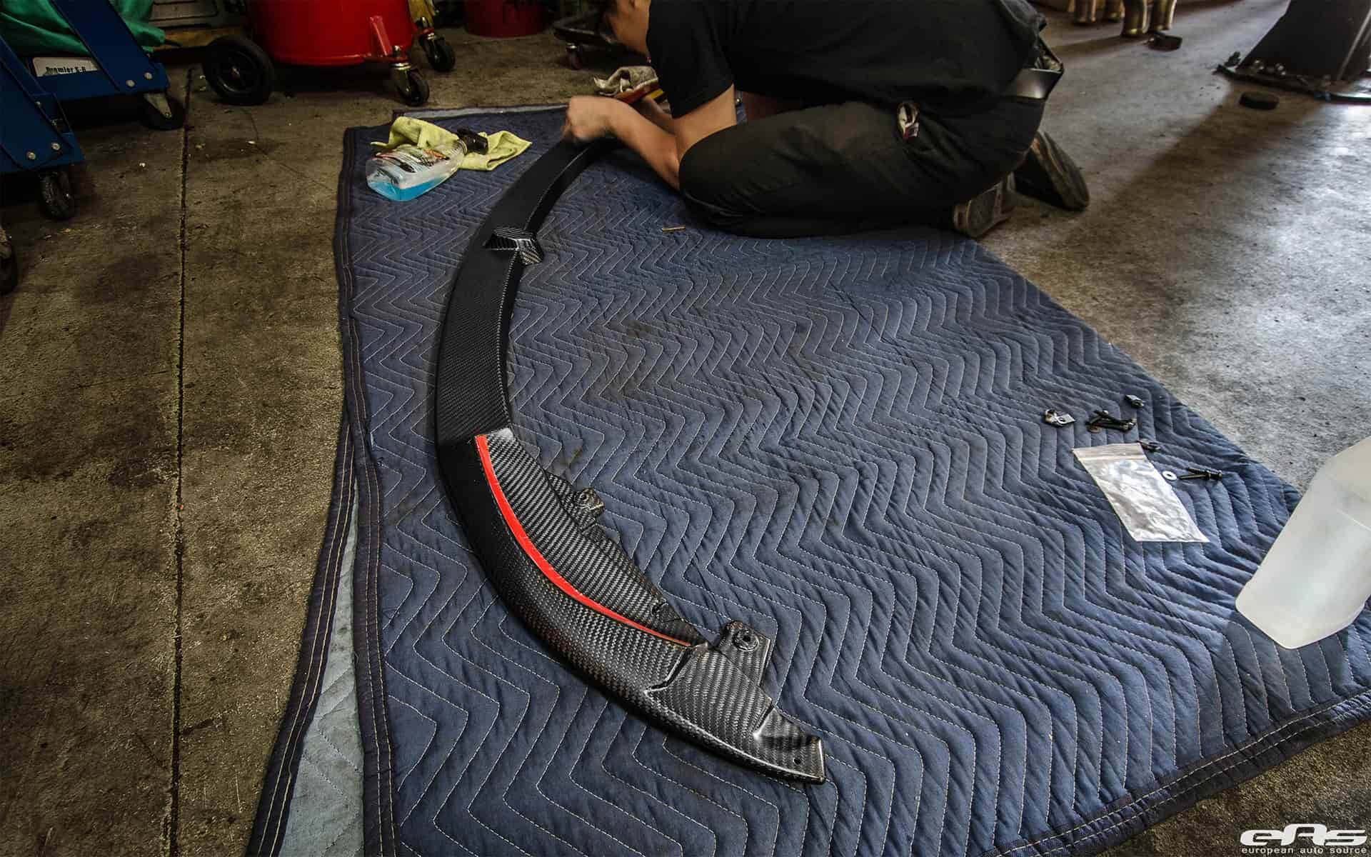 This M4 received a carbon fiber front lip built by RKP Composites. The carbon fiber lip matches perfectly the aggressive front-end while it comes with good fitment leaving no gaps after the installation is completed. Conveniently, the installation is done using the provided fasteners and no double-sided tape; however the added security doesn’t hurt the operation.