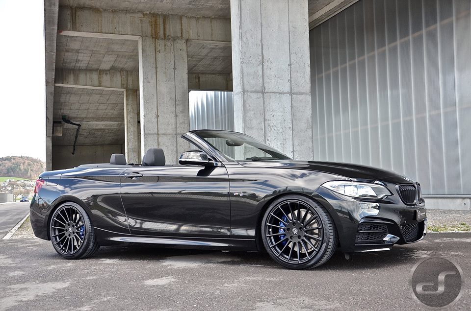 Swiss tuner DS automobile & autowerke are one of the premiere tuning shops for Hamann products. Their latest project involves a BMW M235i Convertible that went through a mild styling upgrade.Usually the easiest and most cost effective method to differentiate your car from the rest is the addition of a new set of custom wheels. The matte black Hamann Anniversary Evo wheels complement the black paint job on this car while giving the sporty convertible and even…sportier look.